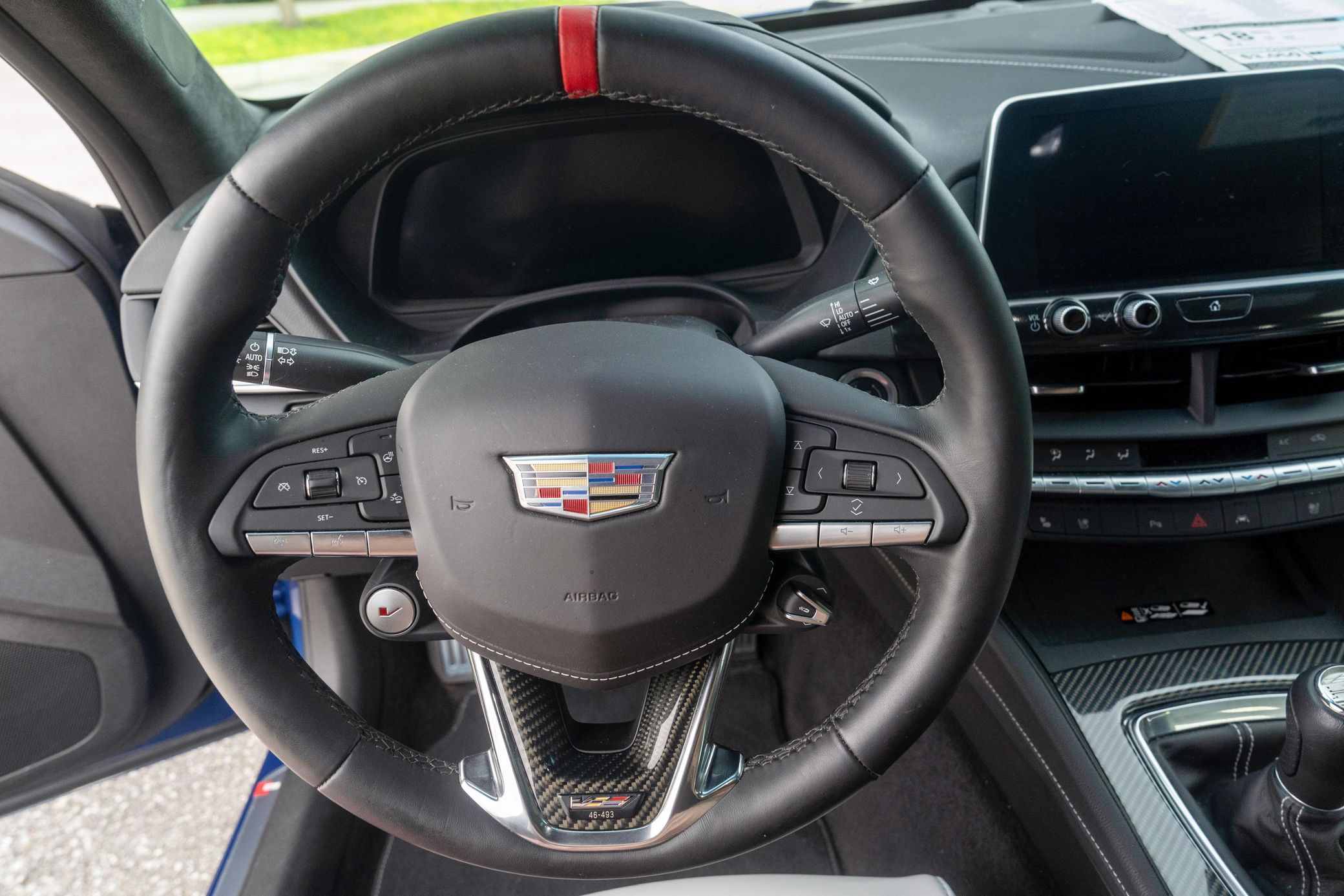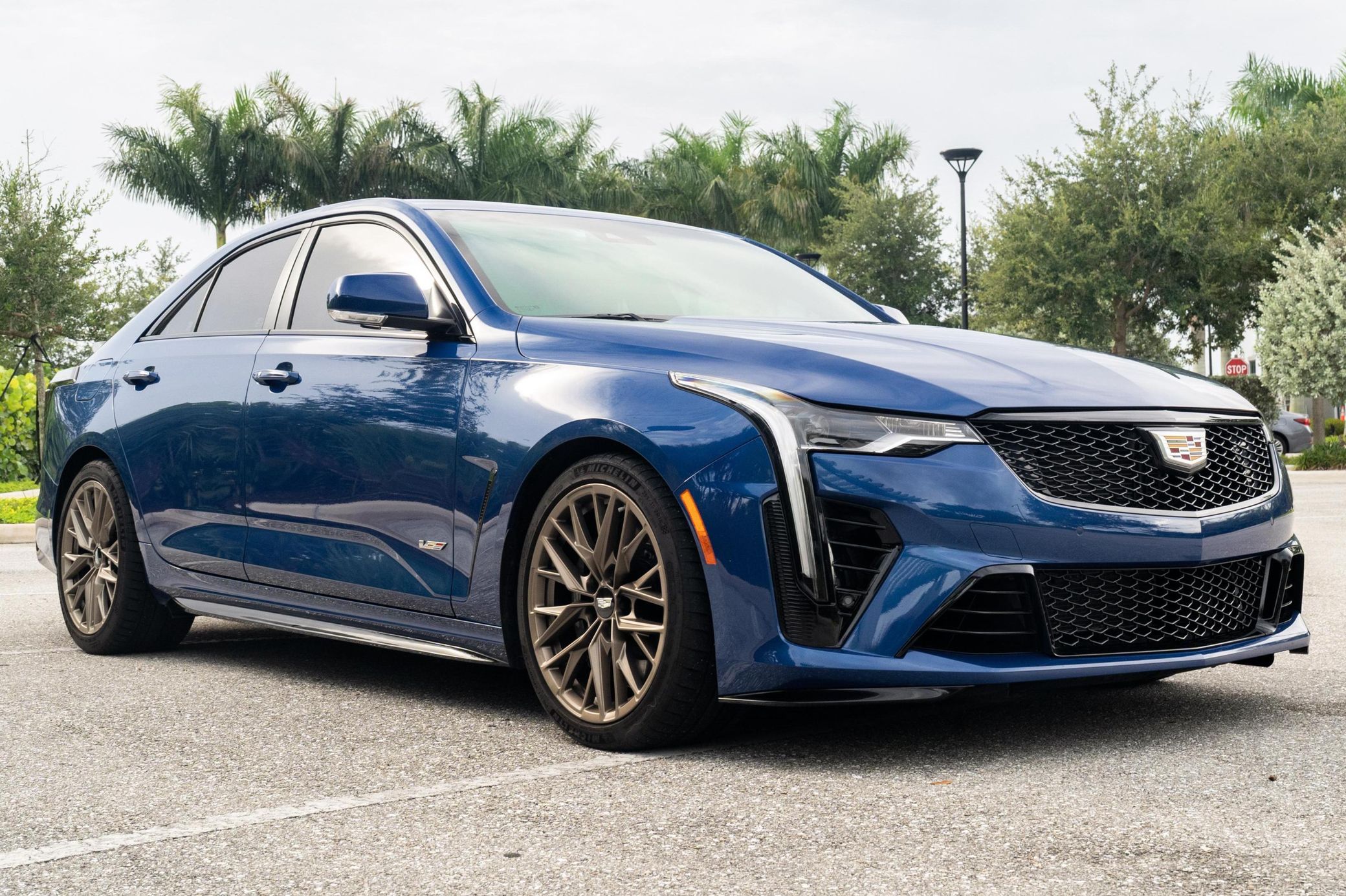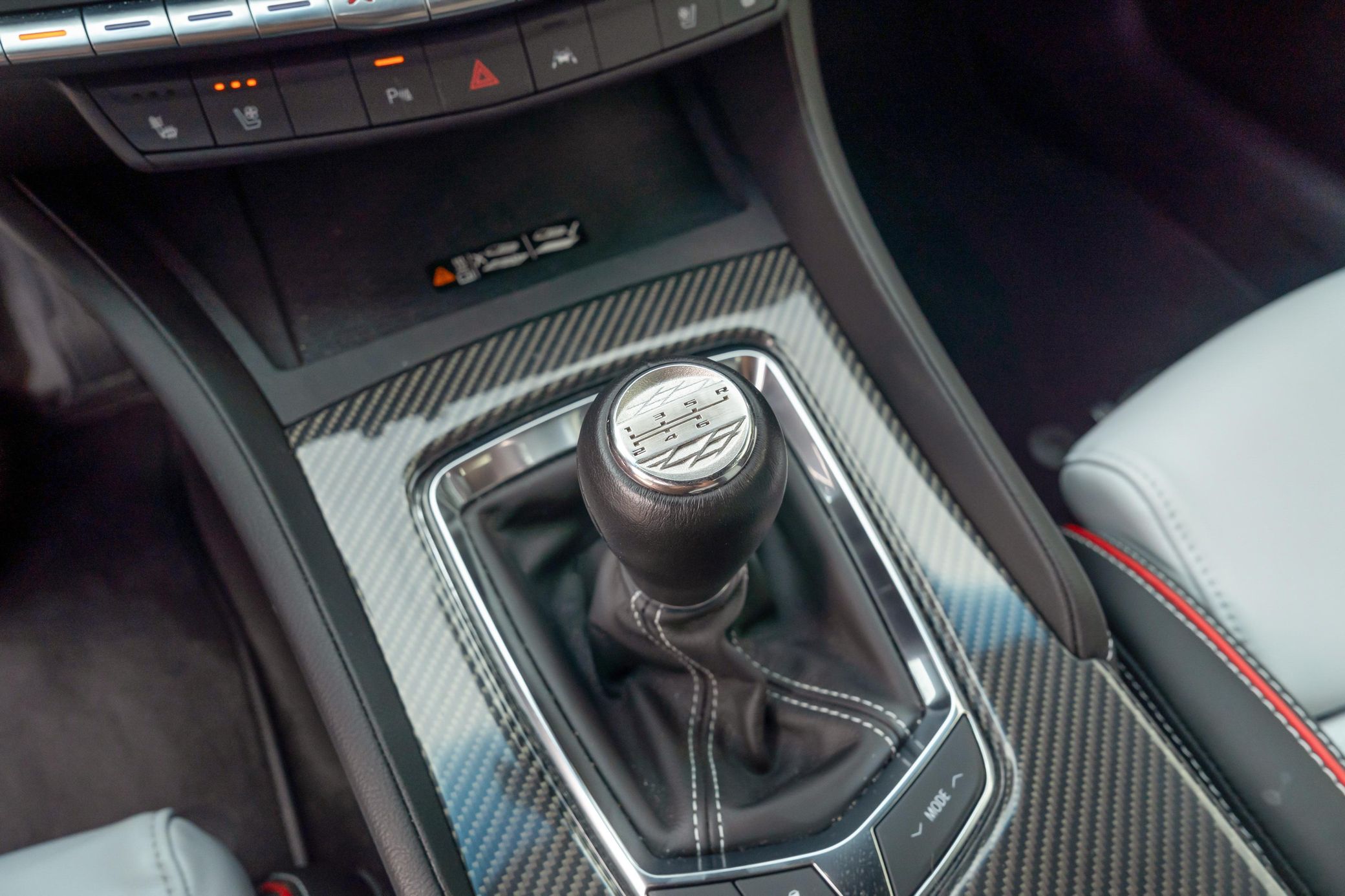 The Cadillac CT4-V Blackwing is a fantastic sport sedan that touts a twin-turbocharged V6 rated at a muscular 472 horsepower, Magnetic Ride Control suspension, and Brembo brakes. This particular example boasts the desirable 6-speed manual transmission, and it's finished in a gorgeous color combination – Wave Metallic with a Sky Cool Gray and Jet Black interior. It's also nicely equipped with the Climate and Technology packages, 18-inch alloy wheels, and a performance data and video recorder Power comes from a twin-turbocharged 3.6-liter V6 engine, rated at 472 horsepower and 445 lb-ft of torque. Output is sent to the rear wheels via a 6-speed manual transmission.