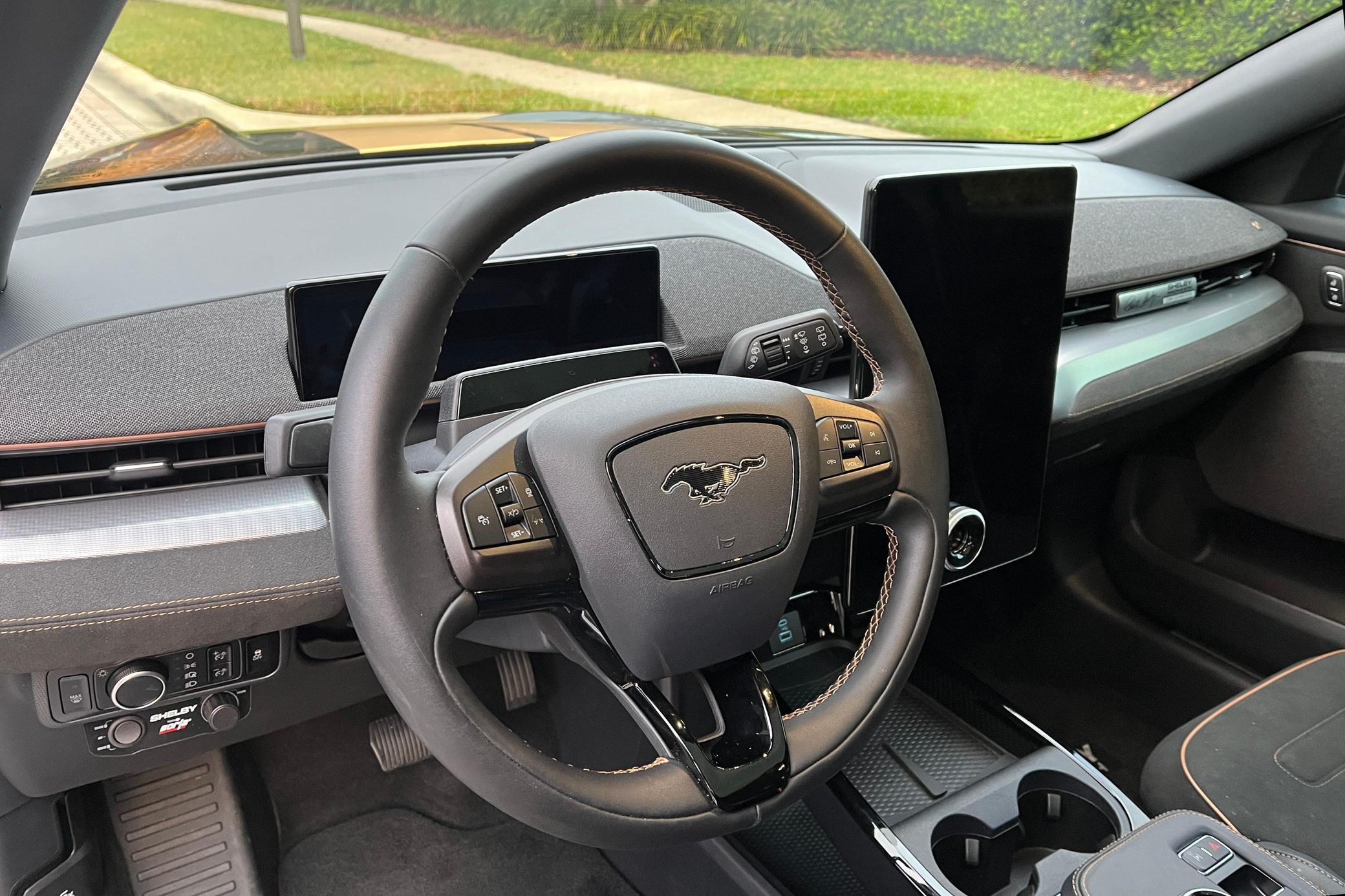 This particular Mach-E is number 49 of 100 Shelby GT-H models built for the Hertz rental car company – and, like all Mach-E GT-H models, it comes with some cool added features, including a unique Borla GT500 simulated exhaust system and the iconic "rent-a-racer" black-and-gold color scheme. It also touts an extended-range battery pack, a Bang & Olufsen sound system, and BlueCruise technology, for added comfort and convenience. Power comes from dual electric motors that draw electricity from a 91-kilowatt-hour lithium-ion battery pack to power all four wheels with 480 horsepower and 600 lb-ft of torque, according to third-party estimates. In 2023, the Mach-E GT received a maximum driving range rating of 260 miles from the EPA.