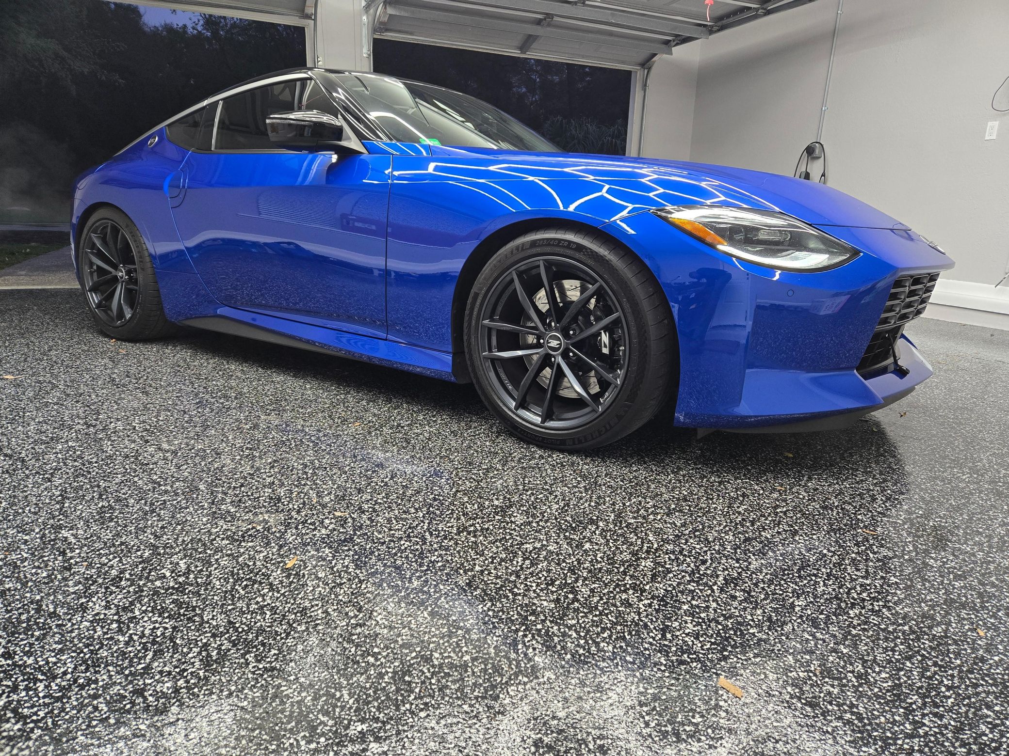 This particular Z is finished in gorgeous Seiran Blue, and it's equipped with the desirable 6-speed manual transmission. It also features several modifications to make it especially thrilling to drive, including an AMS Performance Alpha 5 kit, an EcuTek ECU tune, and an AWE Tuning cat-back exhaust system.  Power comes from a 3.0-liter turbocharged V6 rated at 400 horsepower and 350 lb-ft of torque in stock form. According to the dyno sheet pictured in the gallery, this Z produces 486 horsepower and 547 lb-ft of torque at the wheels. Output is sent to the rear wheels via a 6-speed manual transmission.