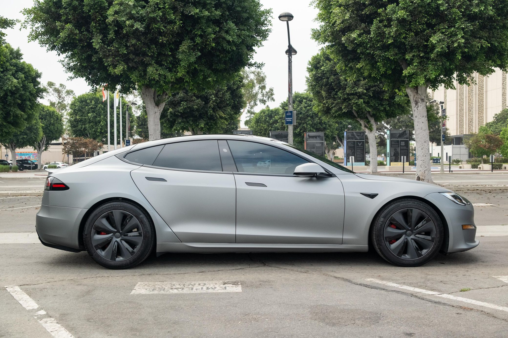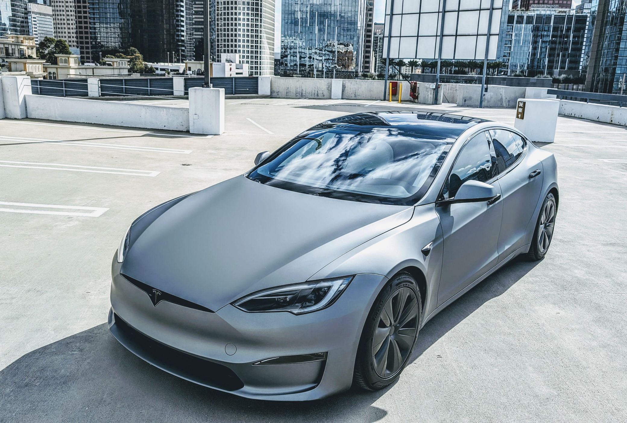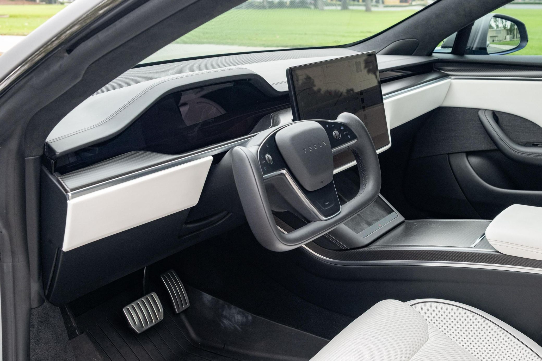 The Tesla Model S Plaid is truly an amazing car with fantastic technology and a powertrain that's rated at a mind-bending 1,020 horsepower – all while retaining the practicality of a large four-door luxury sedan. This particular Plaid features an attractive matte grey exterior wrap, and it's well-equipped with adaptive air suspension, a panoramic glass roof, Full Self Driving capability, and the famous yoke steering wheel. Power comes from three electric motors, which draw electricity from a 100-kilowatt-hour lithium-ion battery pack that moves all four wheels with 1,020 horsepower and 1,050 lb-ft of torque, according to third-party estimates. In 2023, the EPA gave the Plaid a maximum driving range of 359 miles when fitted with 19-inch wheels.