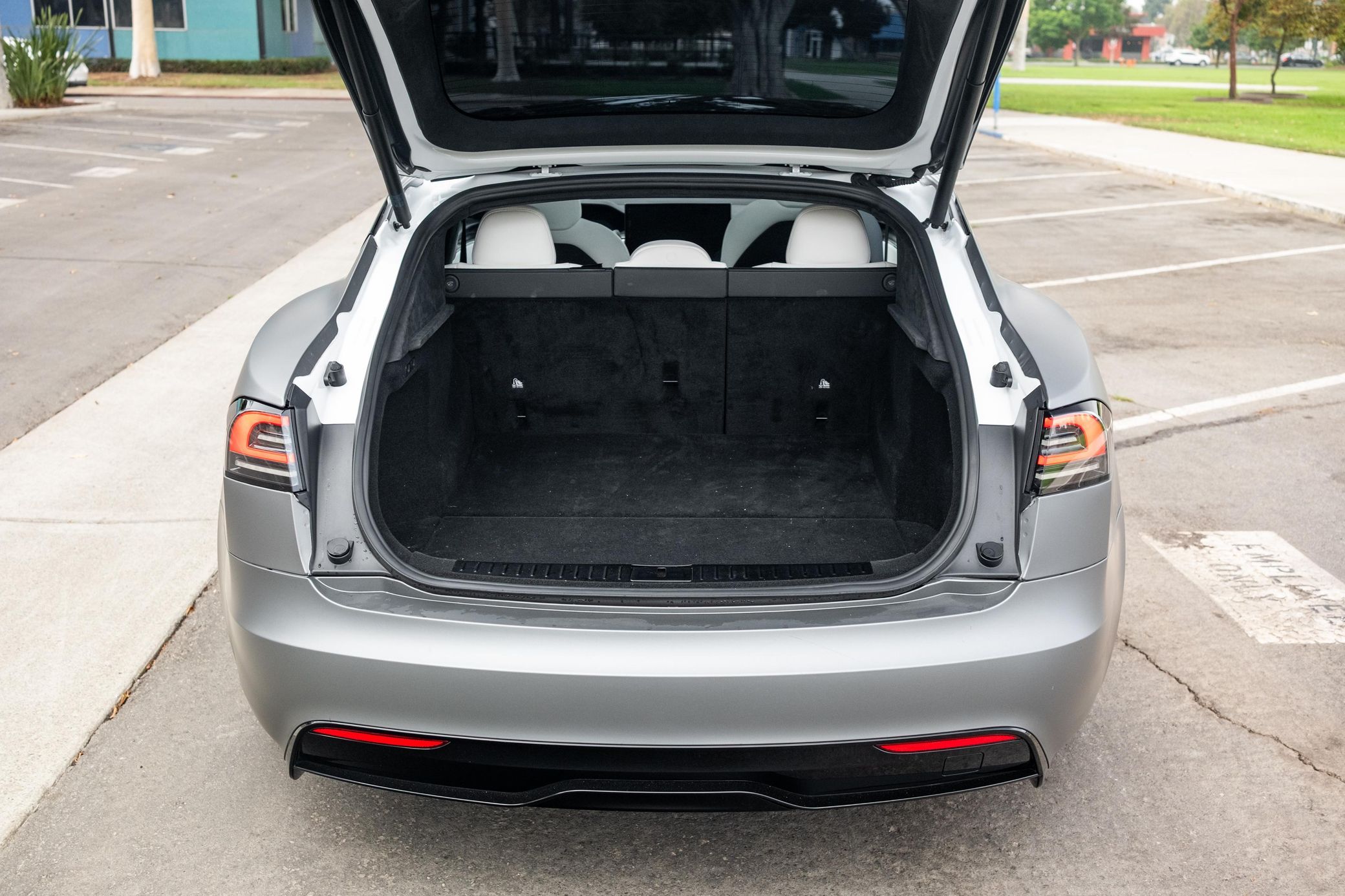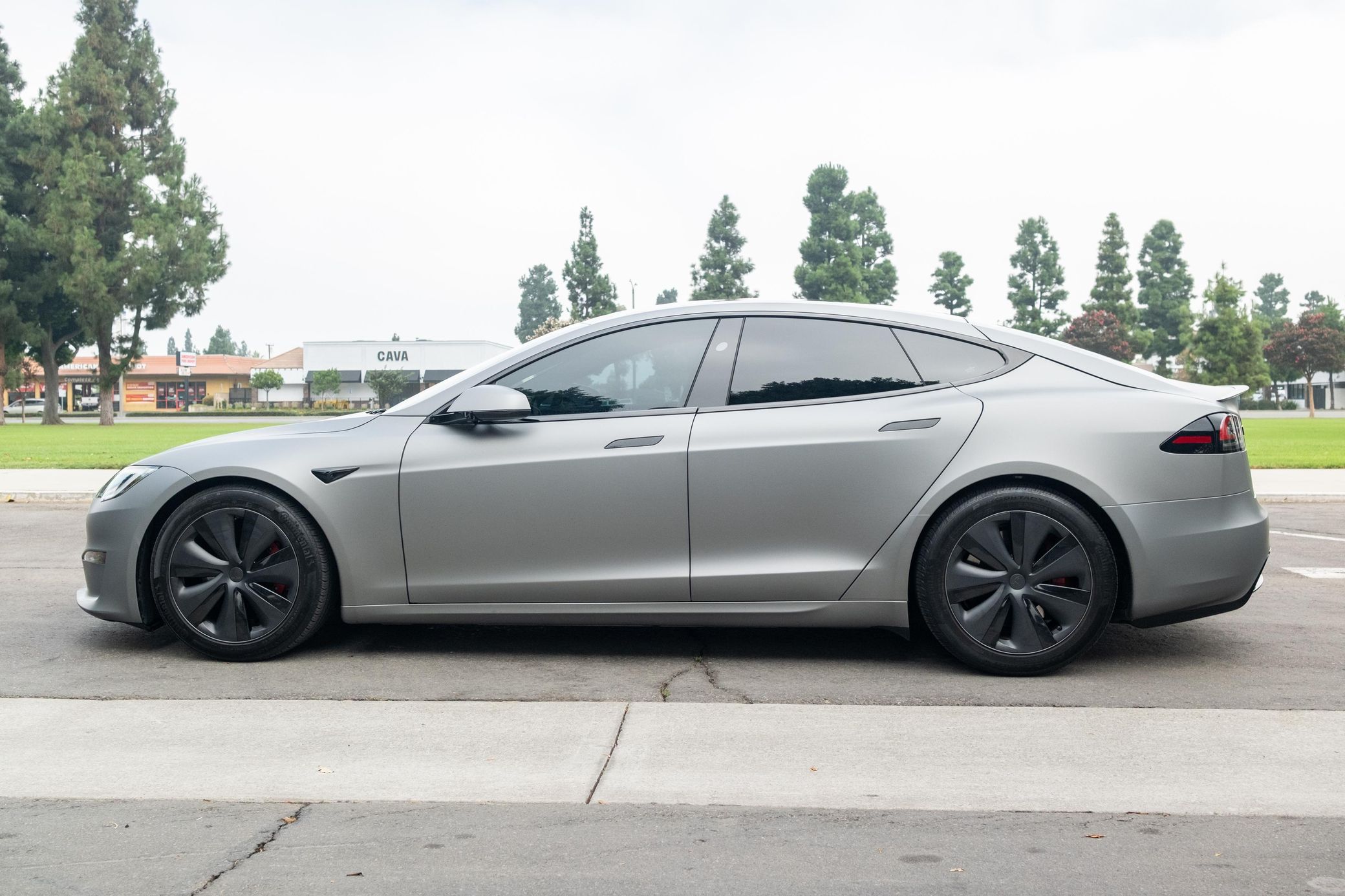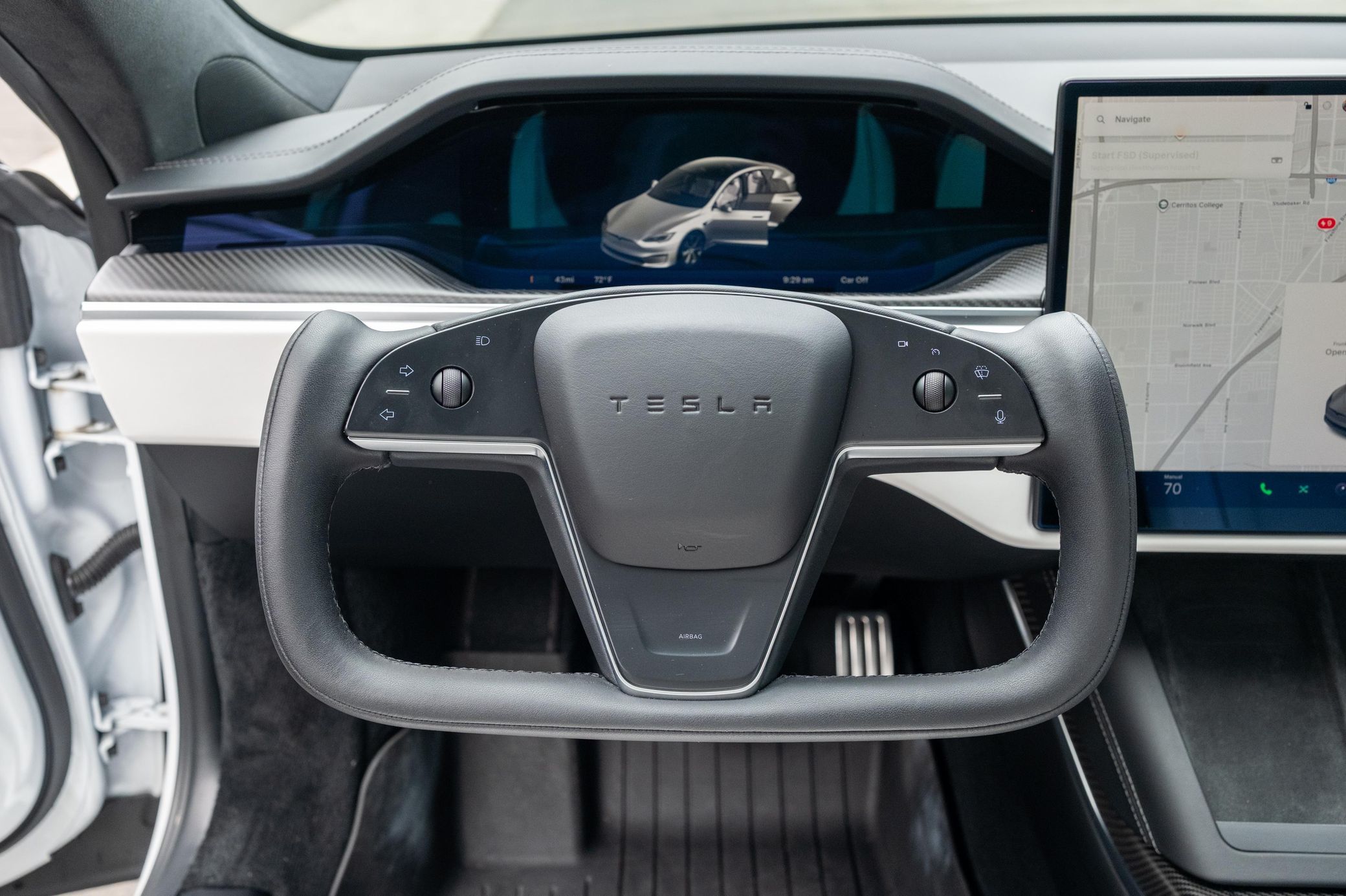 The Tesla Model S Plaid is truly an amazing car with fantastic technology and a powertrain that's rated at a mind-bending 1,020 horsepower – all while retaining the practicality of a large four-door luxury sedan. This particular Plaid features an attractive matte grey exterior wrap, and it's well-equipped with adaptive air suspension, a panoramic glass roof, Full Self Driving capability, and the famous yoke steering wheel. Power comes from three electric motors, which draw electricity from a 100-kilowatt-hour lithium-ion battery pack that moves all four wheels with 1,020 horsepower and 1,050 lb-ft of torque, according to third-party estimates. In 2023, the EPA gave the Plaid a maximum driving range of 359 miles when fitted with 19-inch wheels.