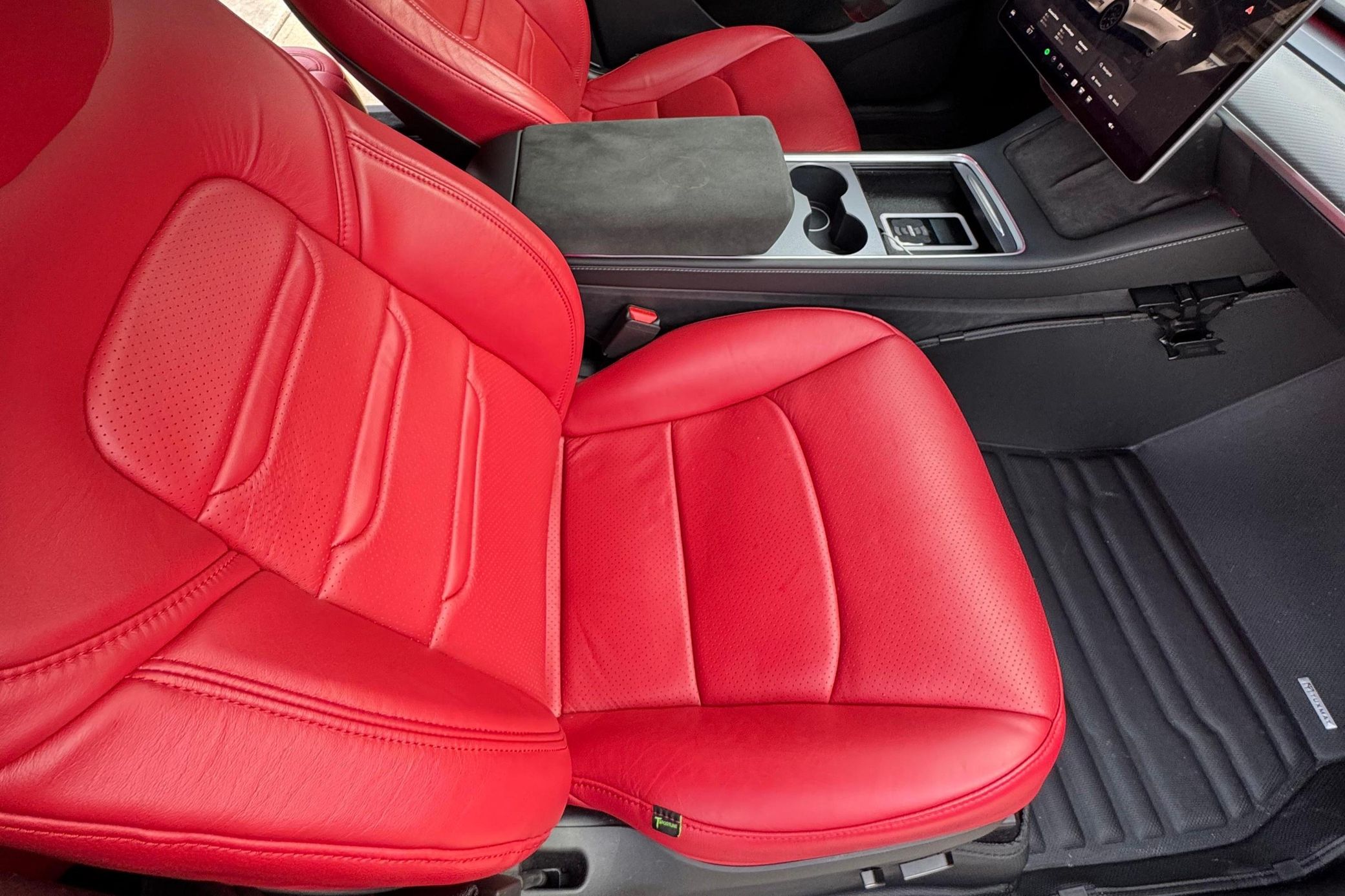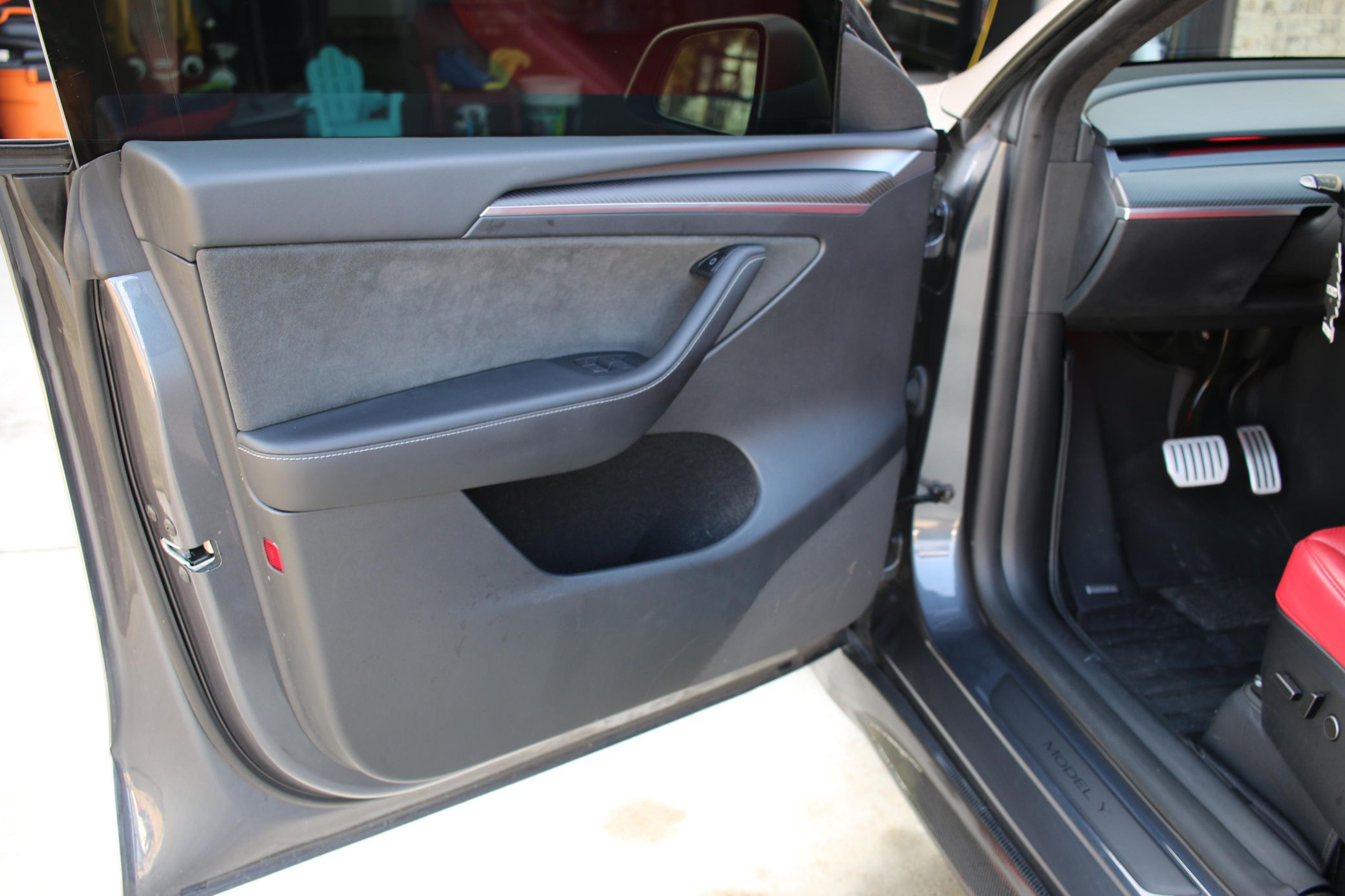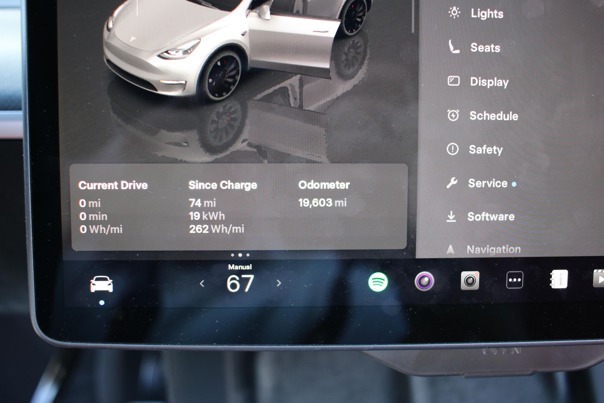 This particular Model Y Performance features some cool upgrades intended to enhance its style, including an Air Lift Performance air suspension system, a 3M Matte Grey Aluminum exterior wrap, 21-inch VTForged wheels, a carbon fiber front lip, side skirts, and rear diffuser, and T Sportline perforated leather seats. Power comes from a pair of electric motors, which draw electricity from a 75-kilowatt-hour lithium-ion battery pack to zap the four wheels with about 455 horsepower and 480 lb-ft of torque. The EPA gave the Model Y Performance a 303-mile maximum driving range rating in 2023.