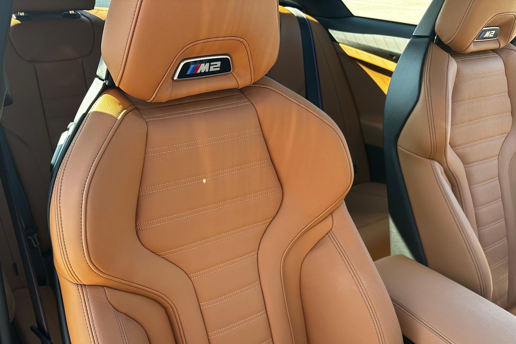 The G87 BMW M2 is a fantastic sports car that boasts thrilling performance and an engaging driving character, thanks to a powerful twin-turbo 6-cylinder and an agile rear-drive chassis. This particular M2 features a head-turning Zandvoort Blue over Cognac color combination and some great factory equipment – including adaptive M suspension, heated front seats, and a Harman/Kardon sound system. Power comes from an S58 3.0-liter twin-turbocharged inline-6, rated at 453 horsepower and 406 lb-ft of torque. Output is sent to the rear wheels via an 8-speed automatic transmission.