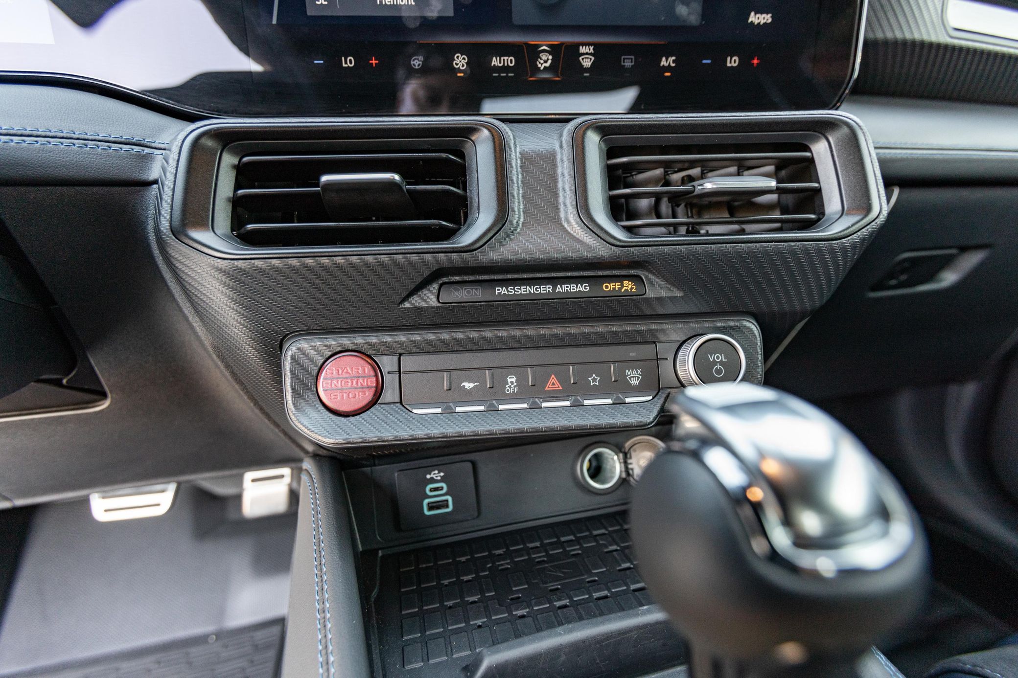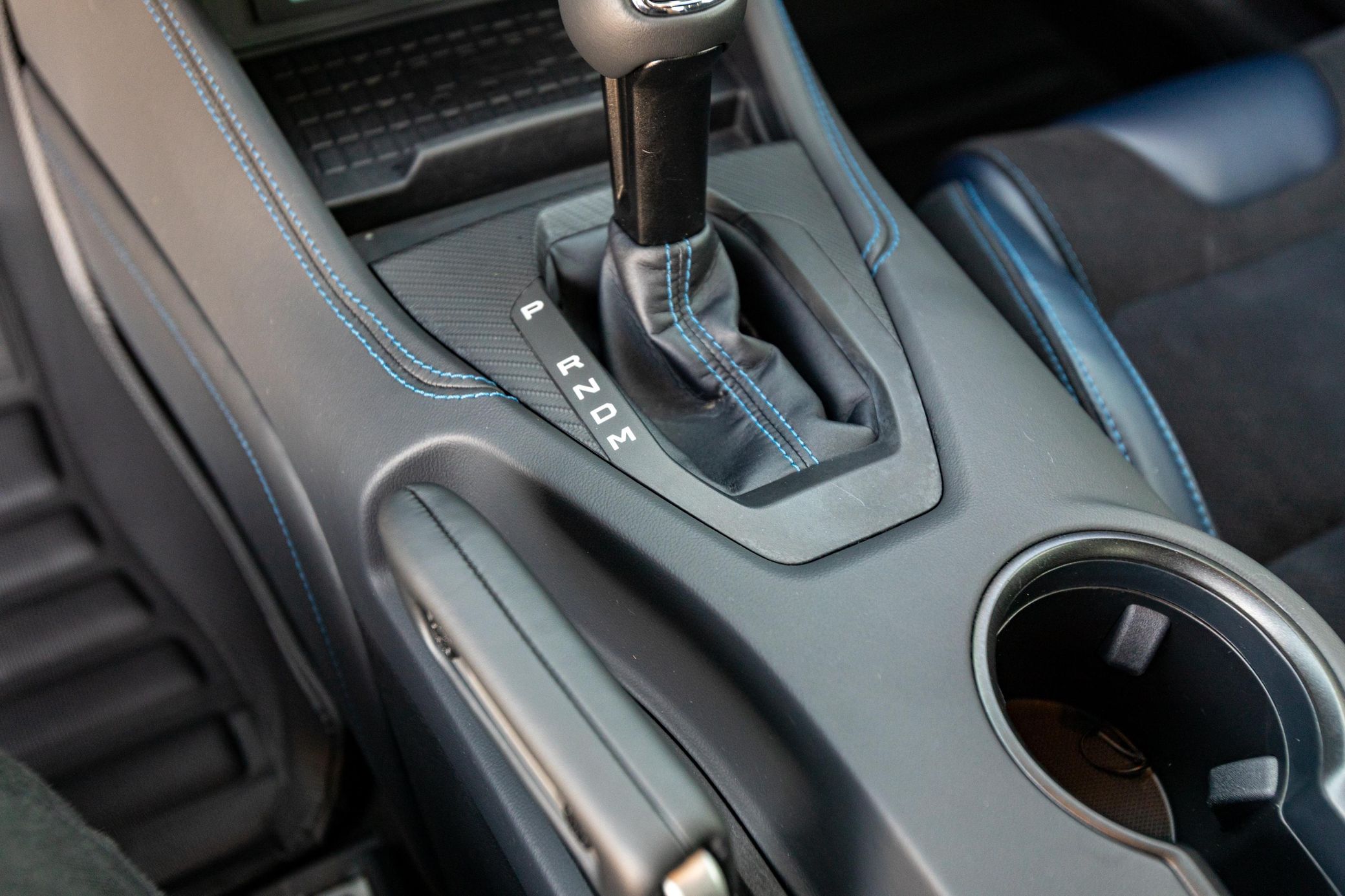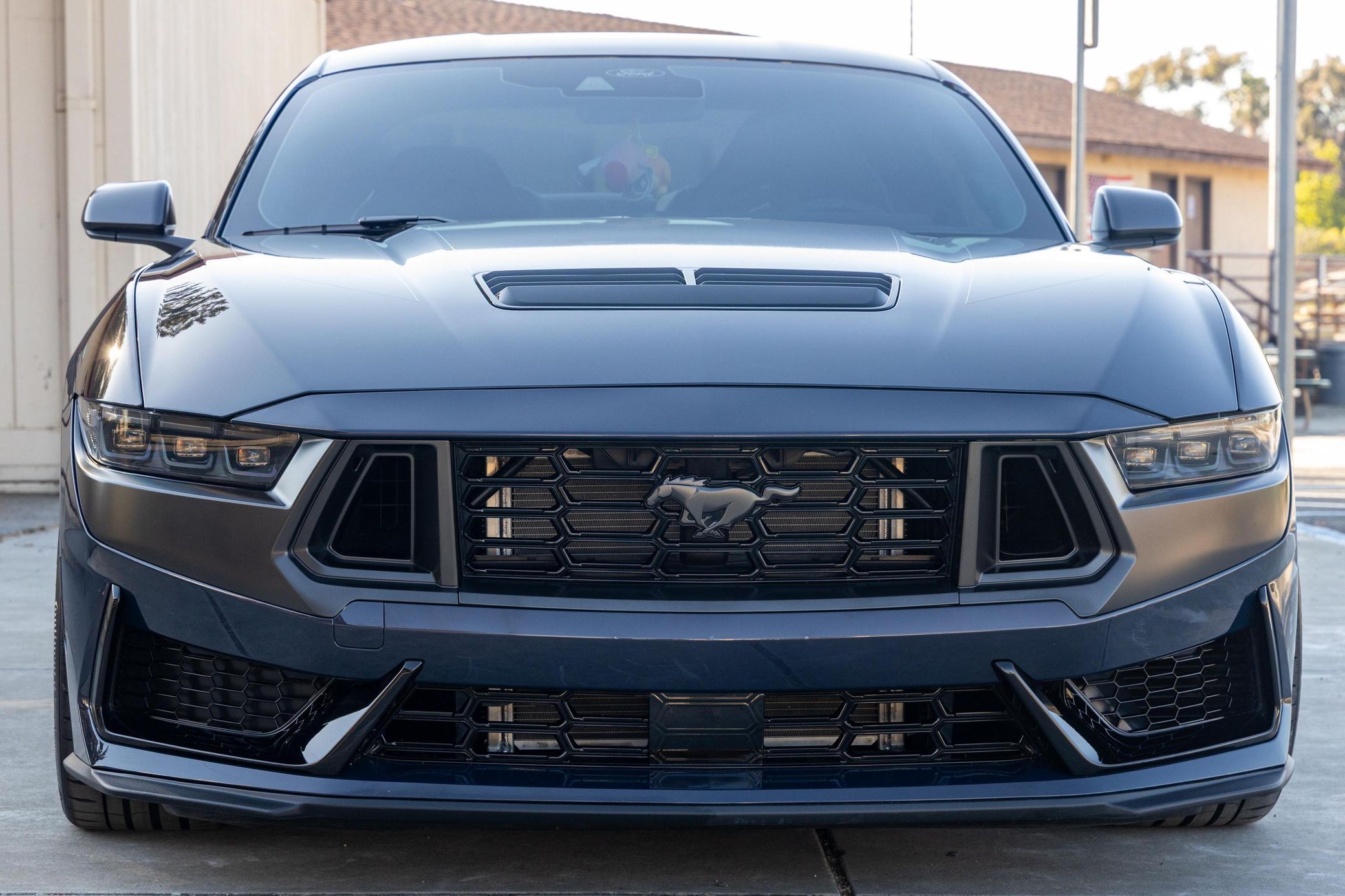 The new S650 Ford Mustang is a fantastic sports car that combines muscle car performance with modern technology. This particular Mustang is a Dark Horse Premium model, so it features a cool appearance package and some great equipment like Brembo brake calipers, a Torsen limited-slip differential, Recaro front seats, and a Bang & Olufsen sound system. It also boasts a Roush Stage 2 supercharger for even greater performance, along with a Steeda cold air intake and a Borla exhaust. Power comes from a supercharged 5.0-liter V8, rated at 500 horsepower and 418 lb-ft of torque in stock, naturally aspirated form. Due to the modifications performed to this Mustang, it may produce more power, but a dyno sheet was not provided to confirm. Output is sent to the rear wheels via a 10-speed automatic transmission.
