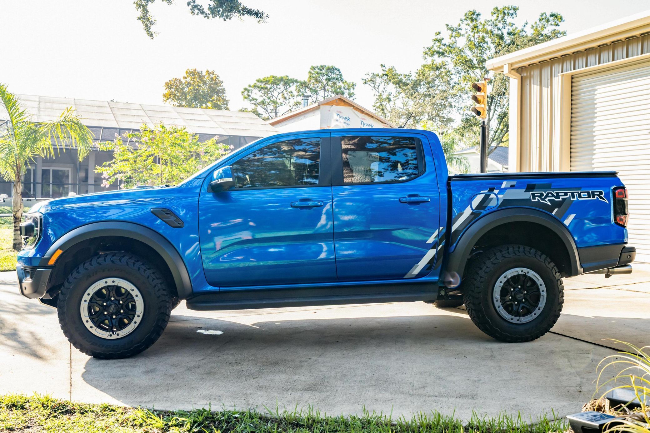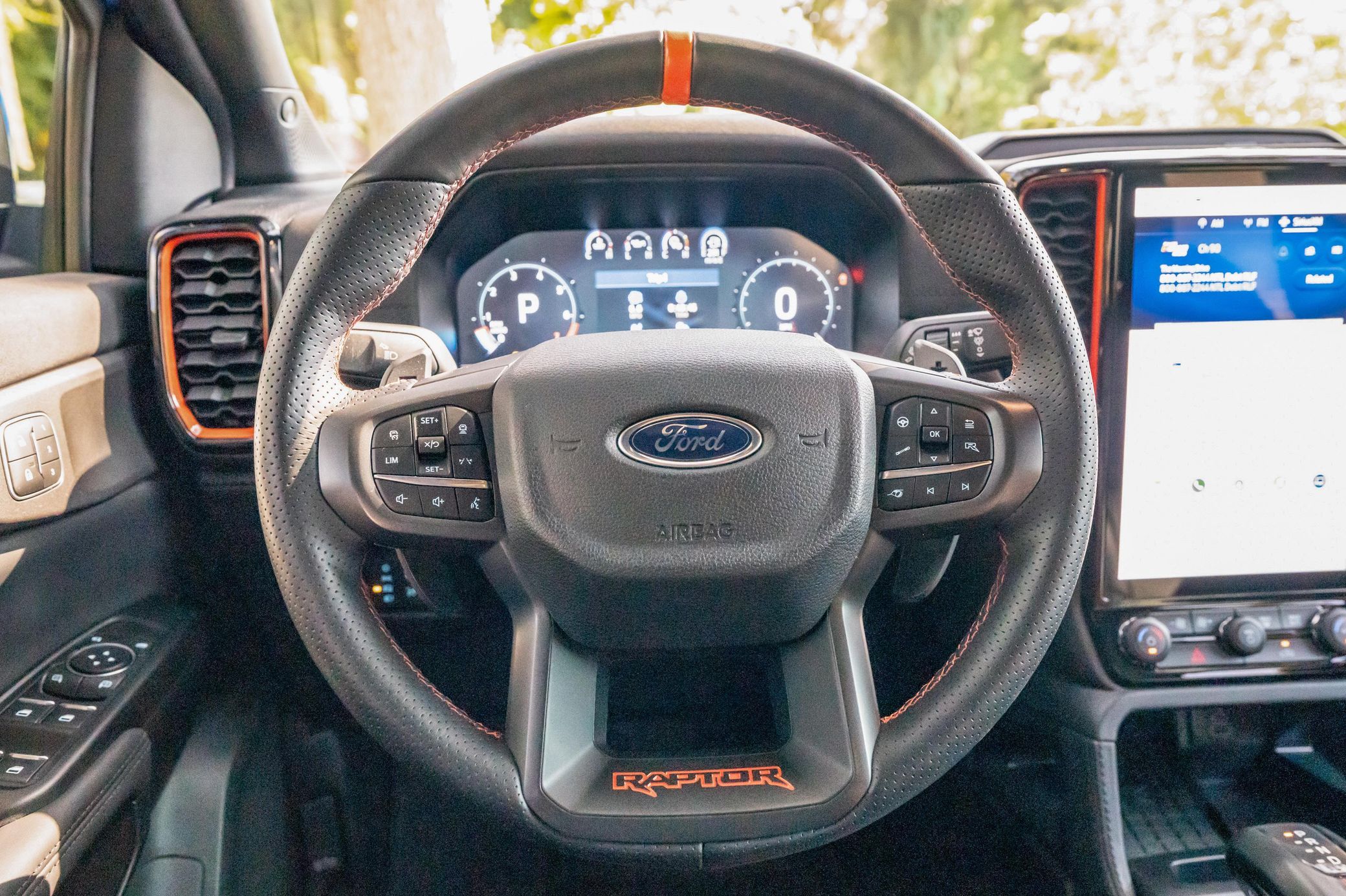 The Ranger Raptor is Ford's ultimate midsize off-roader, bringing the brand's desert-racing expertise to a smaller, more agile package. The Ranger Raptor boasts some great features like a 405-horsepower twin-turbo V6, Fox Live Valve shocks, and front/rear locking diffs. Power comes from a 3.0-liter twin-turbocharged V6, rated at 405 horsepower and 430 lb-ft of torque. Output is sent to the rear or all four wheels through a 10-speed automatic transmission.