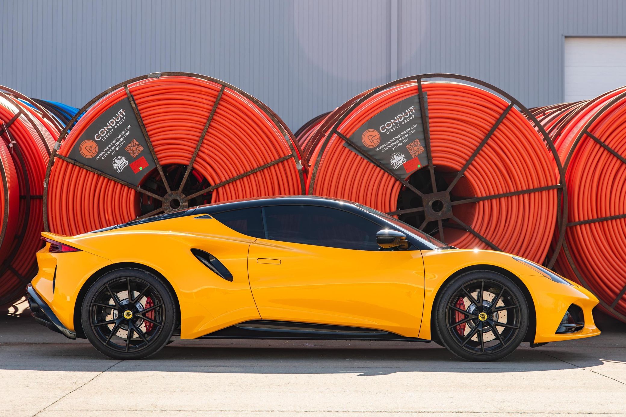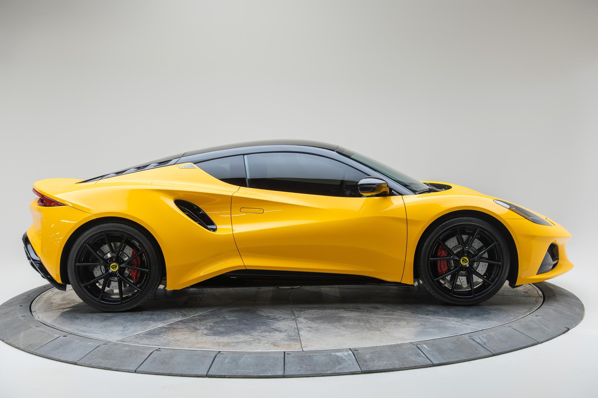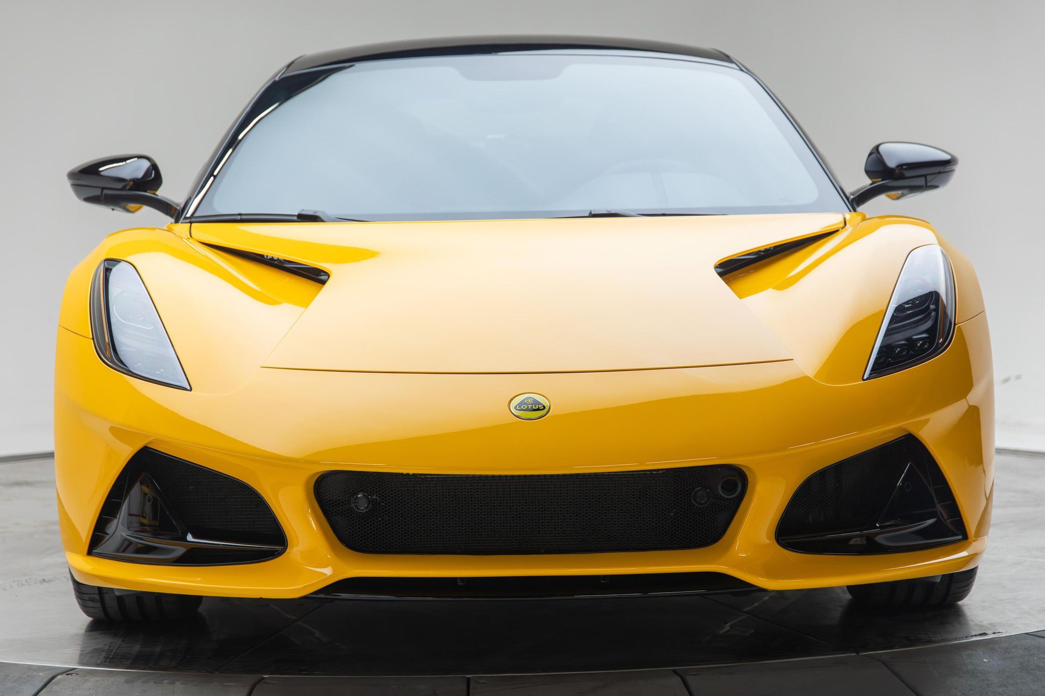 its nimble handling, and its potent 400-horsepower supercharged V6. This particular Emira is a First Edition model that's equipped with the desirable 6-speed manual transmission. It's also finished in a head-turning Hethel Yellow over red color combination, and it's well-equipped with the Full Black Pack, the Touring suspension system, heated sport seats, and a KEF Uni-Q Premium Audio sound system. To top it off, this Emira touts low mileage