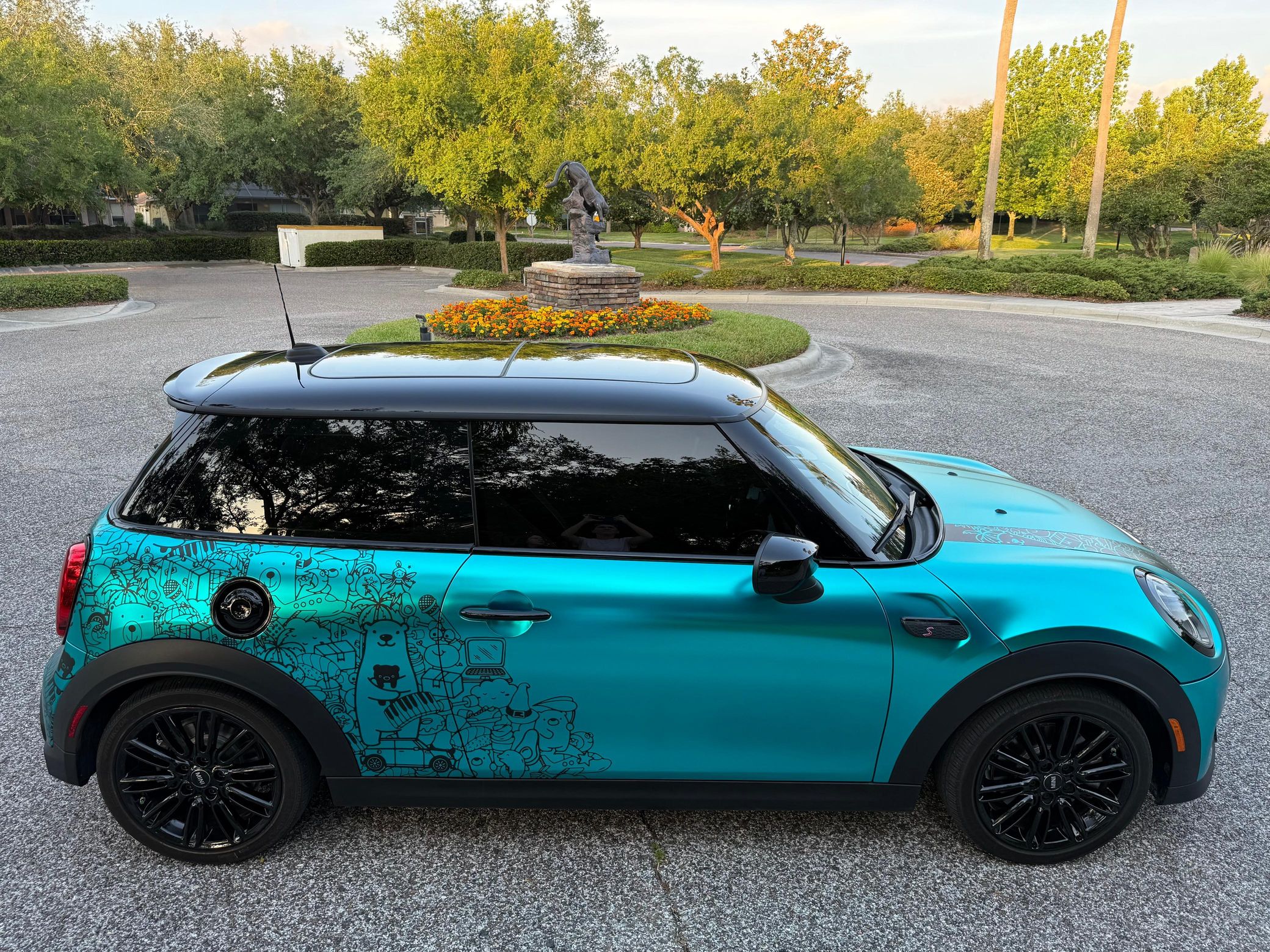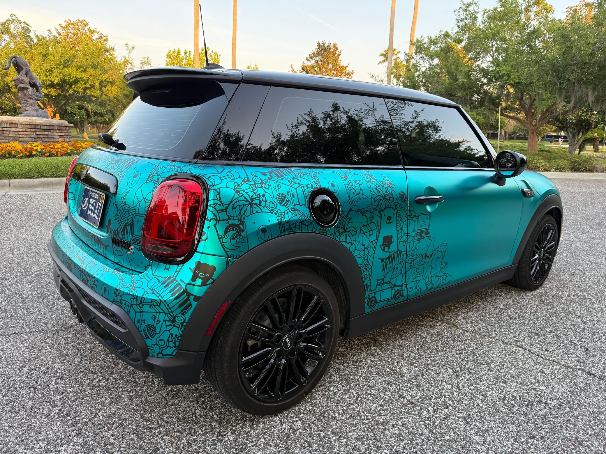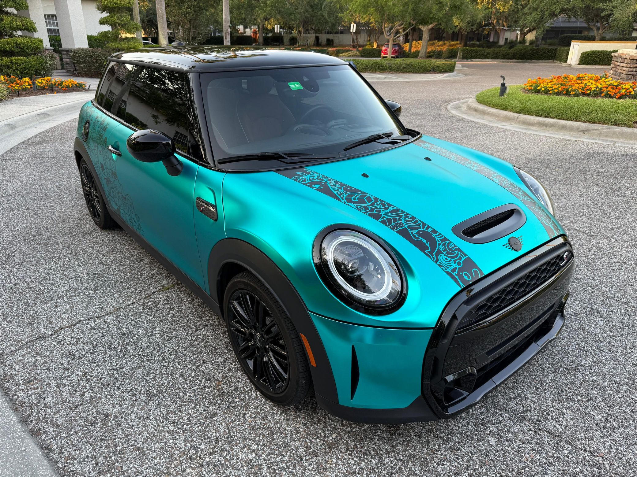 This particular Mini features an eye-catching exterior wrap, which looks great against the Malt Brown leather interior. It also boasts some nice equipment like 17-inch wheels, adaptive suspension, a panoramic glass roof, and heated front seats. Power comes from a turbocharged 2.0-liter inline-4, rated at 189 horsepower and 206 lb-ft of torque. Output is sent to the front wheels via a 7-speed automatic transmission.