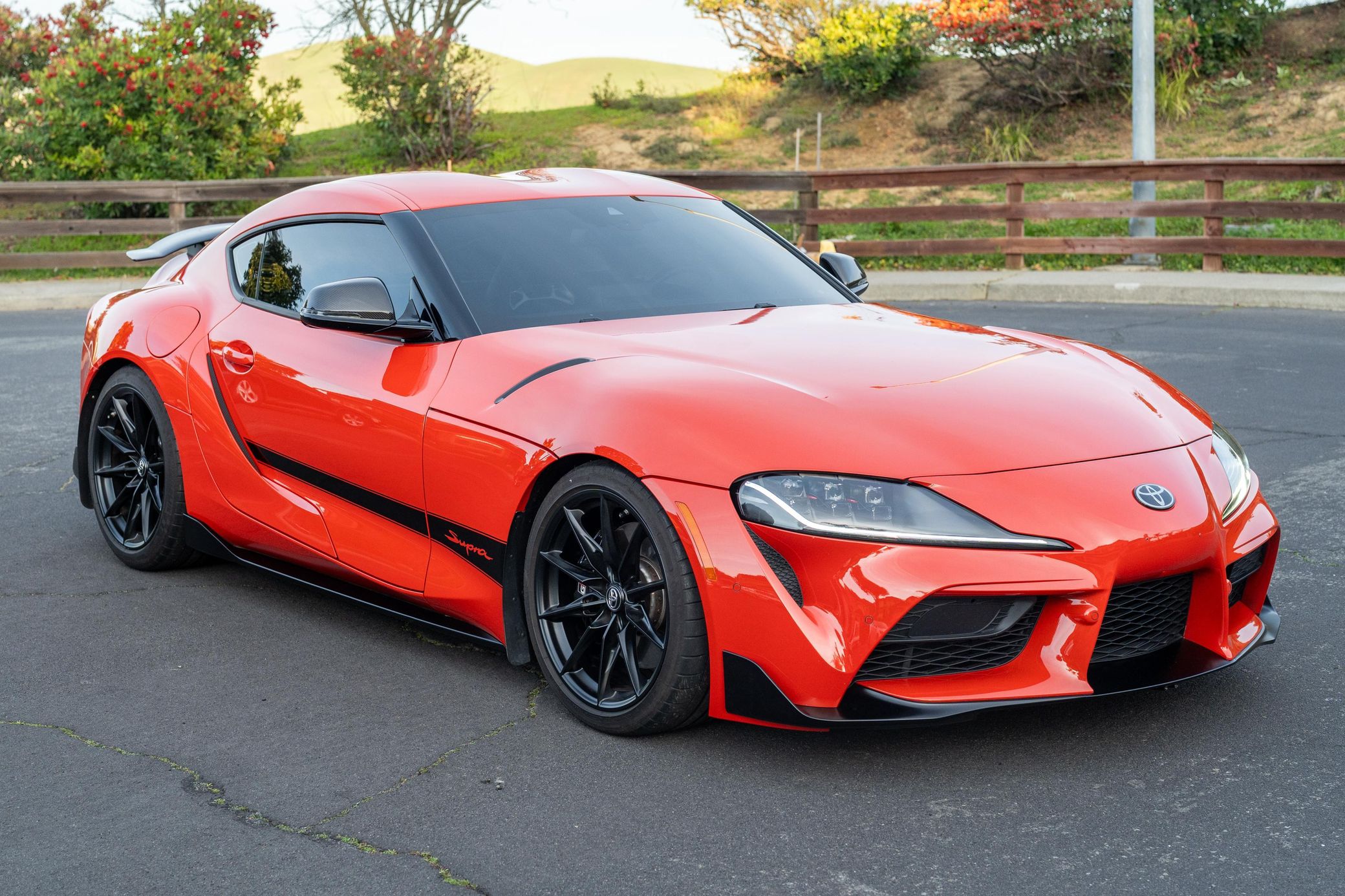 The MkV Toyota Supra is a desirable sports car that combines striking styling, agile handling, and potent performance from its B58 turbocharged 6-cylinder engine. This particular example is a rare 45th Anniversary Edition model that's finished in gorgeous Mikan Blast. It also boasts some great factory equipment, including 19-inch wheels, Brembo front brakes, and heated seats – along with several cool modifications like a REMARK cat-back exhaust and HKS springs.  Power comes from a 3.0-liter turbocharged straight-6, rated at 382 horsepower and 368 lb-ft of torque. Output is sent to the rear wheels via an 8-speed automatic transmission.