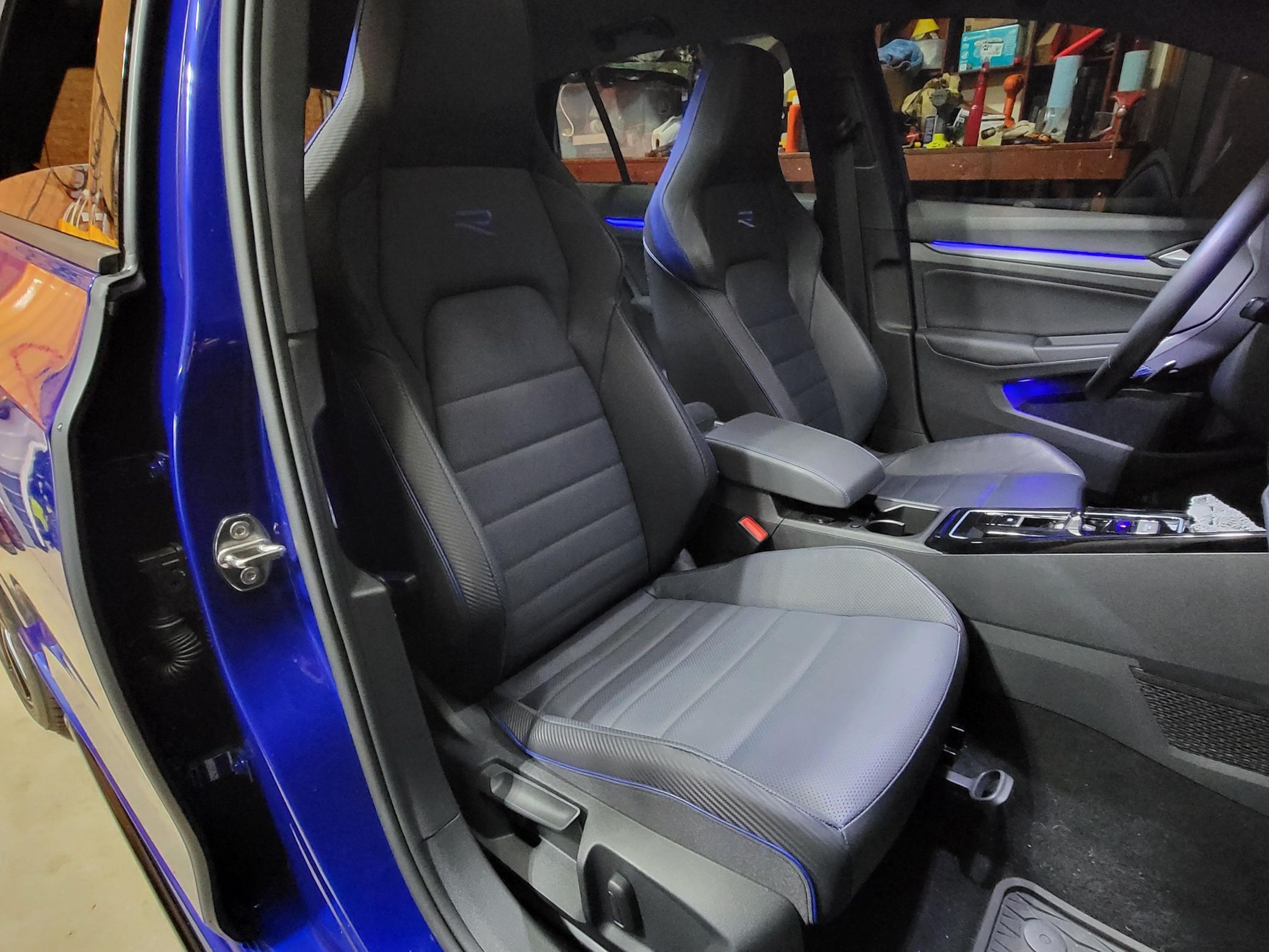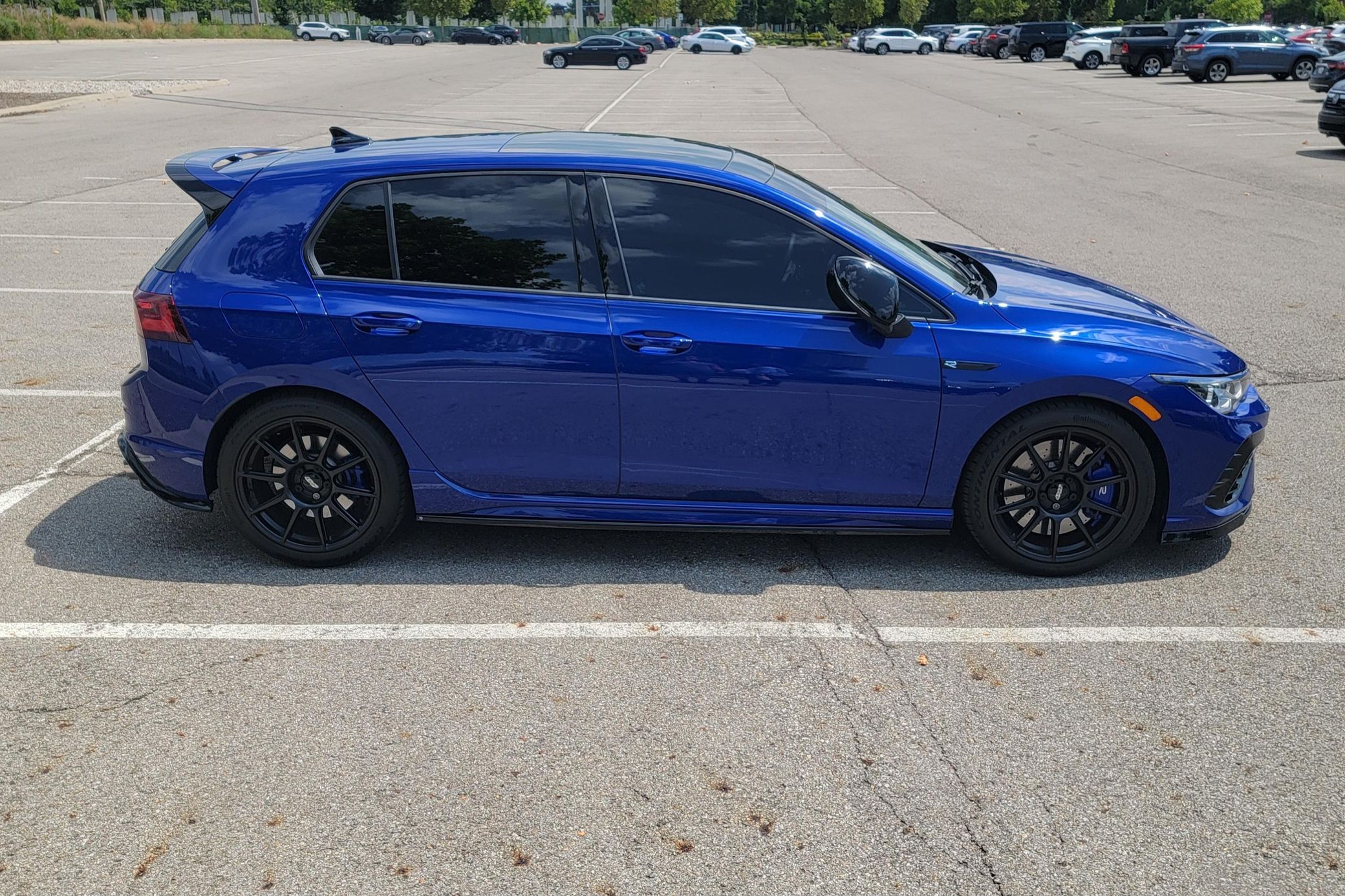 The Mk8 Volkswagen Golf R is a thrilling hot hatchback, offering a powerful turbocharged 4-cylinder engine, 4Motion all-wheel drive, and a high-quality interior. This particular Golf R is finished in gorgeous Lapis Blue Metallic, and it's well-equipped with Nappa leather upholstery, heated and ventilated front seats, and a Harman/Kardon sound system. It also boasts some cool upgrades like an MBRP exhaust system, 18-inch Apex racing wheels, and an ECS front lip and rear diffuser. Power comes from a 2.0-liter turbocharged inline-4, rated at 315 horsepower and 295 lb-ft of torque. Output is sent to all four wheels via a 7-speed dual-clutch automatic transmission and Volkswagen's R-Performance 4Motion permanent all-wheel drive system.