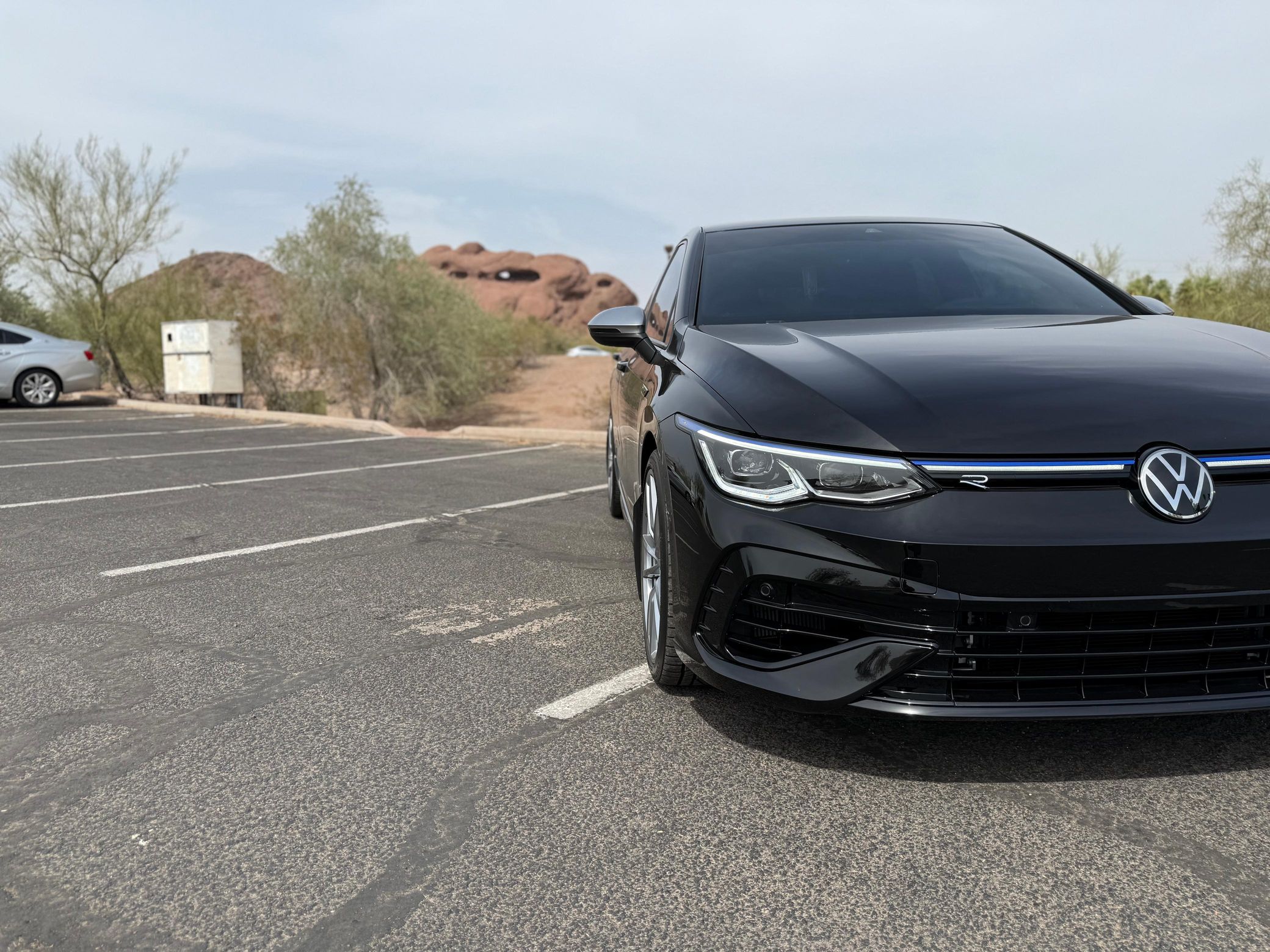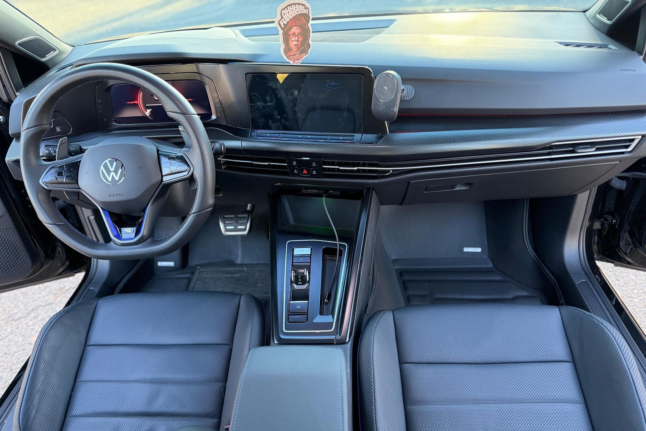 The latest Volkswagen Golf R is an excellent hot hatchback that boasts aggressive styling, all-wheel drive, and a potent turbocharged 4-cylinder engine – all while still offering a practical interior that's loaded with technology. This particular Golf R is finished in handsome Mythos Black Metallic, and it features some nice equipment like Nappa leather upholstery, heated and ventilated front seats, and a Harman/Kardon sound system.
