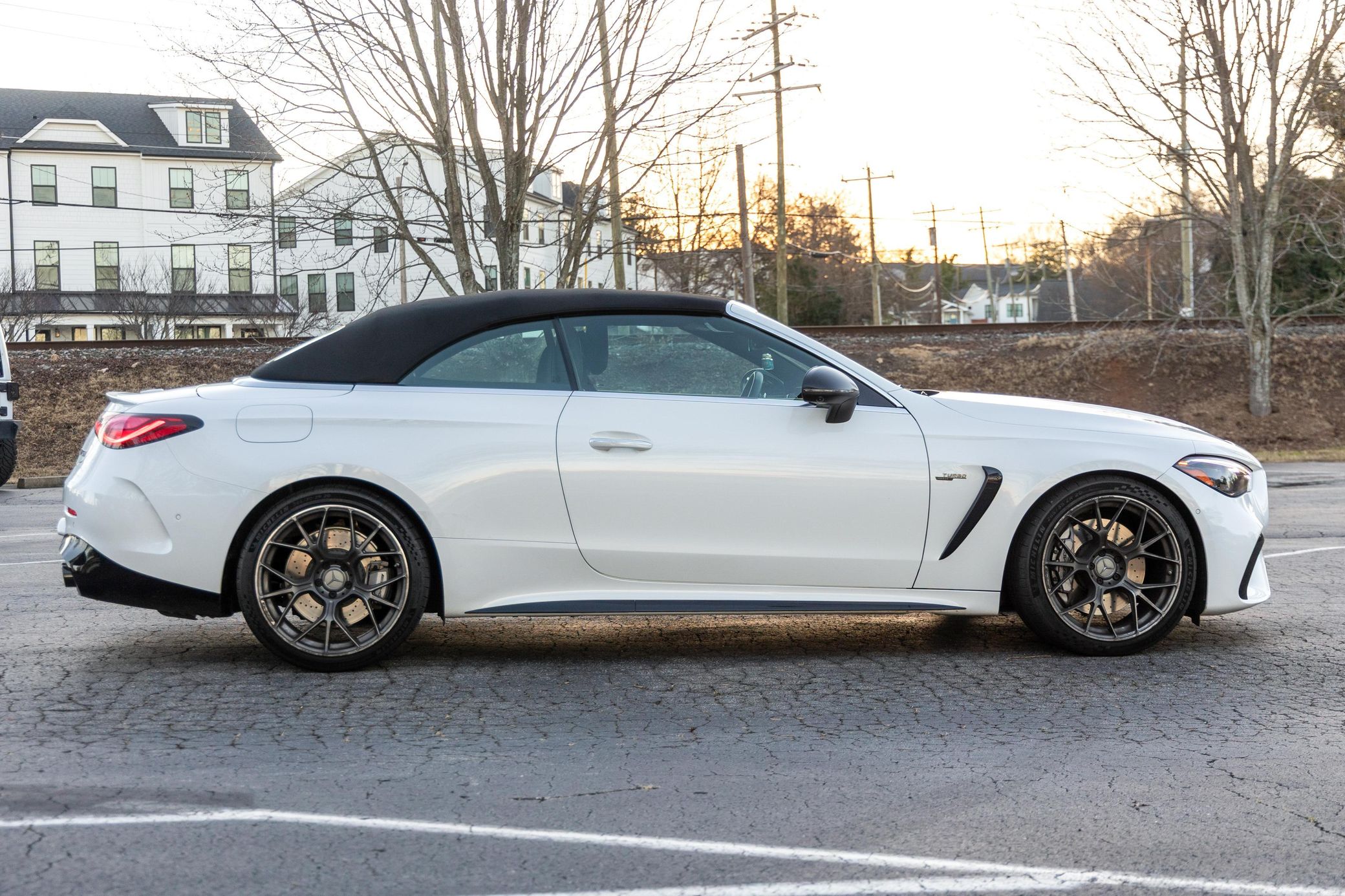 The new A236 Mercedes-AMG CLE53 Cabriolet is a handsome grand tourer that boasts impressive performance from its 443 horsepower turbocharged 6-cylinder engine and 4Matic+ all-wheel drive system. This example is finished in attractive Manufaktur Moonlight White Metallic, and it's well-equipped with the Pinnacle Trim, the AMG Night Package Plus, 20-inch AMG forged wheels, and an AMG performance exhaust. Power comes from a 3.0-liter turbocharged inline-6 with a 48-volt mild-hybrid system, rated at 443 horsepower and 413 lb-ft of torque. Output is sent to the four wheels via a 9-speed automatic transmission 4Matic+ all-wheel drive system.