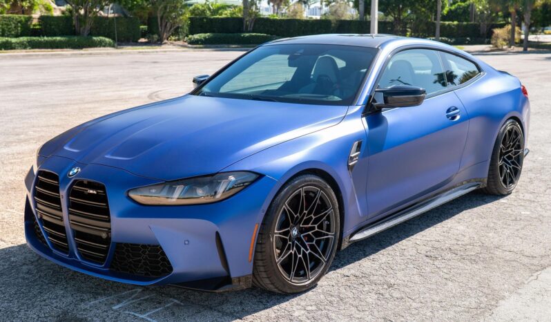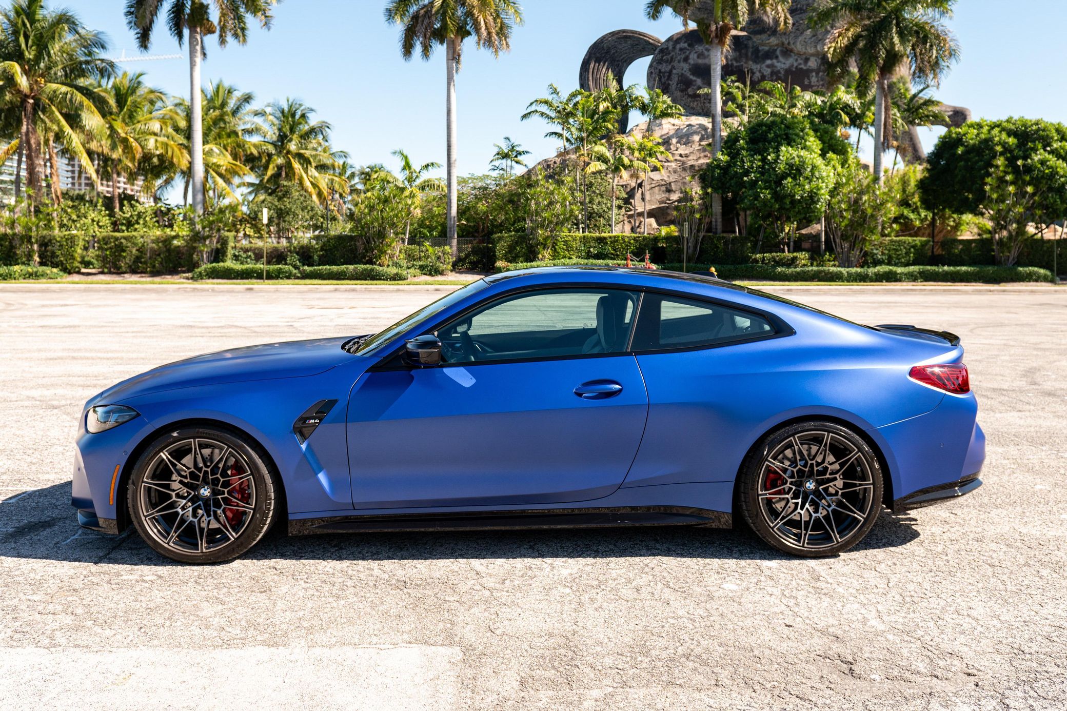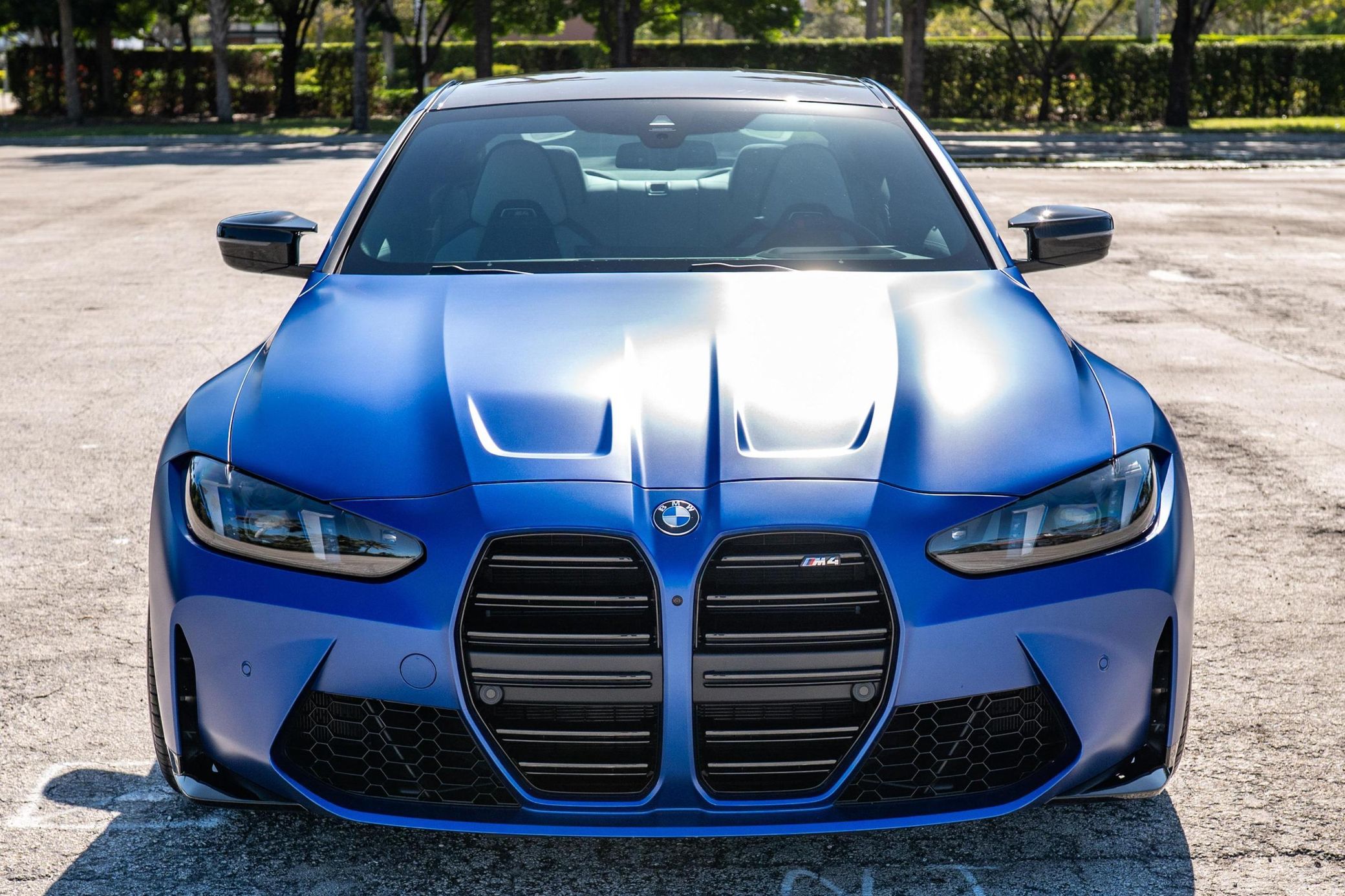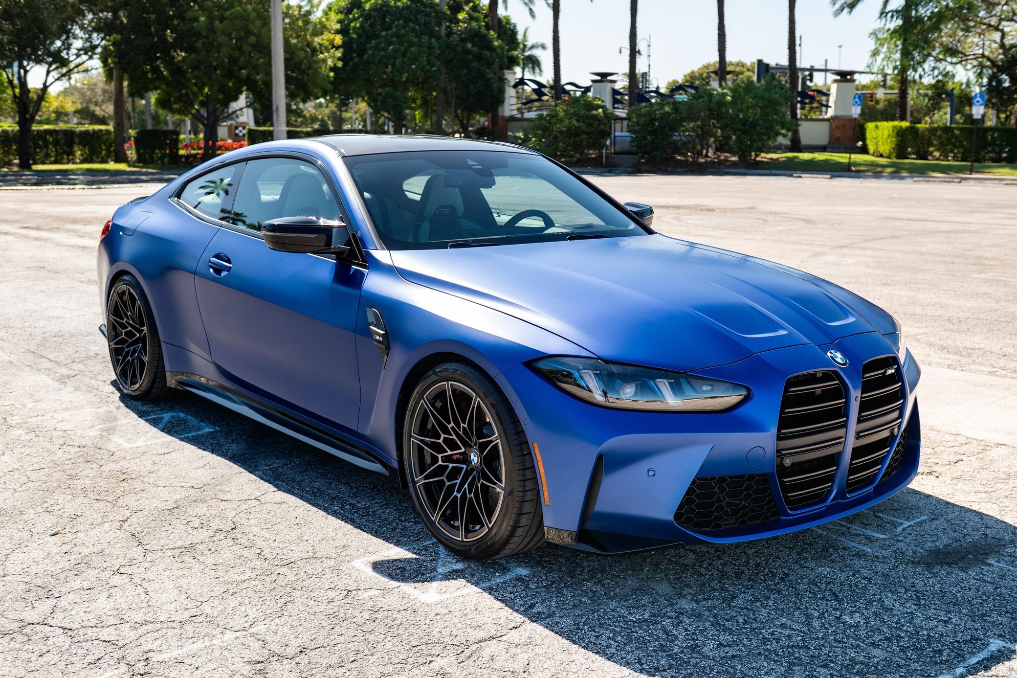 The G82 BMW M4 is a great performance car that offers twin-turbo straight-6 power and a thrilling driving experience – especially when equipped with a 6-speed manual transmission, like this one. This M4 is also finished in gorgeous Frozen Portimao Blue, and it's well-equipped with the Executive and Parking Assistant packages, a carbon fiber roof panel, heated and ventilated front sport seats, and a Harman Kardon surround sound system.  Power comes from a 3.0-liter twin-turbocharged straight-6, rated at 473 horsepower and 406 lb-ft of torque. Output is sent to the rear wheels via a 6-speed manual transmission.