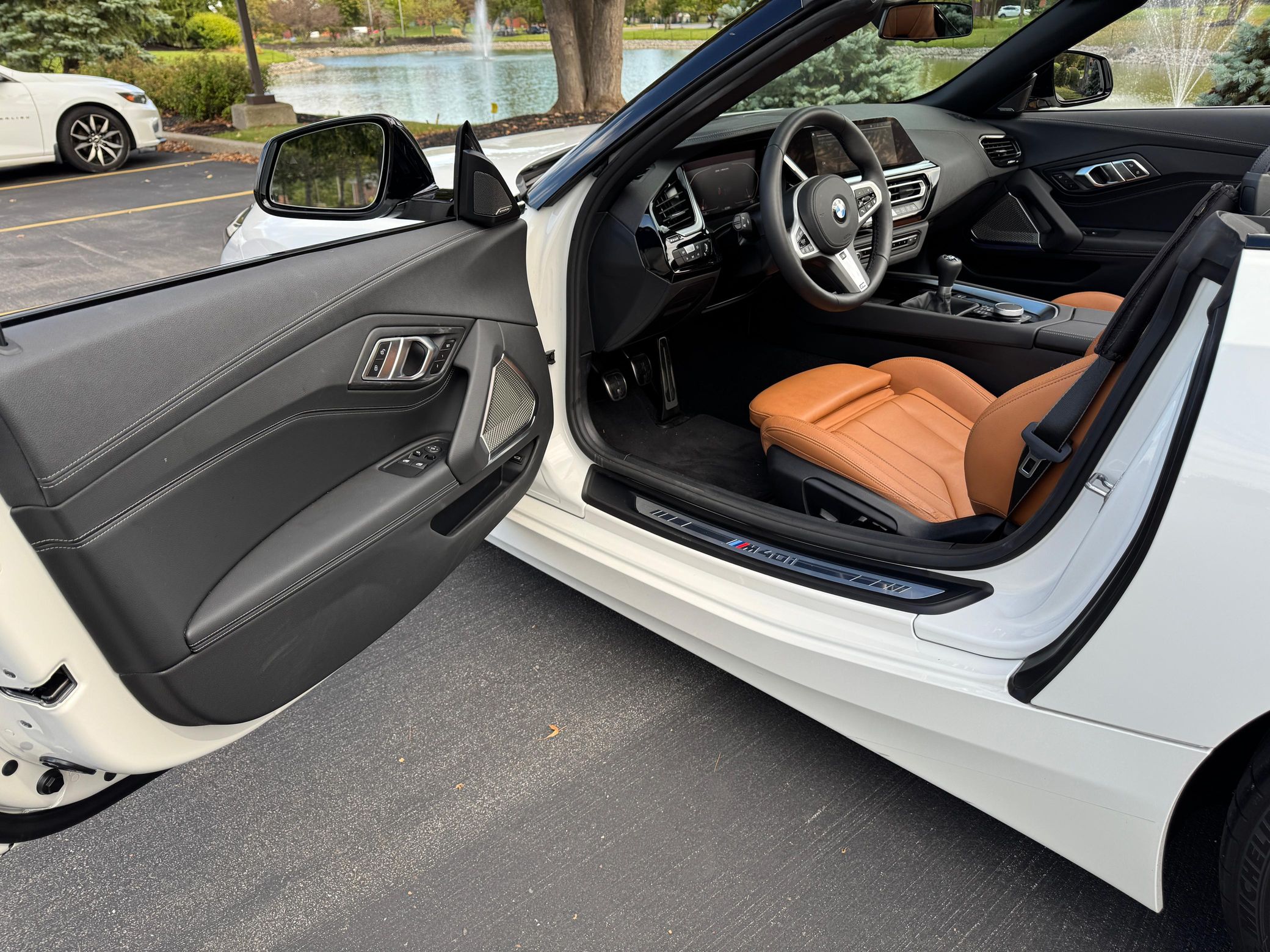 the M40i version is particularly potent, thanks to its 3.0-liter turbocharged 6-cylinder engine with a muscular 382 horsepower. This particular Z4 M40i is very desirable, as it's equipped with the Handschalter Package which adds a 6-speed manual transmission! It's also finished in an attractive Alpine White over Cognac color combination, and it's well-equipped with the Premium and Driving Assistance packages. Power comes from a 3.0-liter turbocharged straight-6, rated at 382 horsepower and 369 lb-ft of torque. Output is sent to the rear wheels via a 6-speed manual transmission.