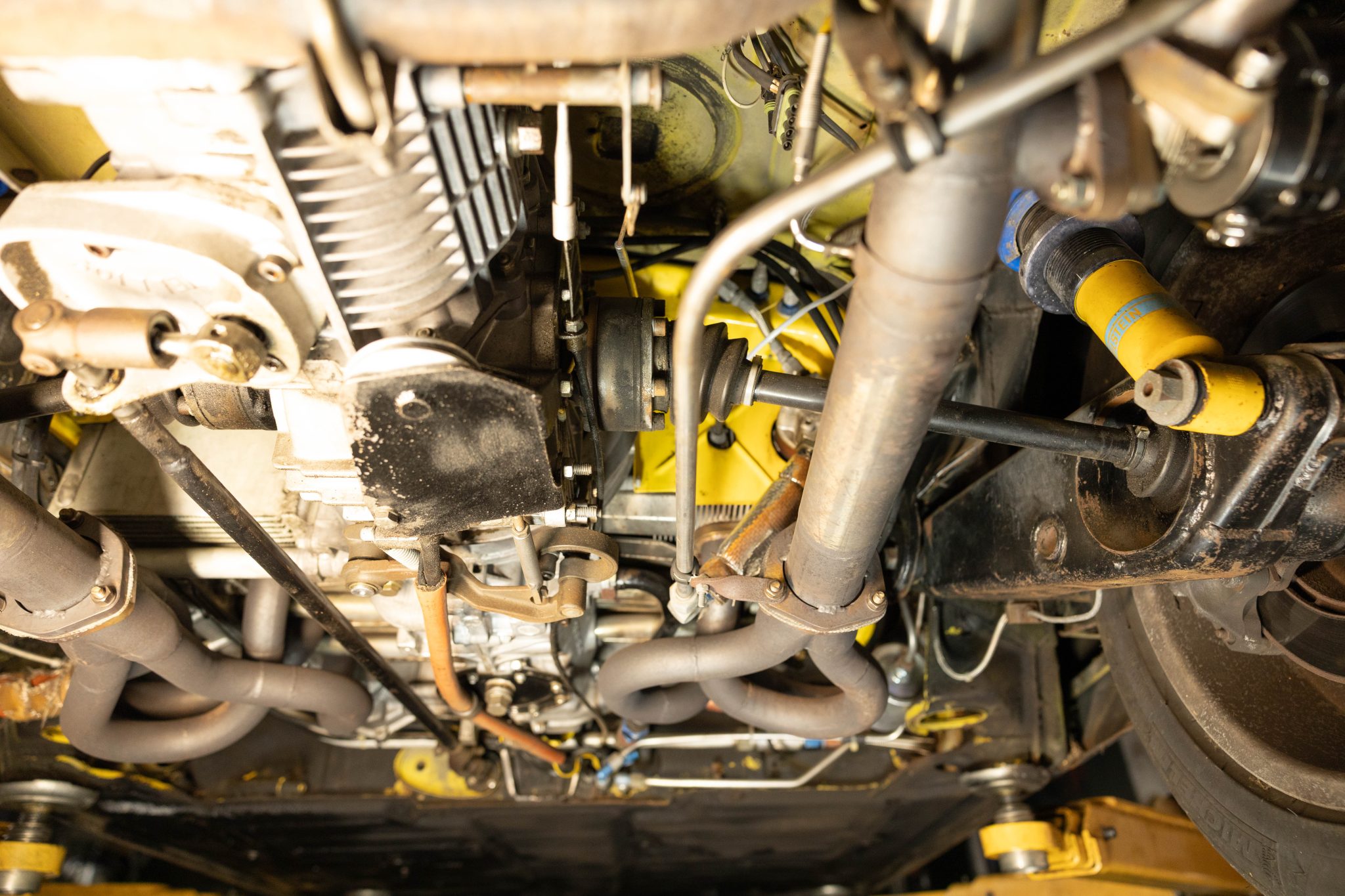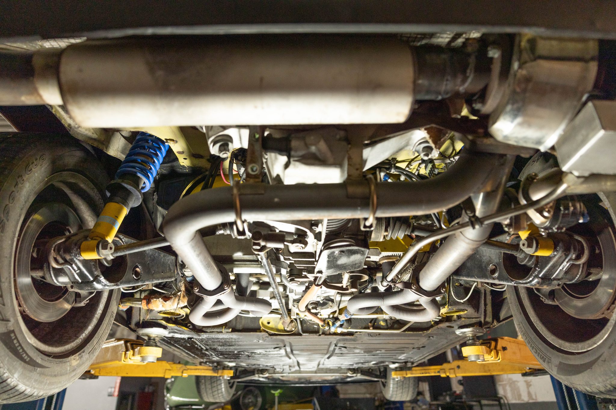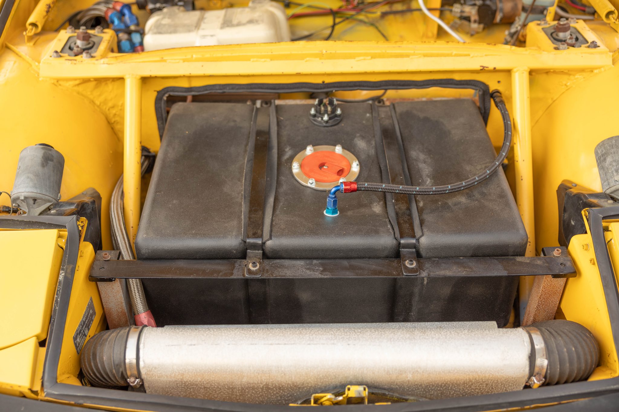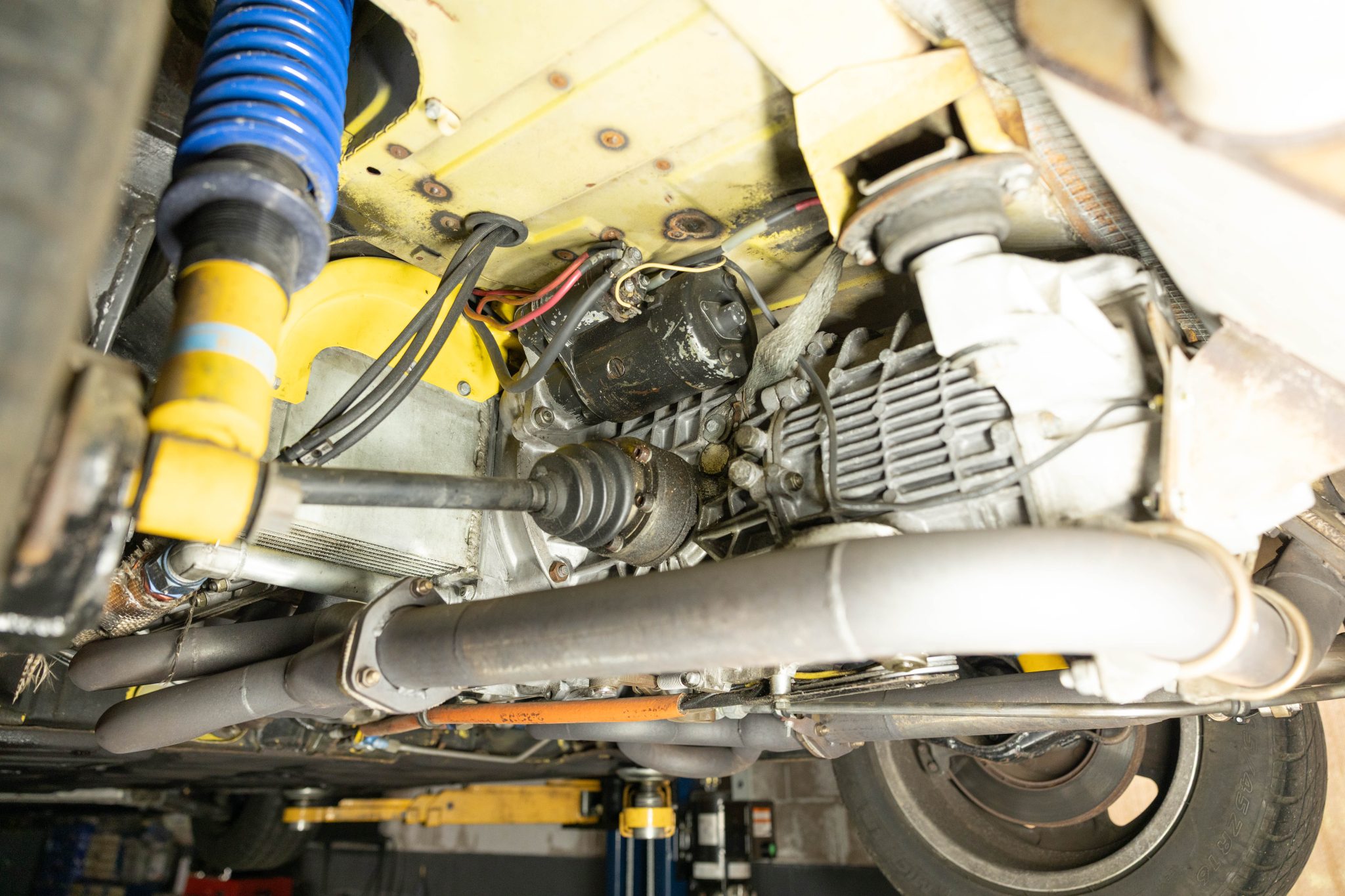 This 1971 Porsche 914 began as a four-cylinder model, and it was built by Richard Clewett of Clewett Engineering with a turbocharged flat-six using 3.3 pistons and a 3.0 case. The car rides on 16″ Fuchs-style wheels and has adjustable rear Bilstein coilovers as well as uprated suspension and braking components, and inside is a roll cage, race seats, harnesses, extra gauges, and a MOMO steering wheel. The car also has front and rear spoilers, an intercooler, headers and a custom exhaust system, a fuel cell, an oil cooler, and more as described below.