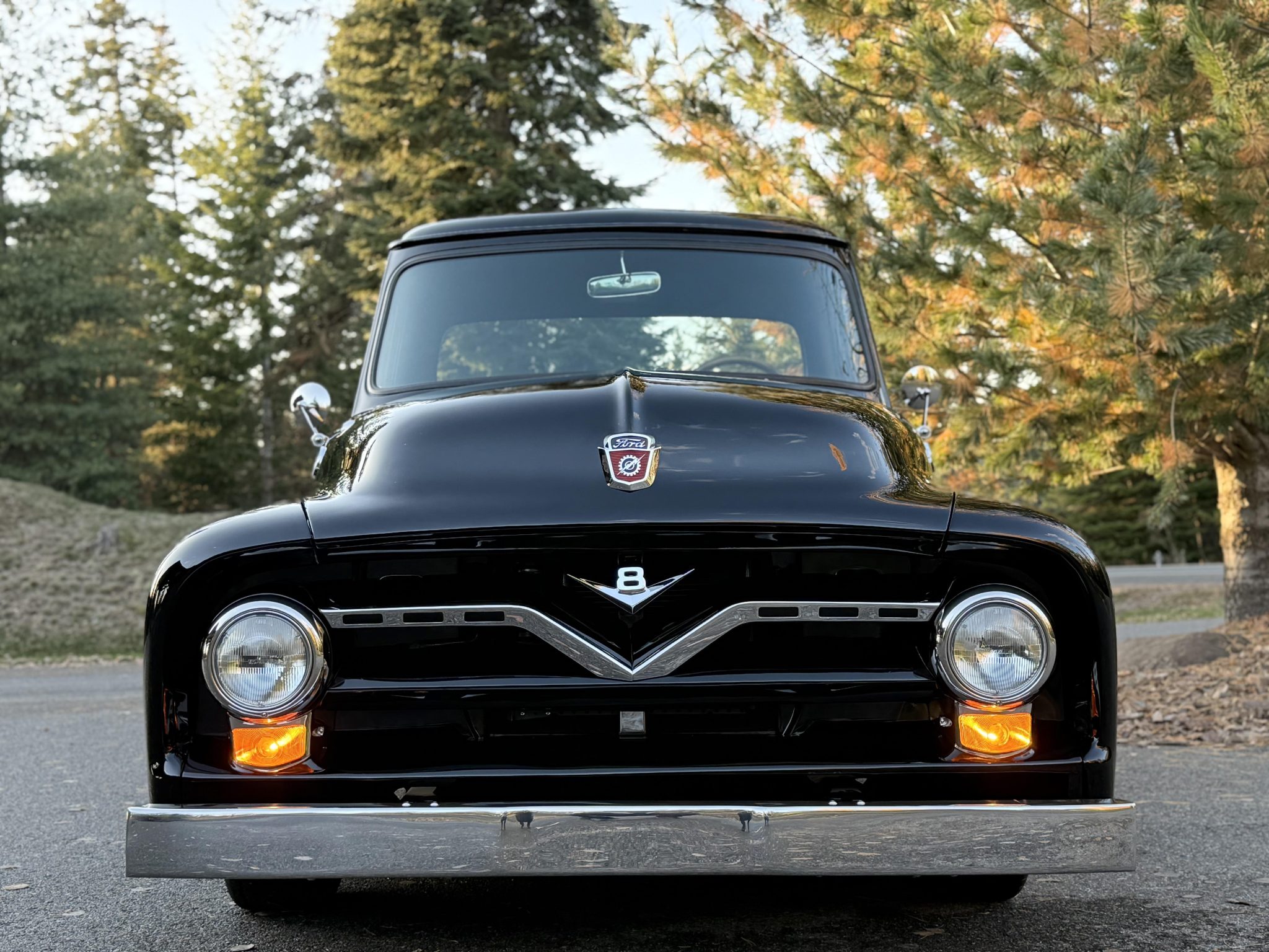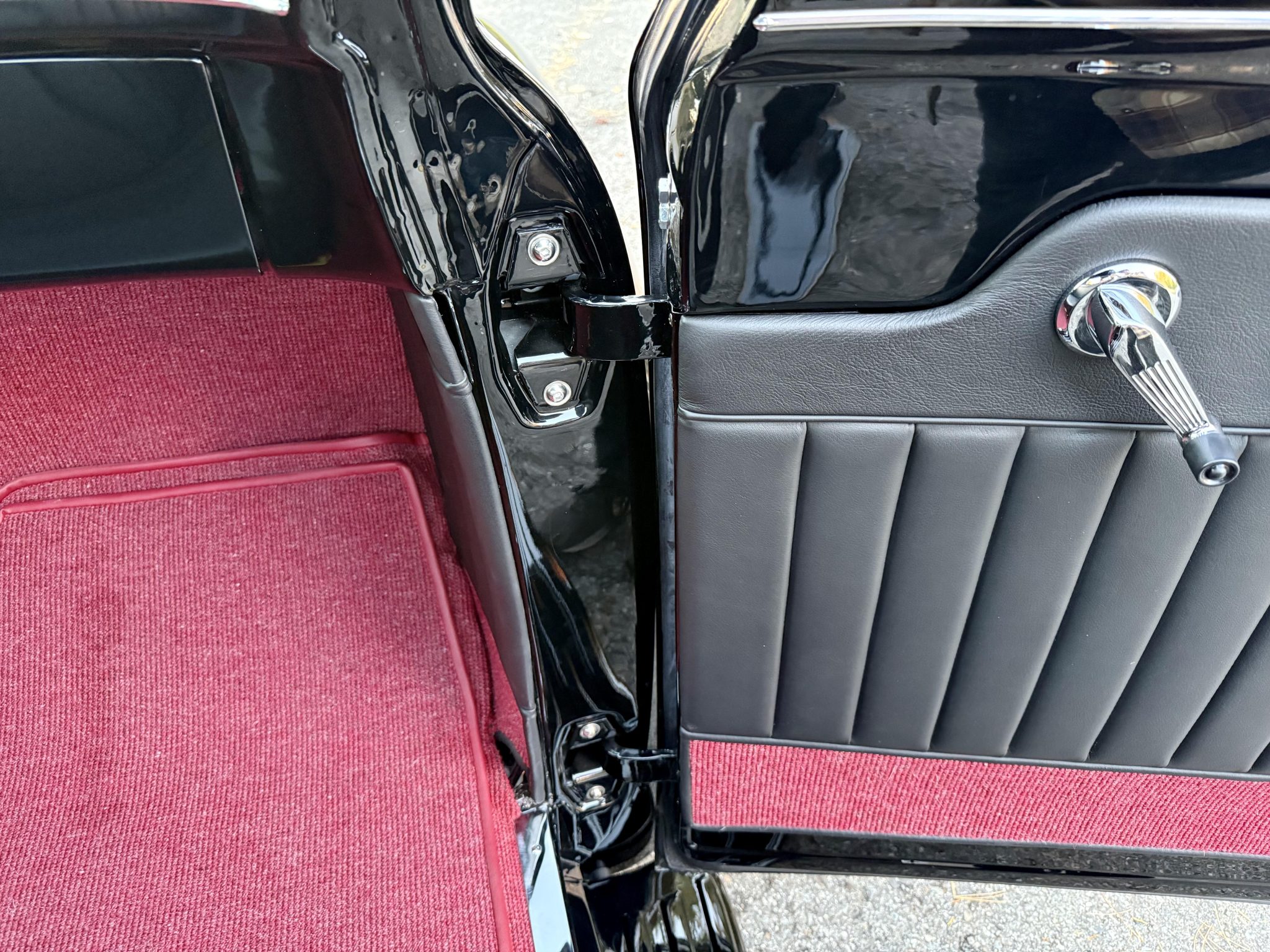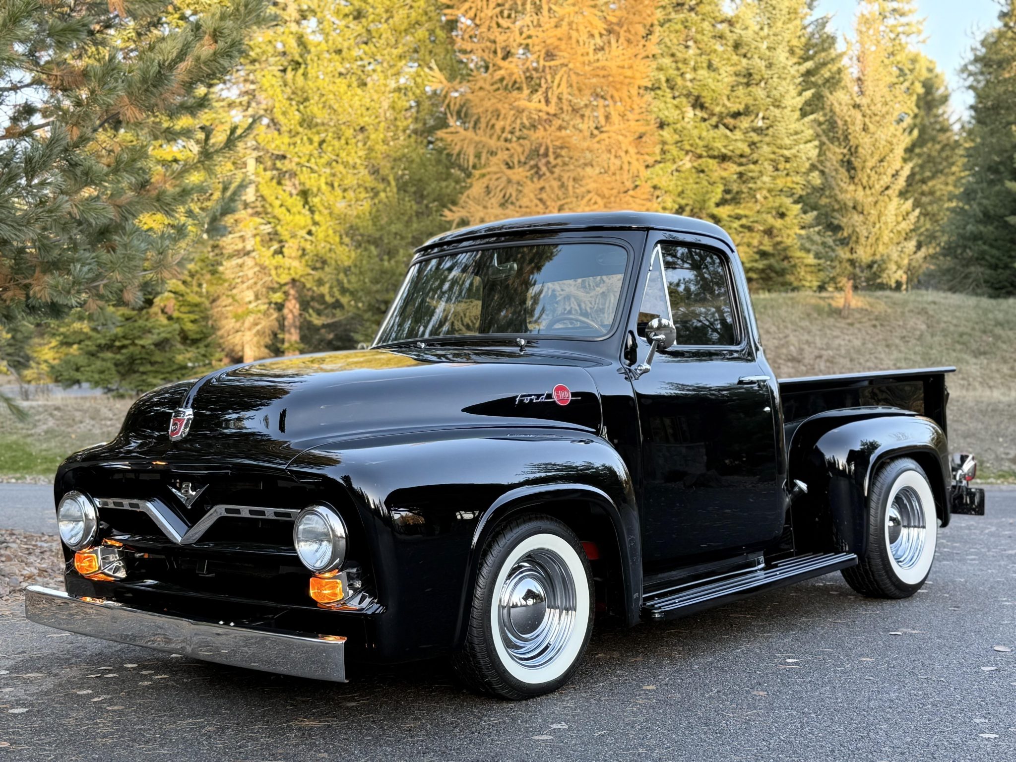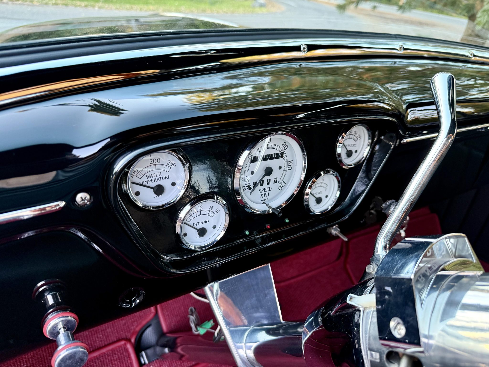 In addition to refreshing its body and interior, the body-off project involved retrofitting a 455ci Oldsmobile V8 and a TH400 three-speed automatic transmission. The truck also features power steering, replacement wiring, lowered suspension, 15″ chrome wheels, Dynomax mufflers, red carpets, black leather upholstery, and a wood steering wheel. Some additional work remains for its climate control and speedometer.