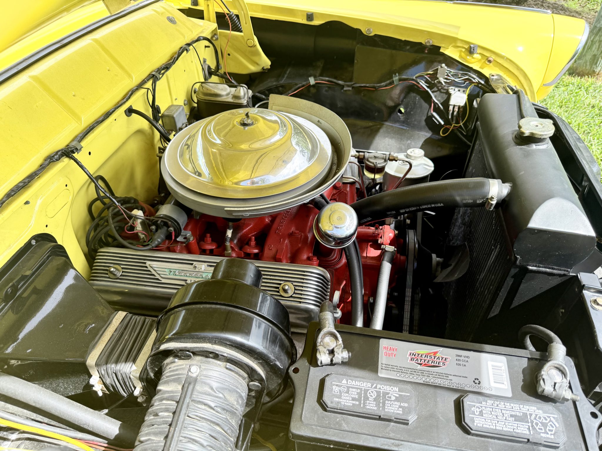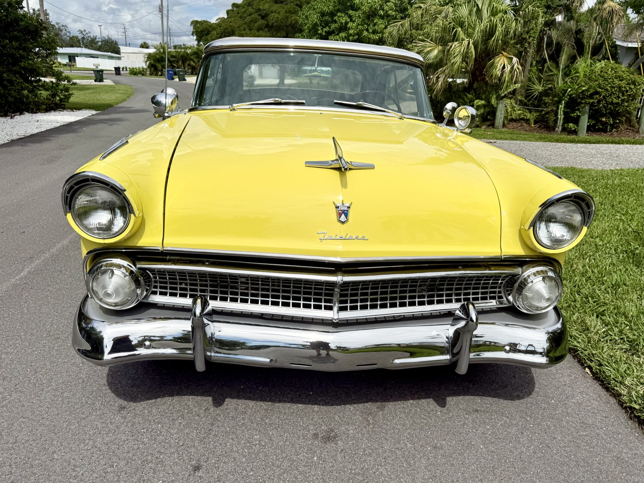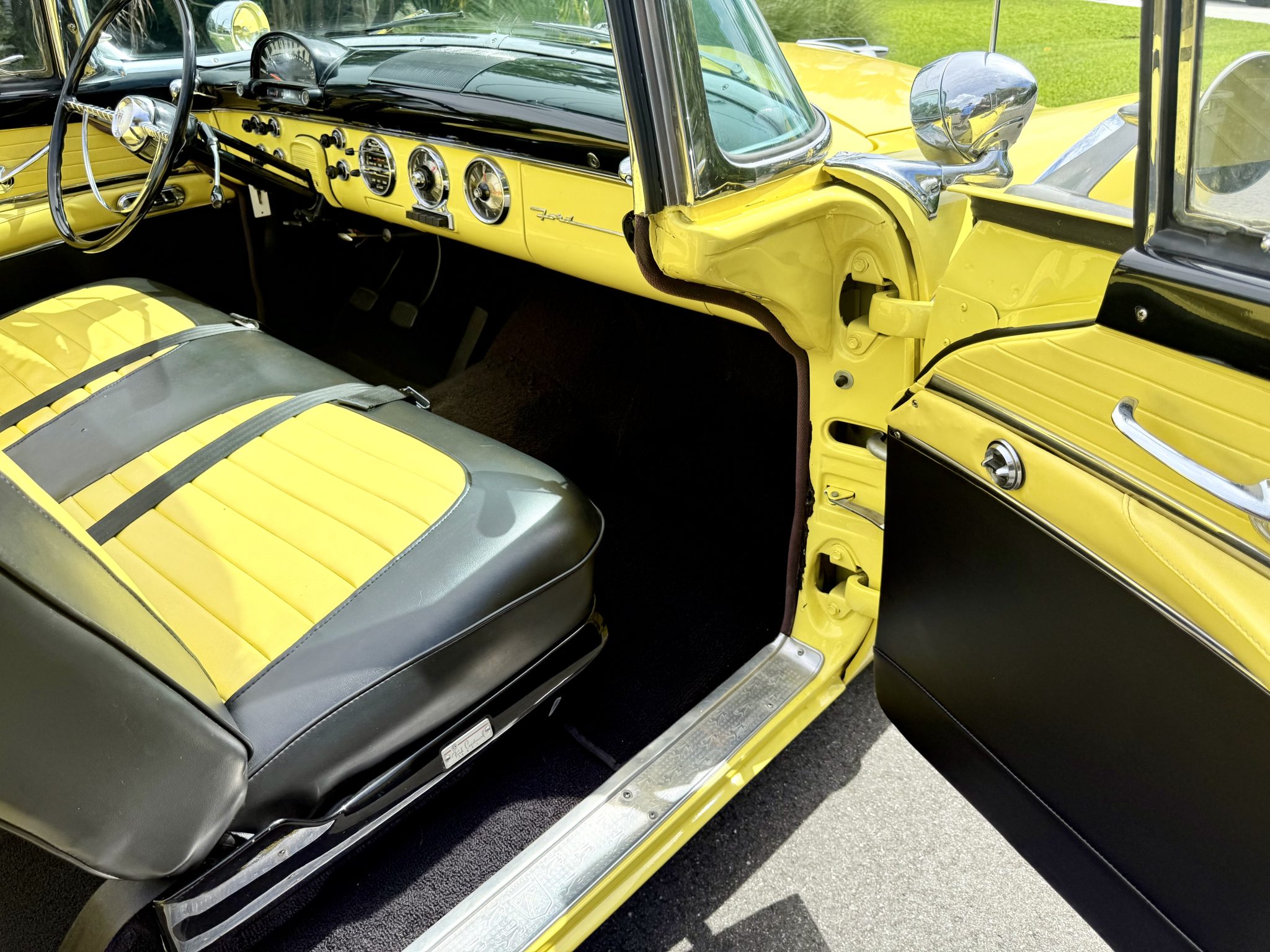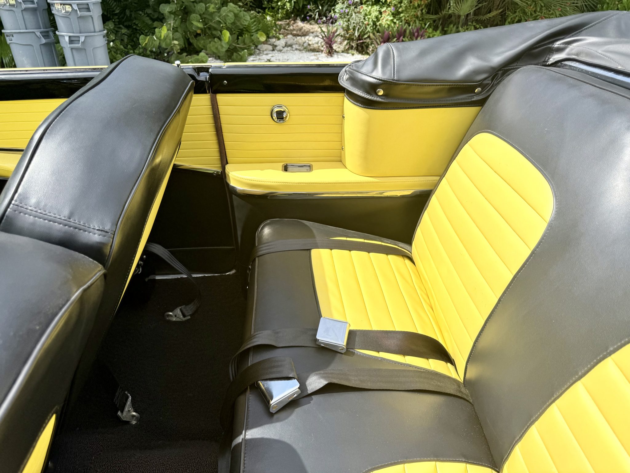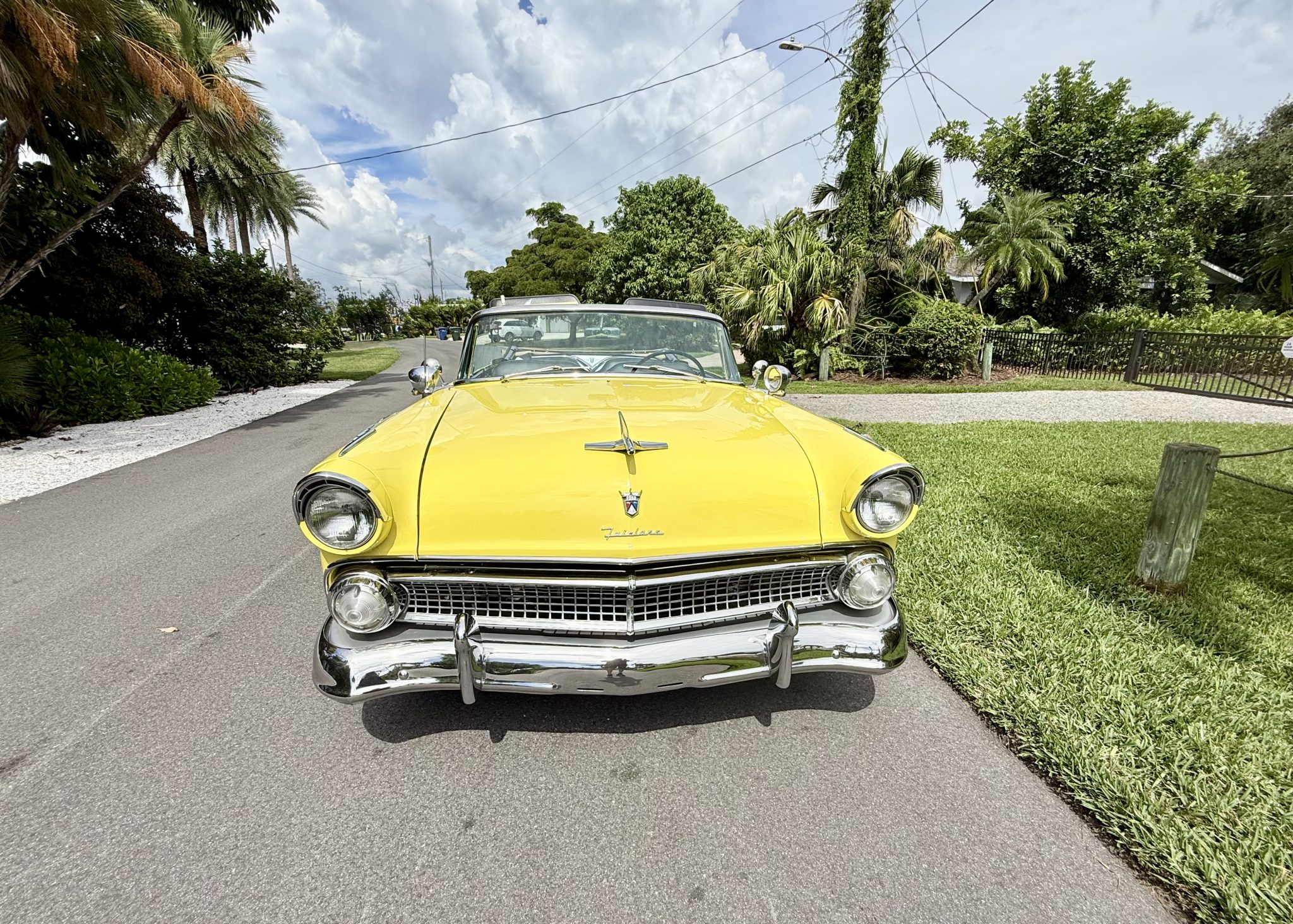 This 1955 Ford Fairlane Sunliner was refurbished circa 2013 and is finished in yellow with a tan soft top over a black and yellow interior. Power is provided by a Y-block V8 that is backed by a column-shifted three-speed manual transmission. Equipment includes 15″ painted steel wheels, power steering, front disc brakes, chrome bumpers, and spotlights along with power windows, an AM radio, and a cabin heater.