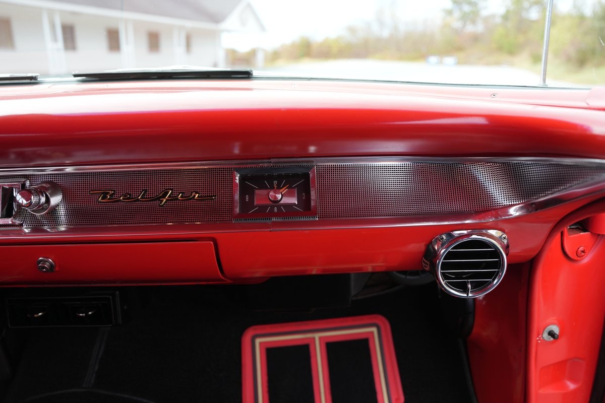 1957 Chevrolet Bel Air Hardtop-an American icon blending 1950s styling with modern performance and comfort. Finished in Matador Red with an Arctic White roof, this Bel Air delivers show-stopping curb appeal and contemporary drivability.Under the hood sits a 350 cubic-inch Aluminum Head Vortec V8, paired with an Edelbrock EFI 4-Flo fuel injection system for smooth starts and reliable performance. Power is delivered through a 700R4 4-speed automatic transmission and Ford 9-inch rear end, ensuring effortless cruising on modern highways.