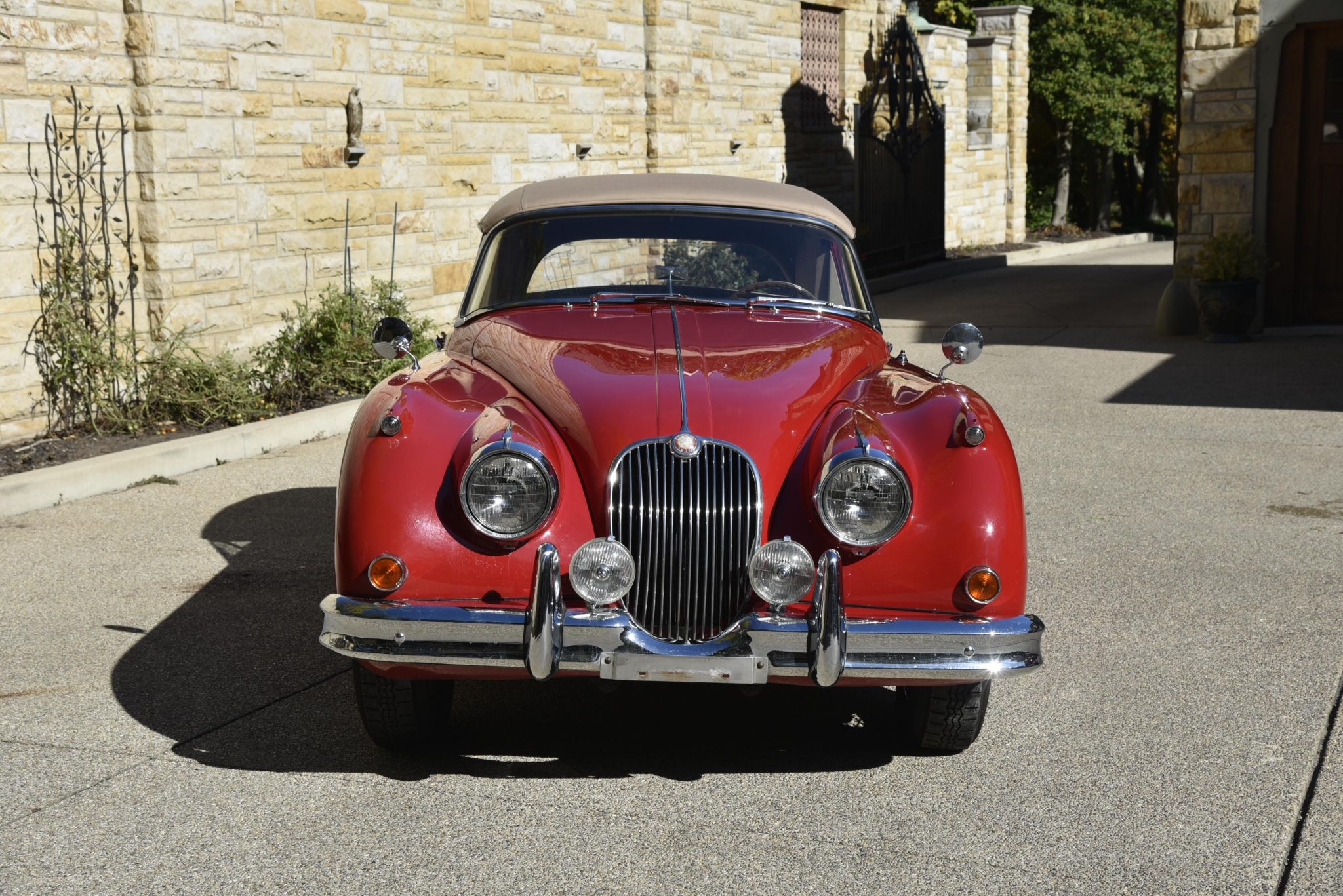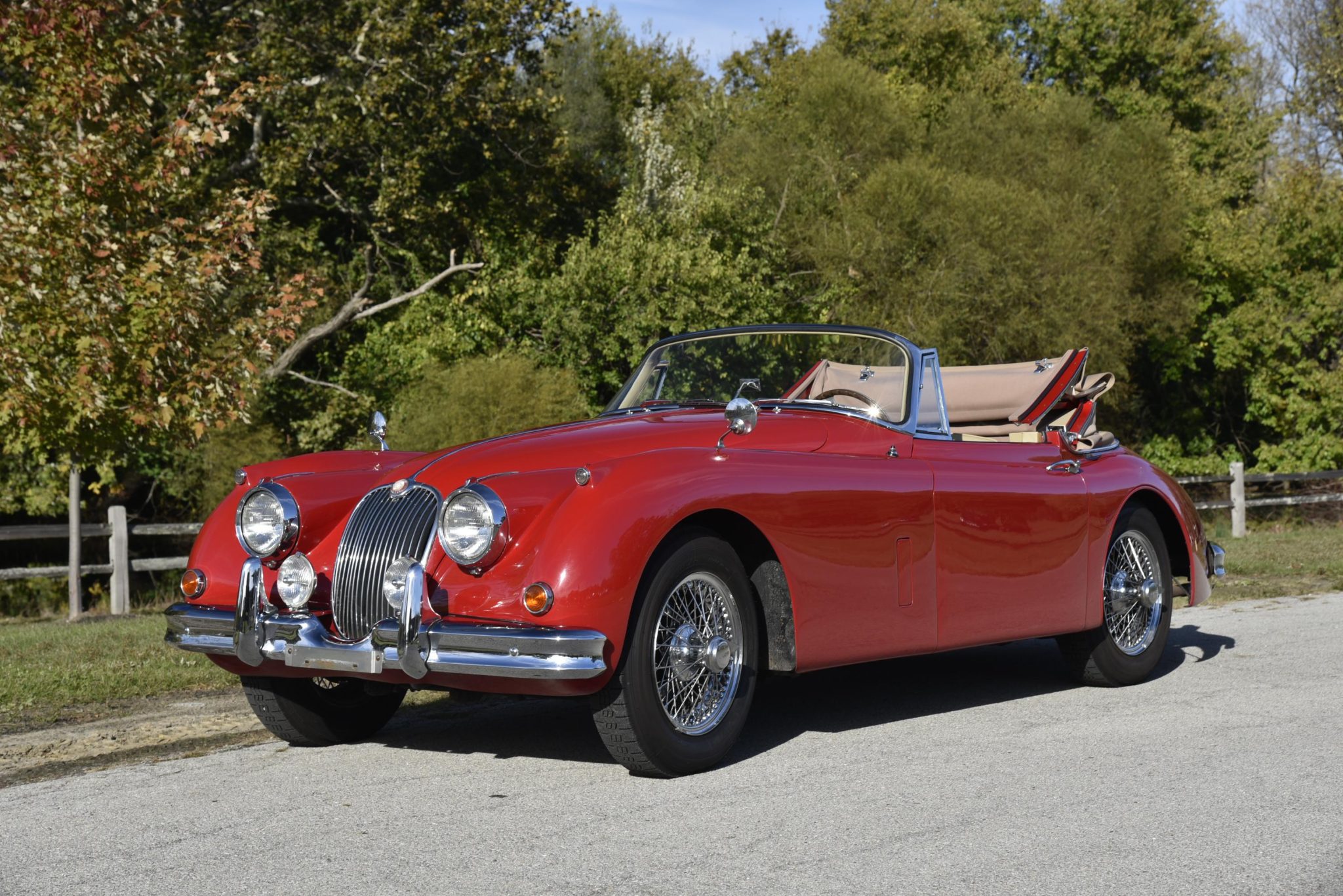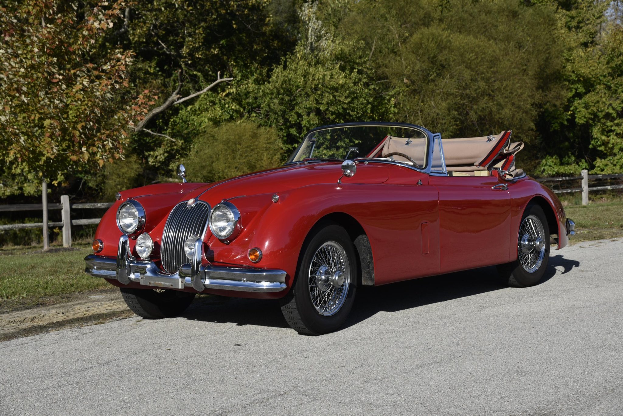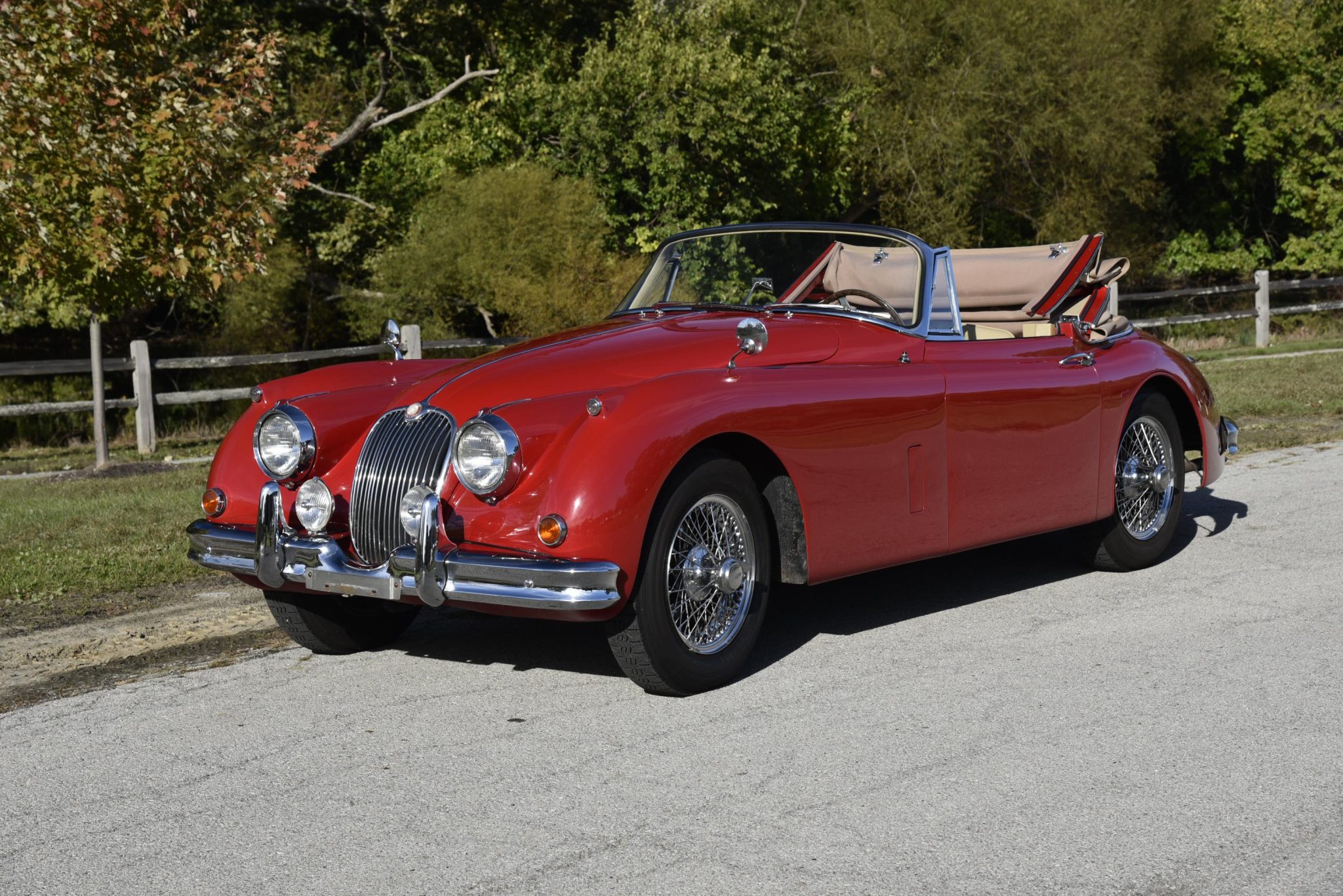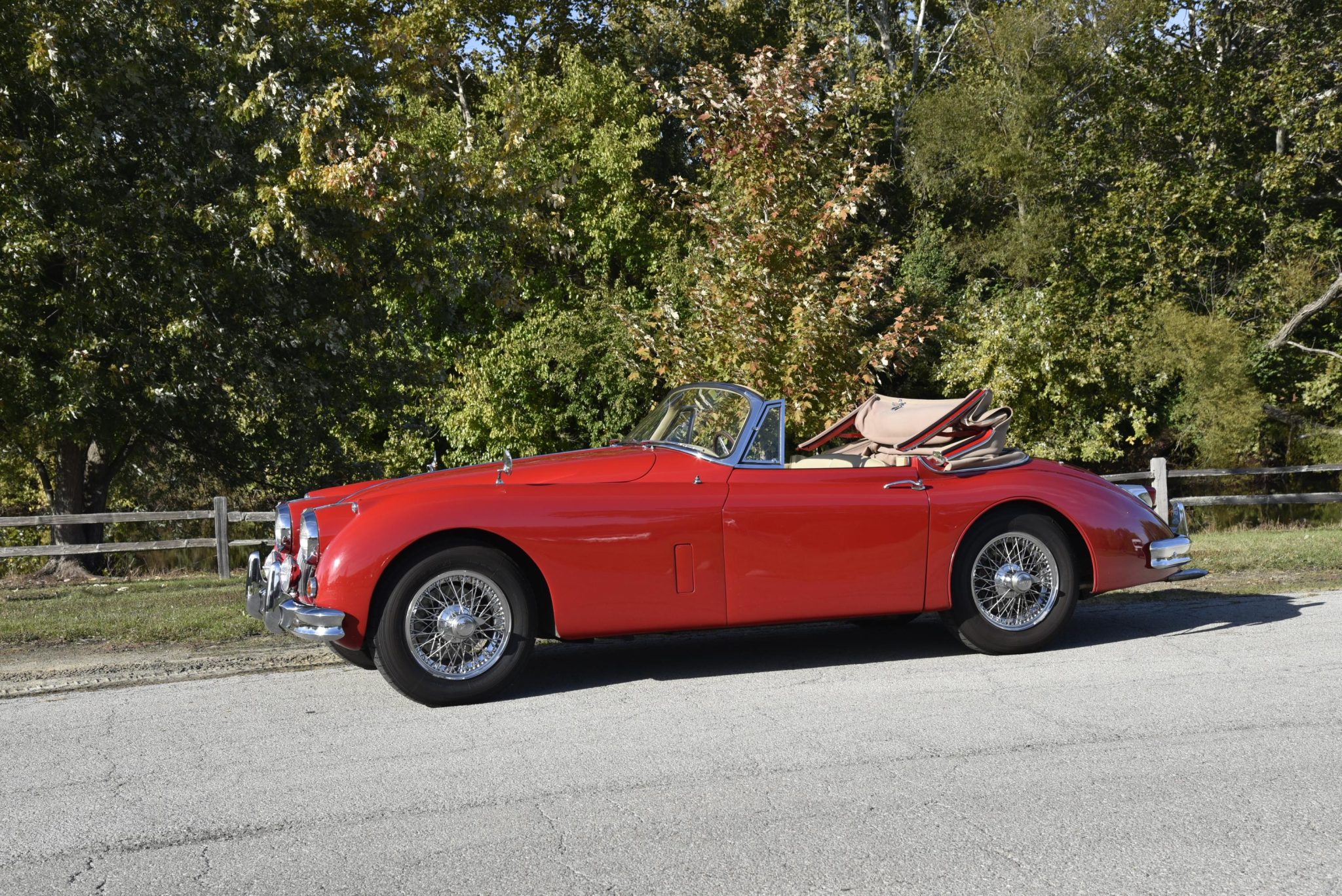 Powered by a 3.4-liter inline-six paired with a four-speed manual transmission with overdrive, the car features a Sand soft top, 16″ knock-off wire wheels, four-wheel disc brakes, dual SU carburetors, driving lights, a Moto-Lita steering wheel, and lap belts.