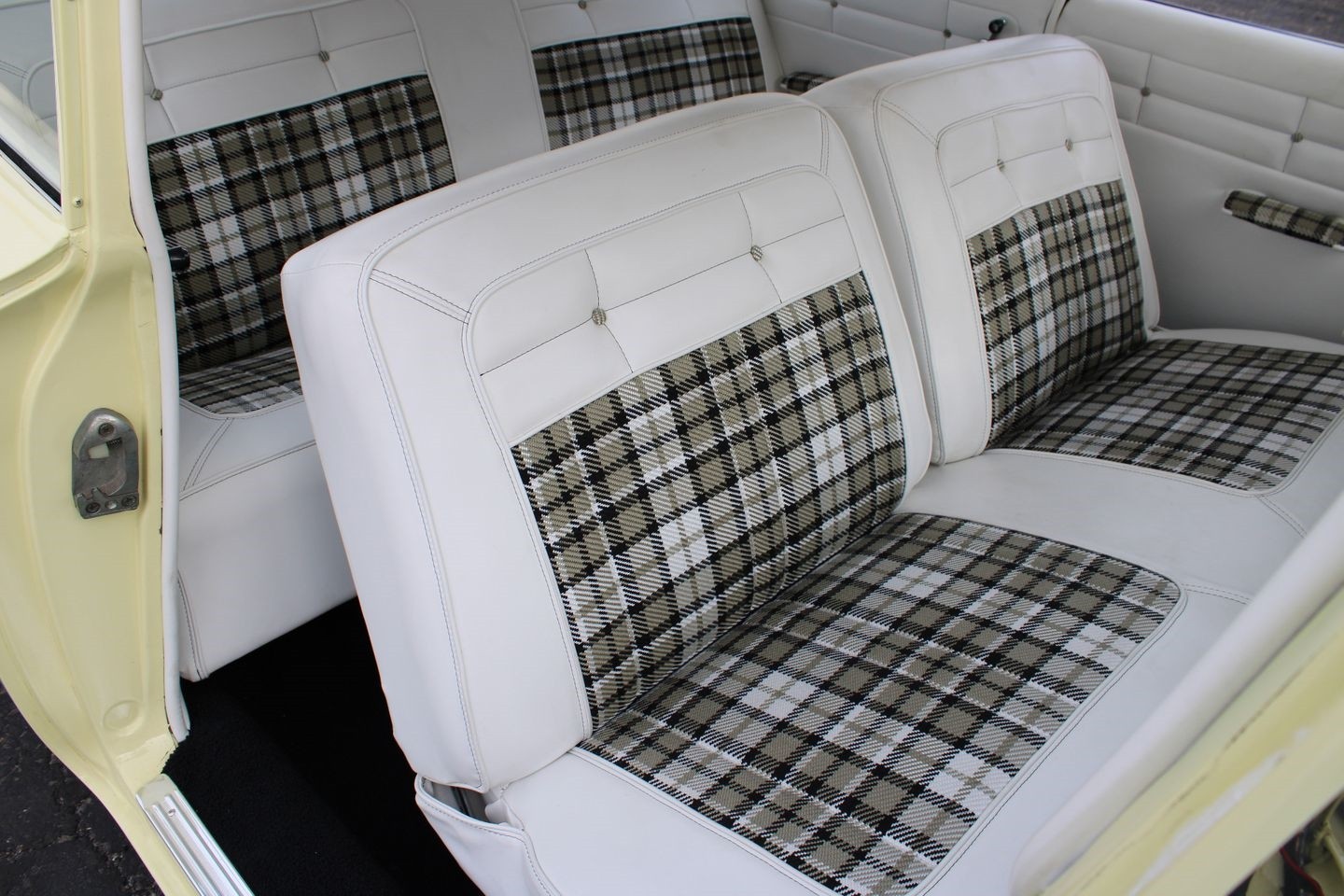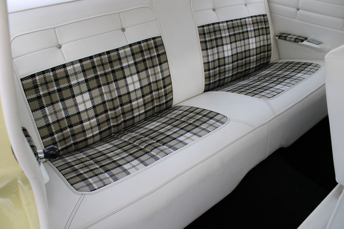 Step inside, and you're greeted by an interior that exudes classic charm. The white upholstery, though its exact material remains a delightful mystery, offers a crisp, clean contrast to the sunny exterior. The interior is a sanctuary of simplicity, where the focus is on driving pleasure and the tactile experience of a bygone era. Every detail, from the steering wheel to the dashboard, speaks to a time when craftsmanship was paramount, and cars were built to be both beautiful and functional.