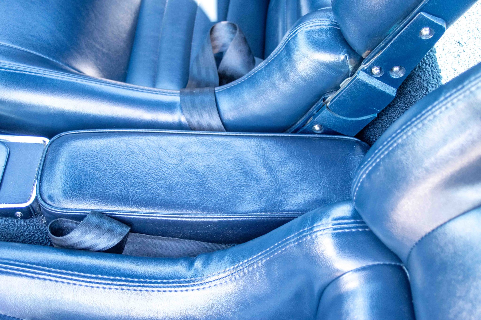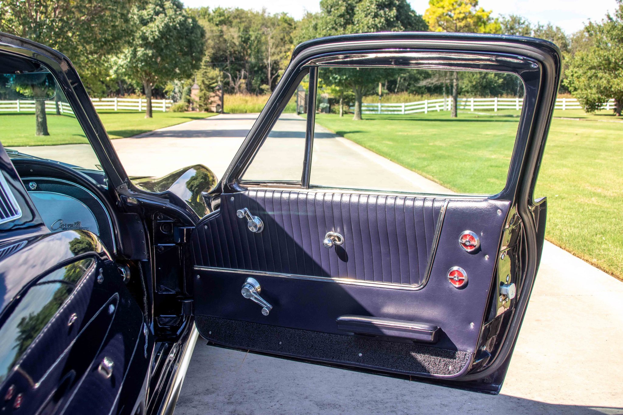 This 1964 Chevrolet Corvette coupe has been modified with a fuel-injected 5.7-liter V8, a Tremec six-speed manual transmission, front and rear mono leaf springs, power-assisted four-wheel disc brakes, and air conditioning. The car is finished in dark blue over dark blue upholstery. Additional equipment includes 15″ American Racing Torq Thrust wheels, Bilstein shocks, power steering, C3-sourced bucket seats, and an aftermarket stereo.