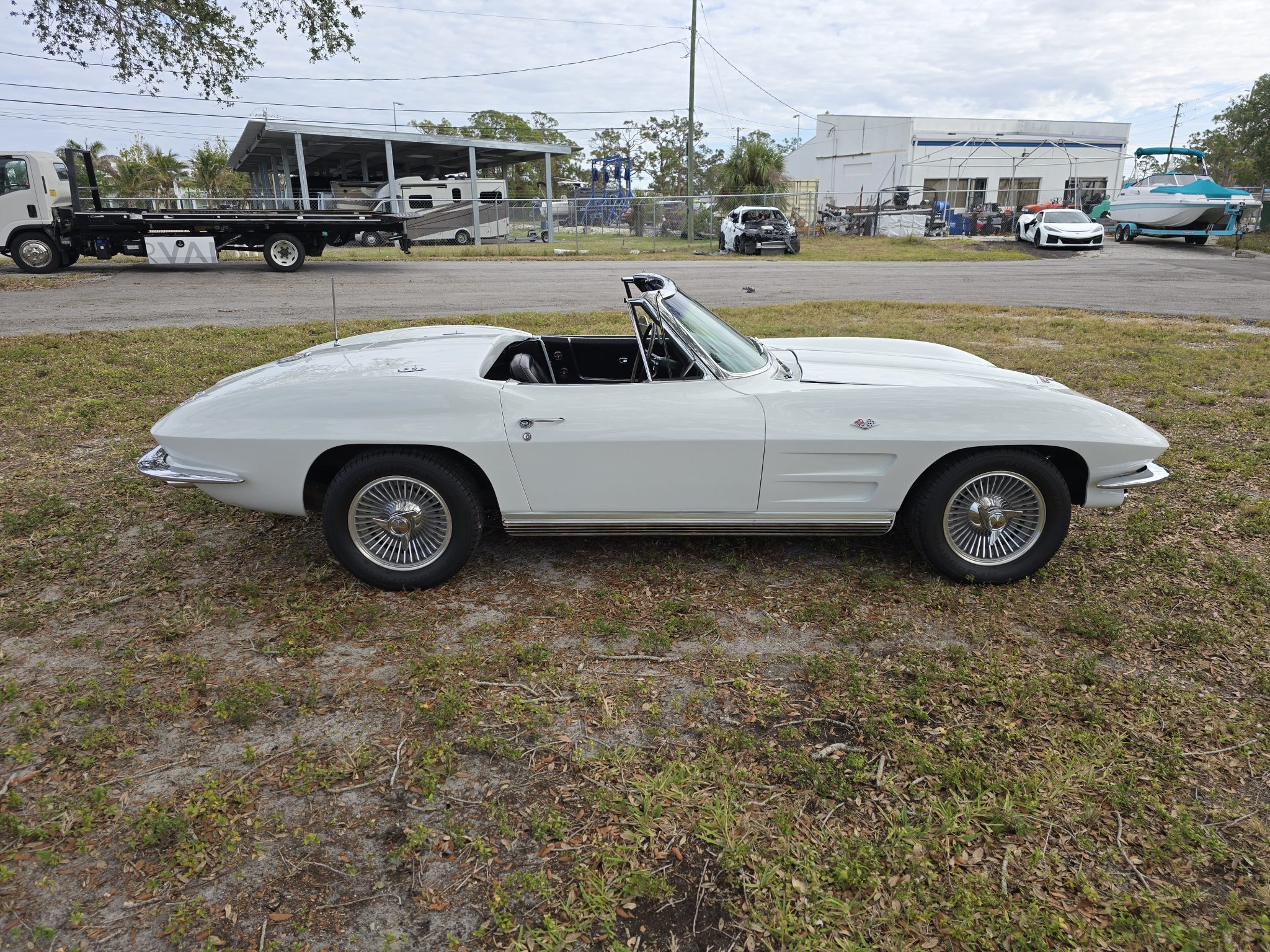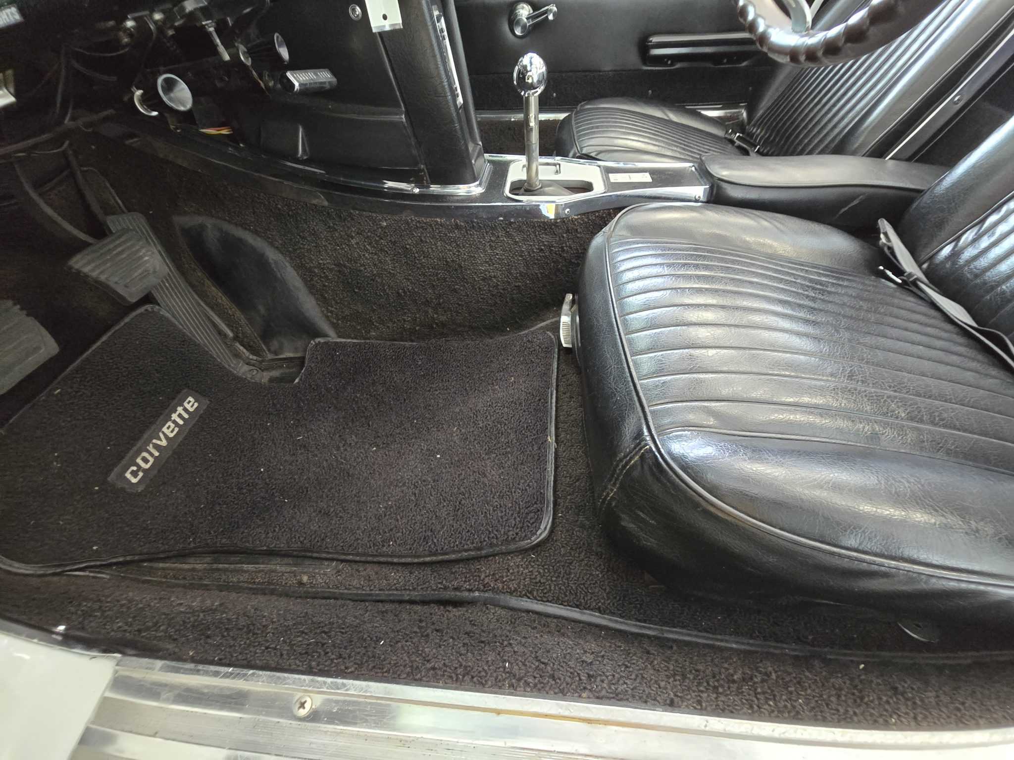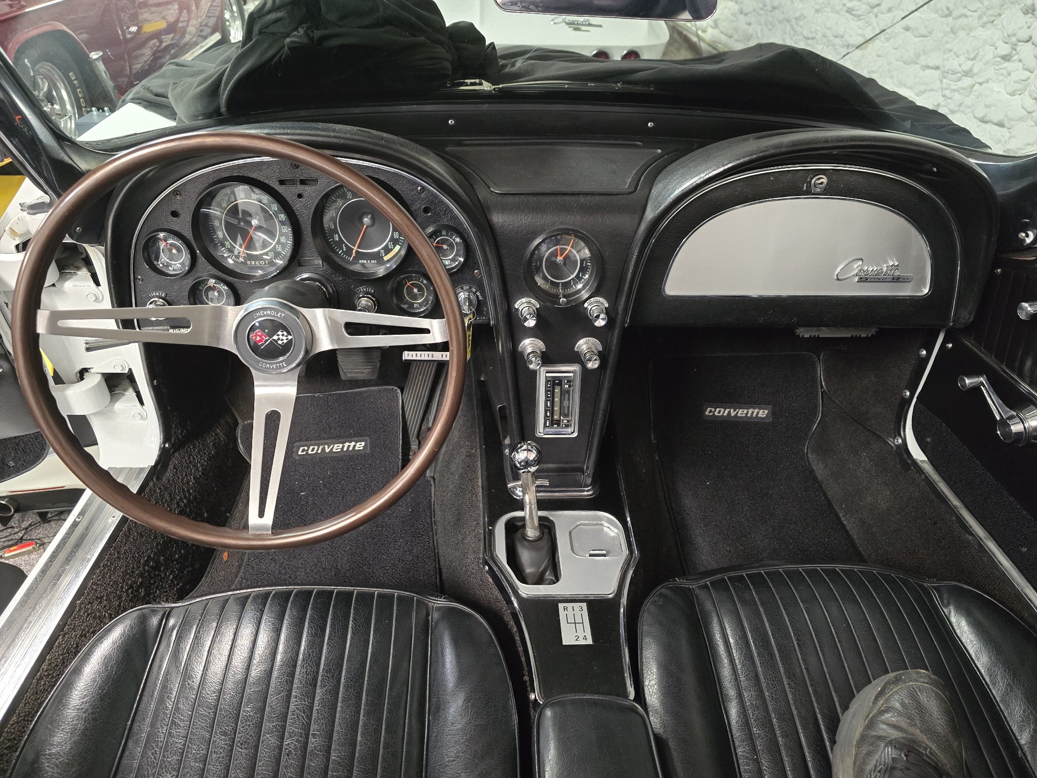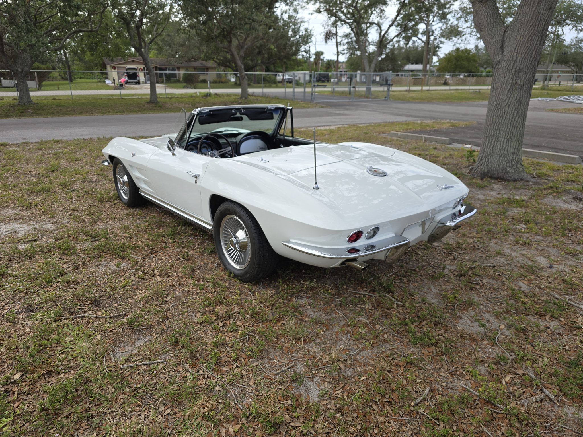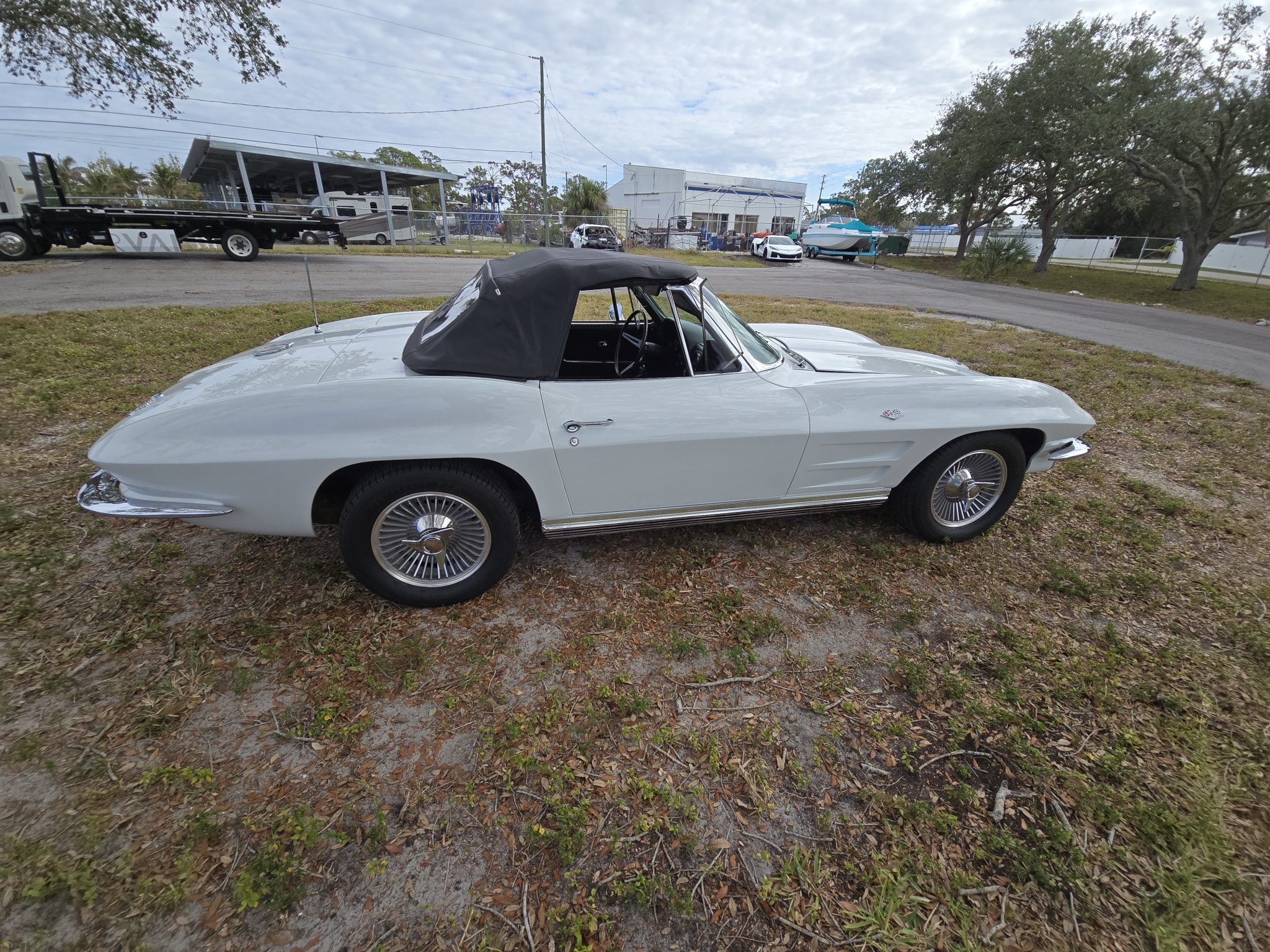 This 1964 Chevrolet Corvette convertible was modified at some point under prior ownership with the installation of a fuel-injected 350ci V8, a repaint in white, and a refresh of the black interior. Shifting is through a four-speed manual transmission, and the car is also equipped with a black soft top, 15″ turbine-style wheels, and concealed headlights along with an AM/FM radio and a CD changer