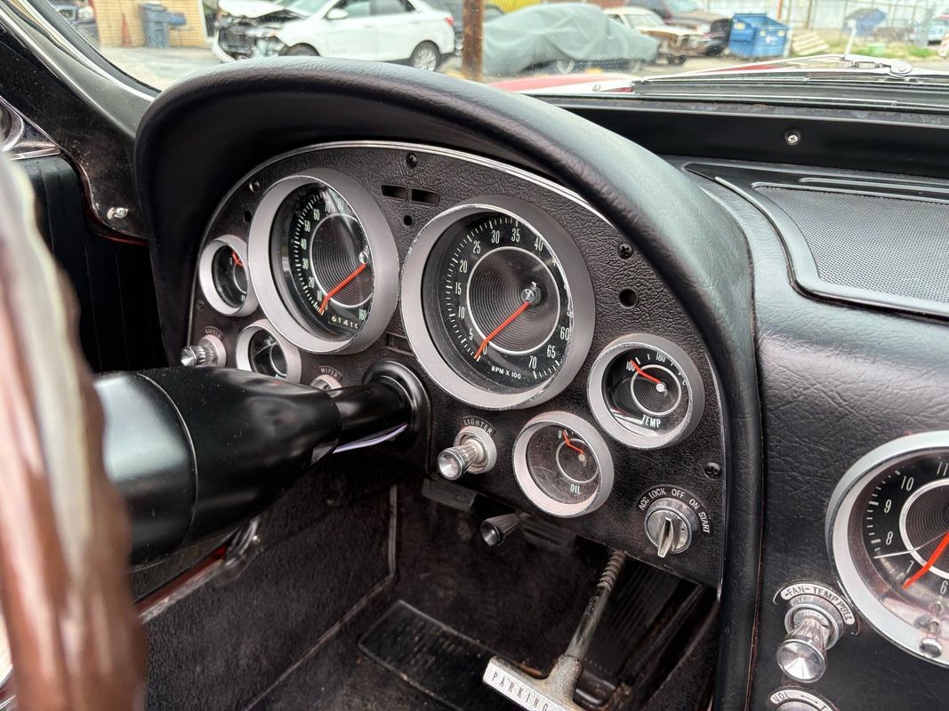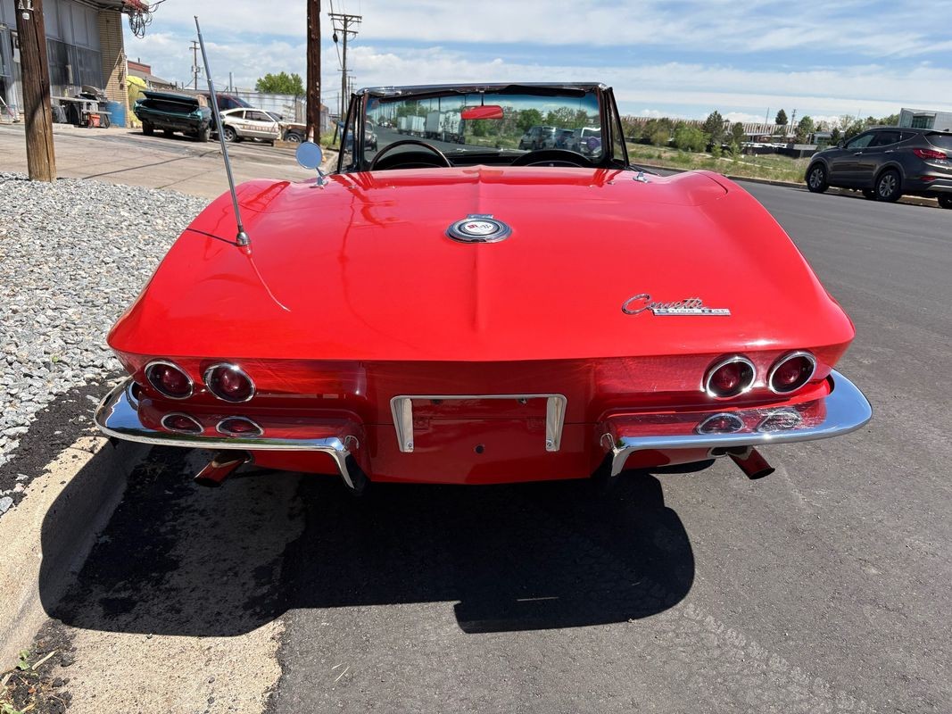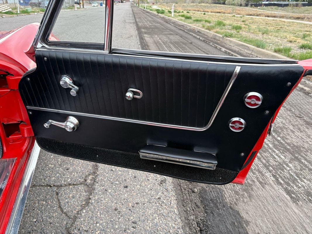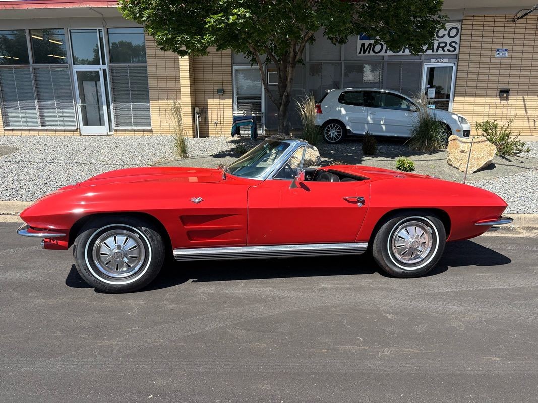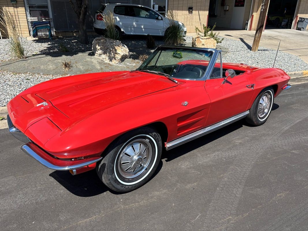 1964 Chevrolet Corvette convertible finished inrally red exterior over a black soft top with black leather interior. This Corvette is equipped with the numbers matching 327CI 300HP V8 with a 4-speed manual gear box. The black soft top looks to have been recently replaced as the plastic back window is in very nice condition. The interior is finished in black with black carpeting and is in very nice.