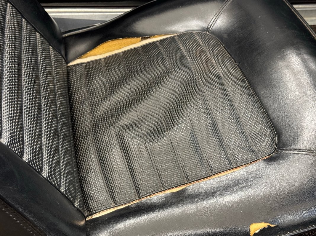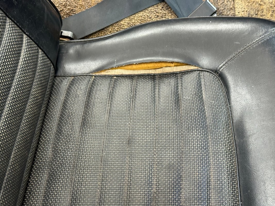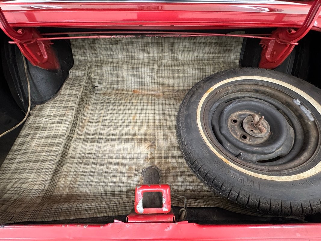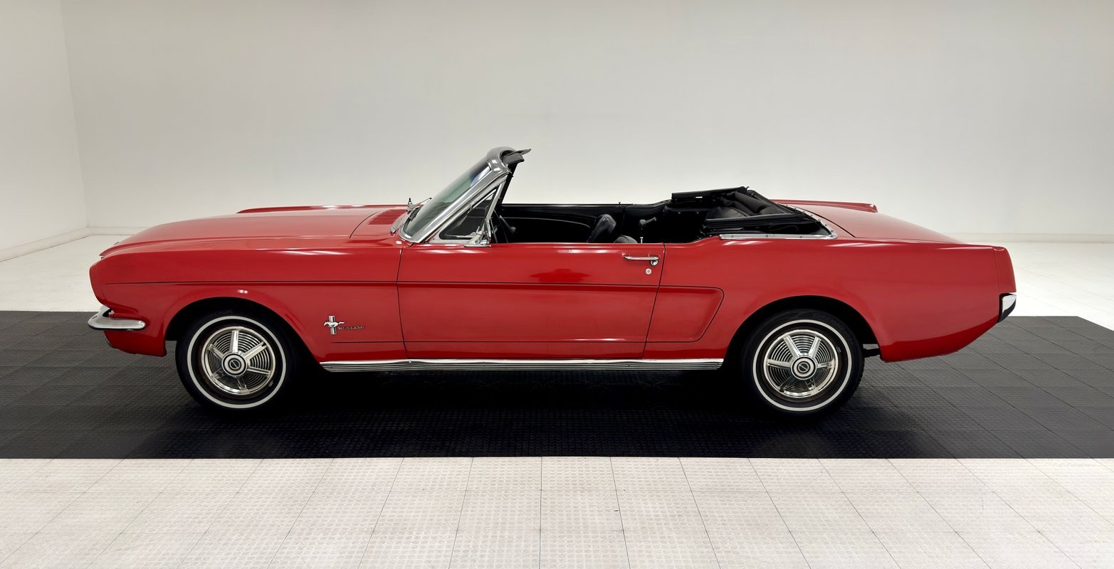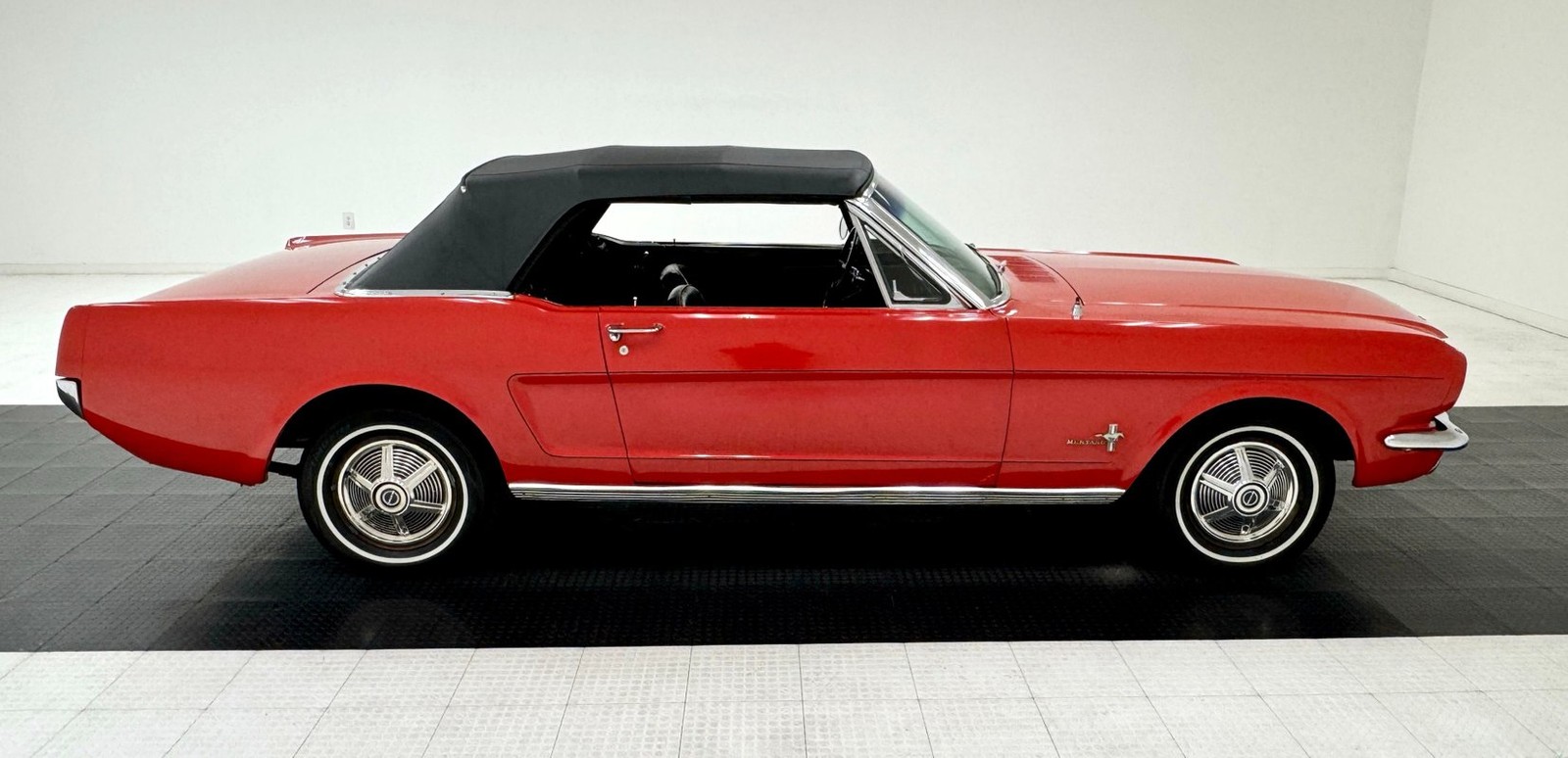 Rangoon Red paint drapes the straight steel panels of this car with plenty of polished single stage shine still reflecting our indoor lights. A black pinstripe accents the side panels, bordering the infamous Mustang body line, here with no ornamental duct at the rear. Up front, flanking the galloping Mustang badge are the single headlights in the faux vented inserts. Decklid gaps are well minded and the rear fascia with its distinctive tail lights lacks reverse lights in the smooth roll pan under the chrome bumper. With shiny standard issues 14-inch Under the hood we see an original looking, driver quality 200ci inline 6 cylinder topped by a 1-barrel carburetor and rated at 120 horsepower. On back is a C4 3-speed automatic transmission which sends power to a 7.25" rear axle wrapping 3.20 gears.