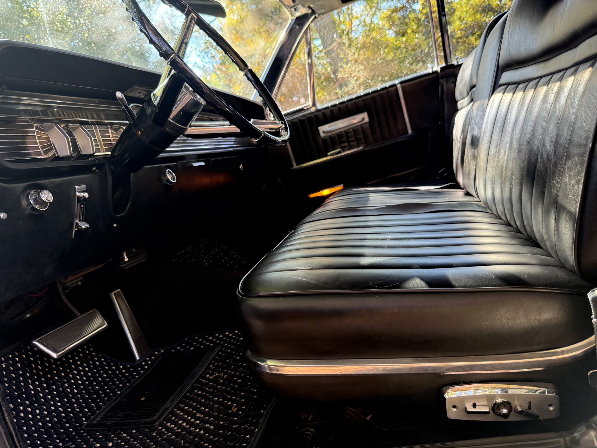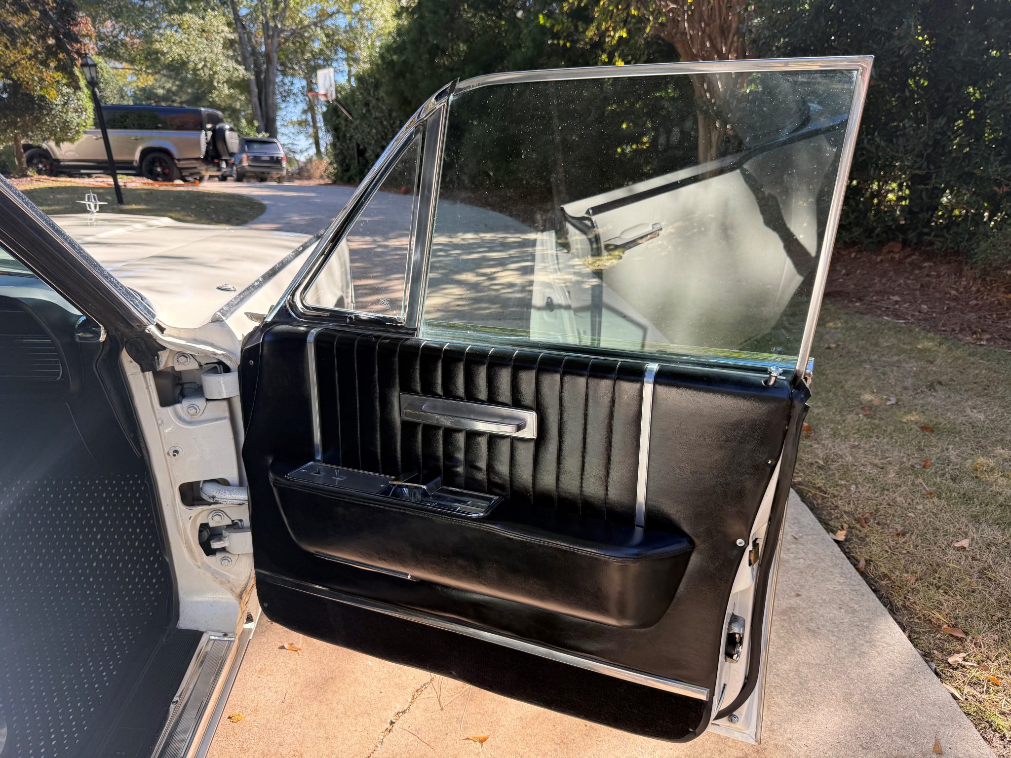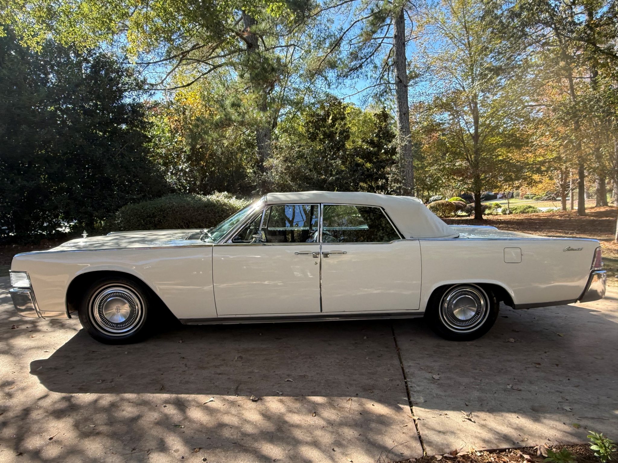 Powered by a 430ci V8 mated to a three-speed automatic transmission, the car is finished in white over black vinyl upholstery. It also features a Lincoln hood ornament, a driver-side mirror, rear-hinged rear doors, 15″ steel wheels with replacement covers, and front disc brakes as well as vent windows, an electric clock, and a heater/defroster. Work under current ownership included servicing the power-operated white convertible top, repairing the power steering system, performing wiring repairs, installing replacement weatherstripping, and replacing the coolant temperature gauge, upper rear crankshaft seal, alternator, voltage regulator, fan clutch, battery cables, tires, oil and transmission pan gaskets, front marker light lenses, and various hoses