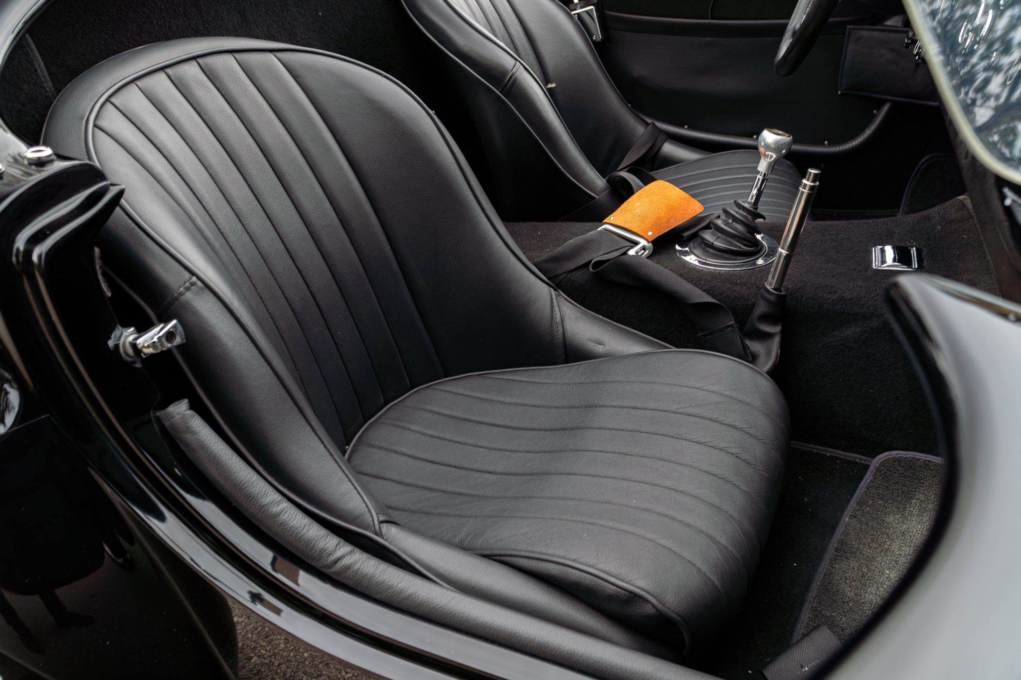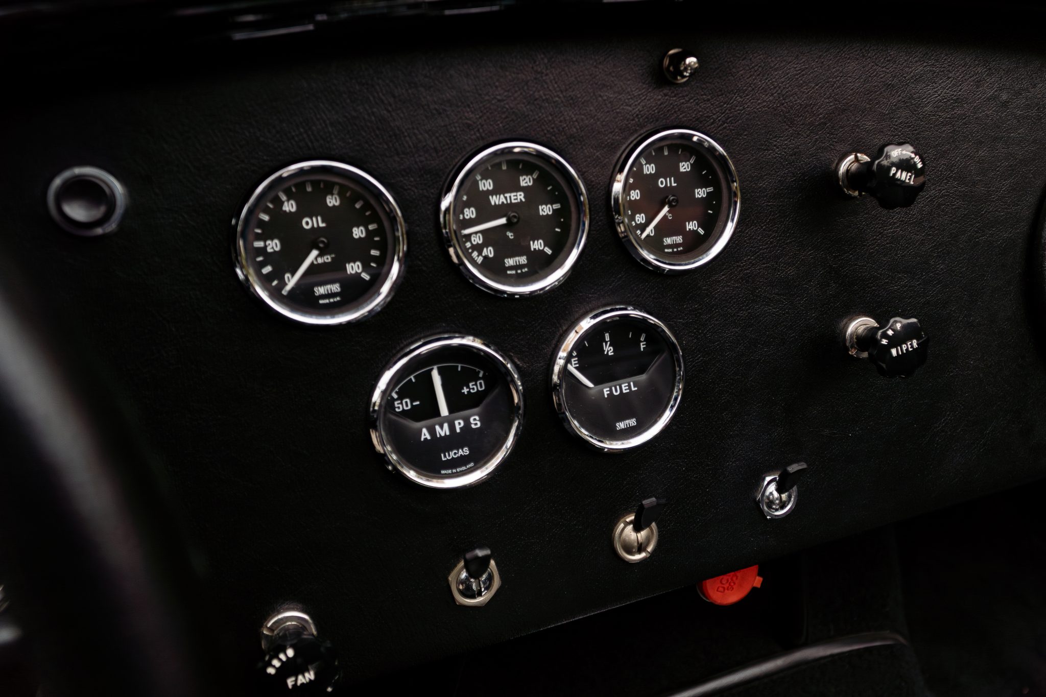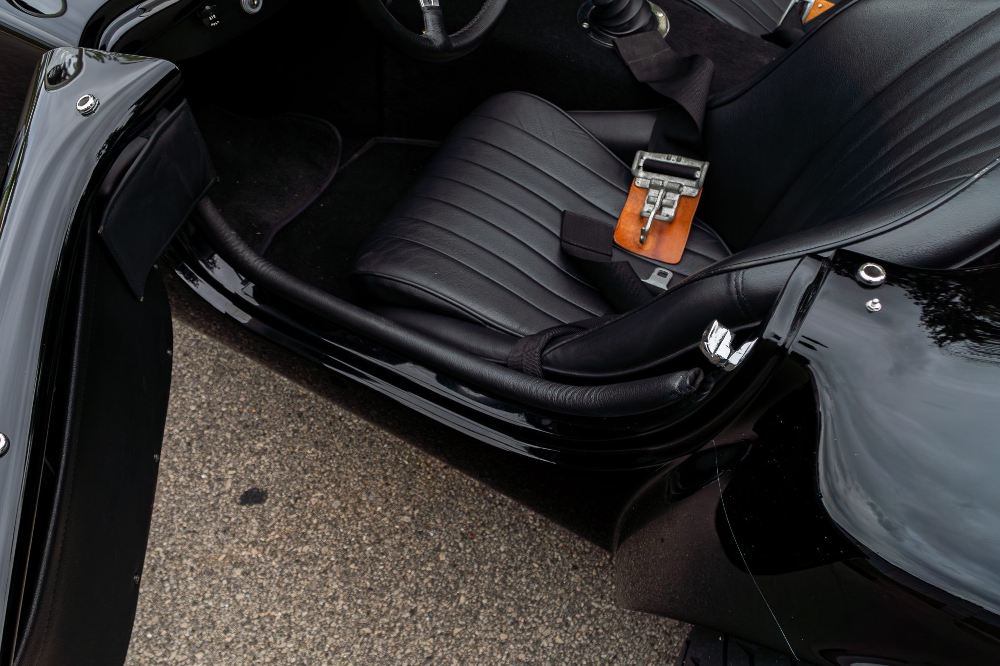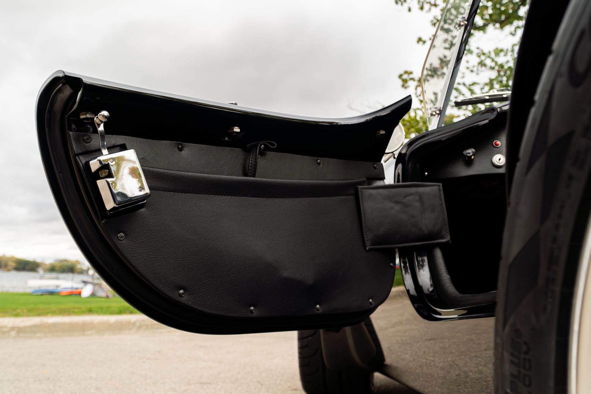 This Superformance MKIII is a black-over-black Cobra replica powered by a Roush 402SR V8 linked to a Tremec five-speed manual transmission. It has a four-wheel independent suspension, Wilwood brake calipers, and 18” Halibrand-style wheels along with a Holley carburetor and a dual exhaust system with tubular headers. Additional features include Roadster-style bumpers, translucent wind wings and sun visors, a three-spoke steering wheel, and low-back bucket seats with latch-and-link lap belts.