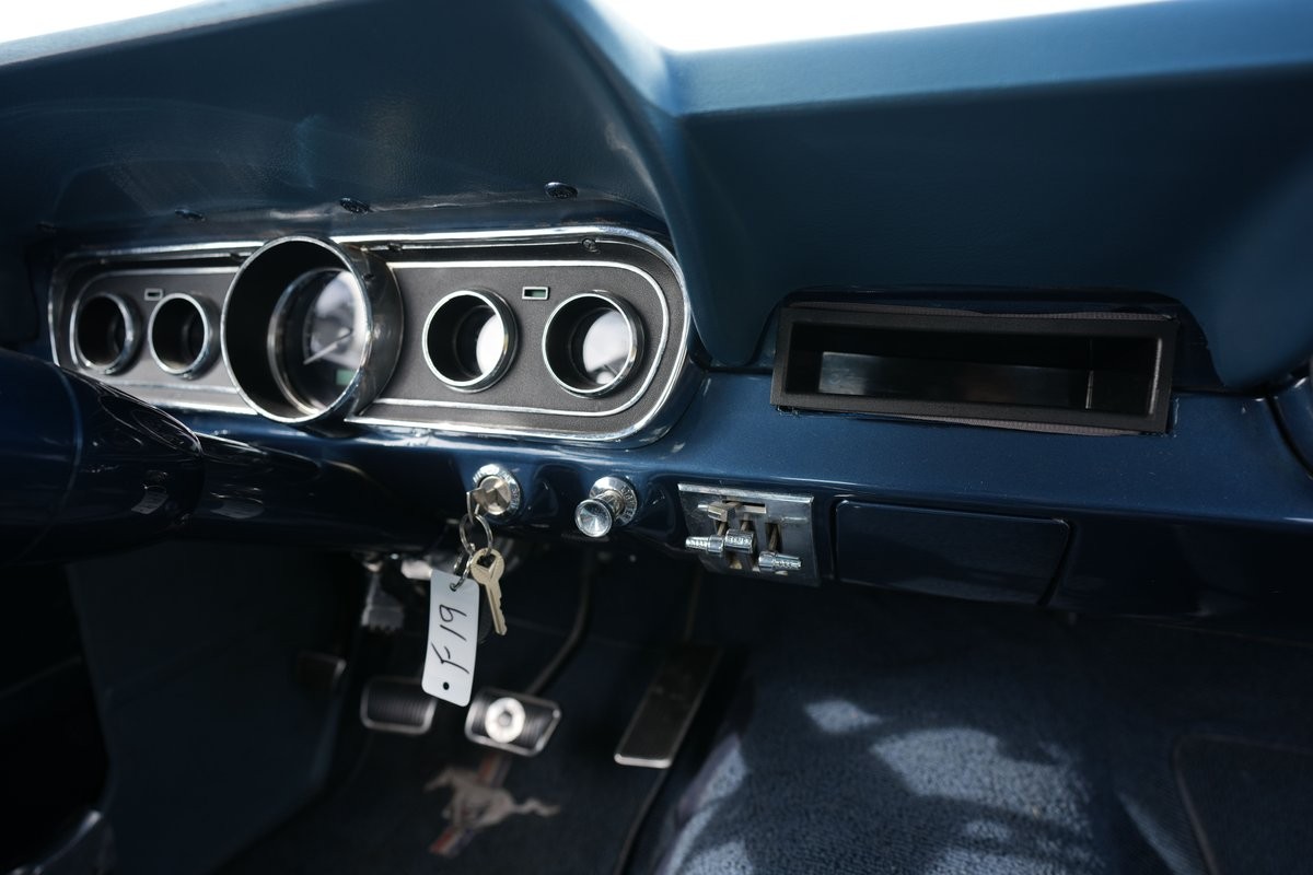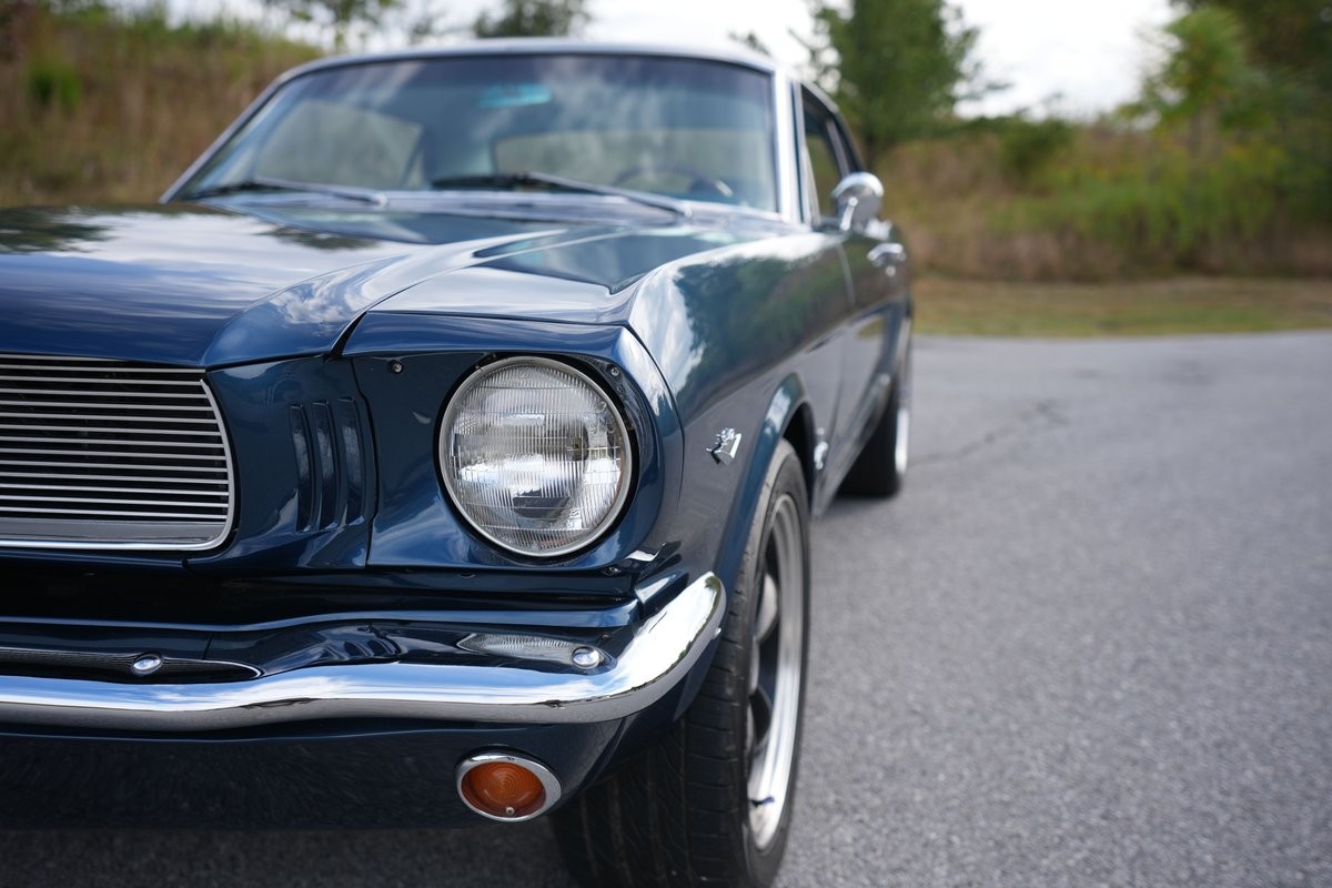 1966 Ford Mustang coupe, a stunning restomod that blends timeless first-generation Mustang style with modern engineering. Finished in Dark Blue Metallic with a matching blue interior, this coupe has been comprehensively upgraded for performance, comfort, and reliability-delivering over 450 horsepower from its 347 Stroker V8.