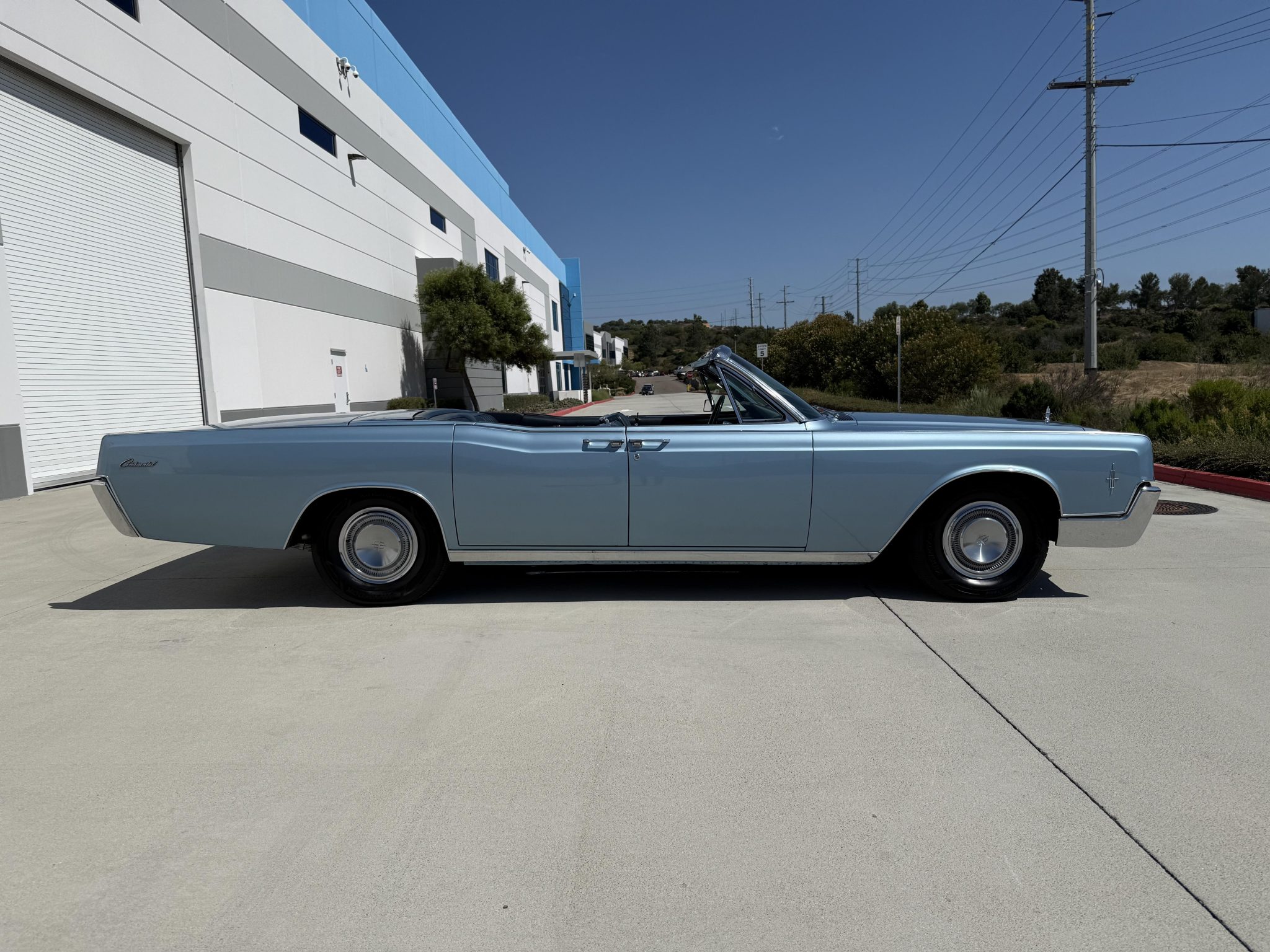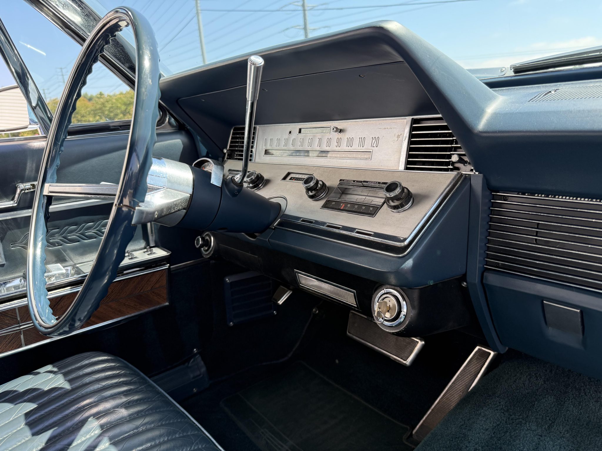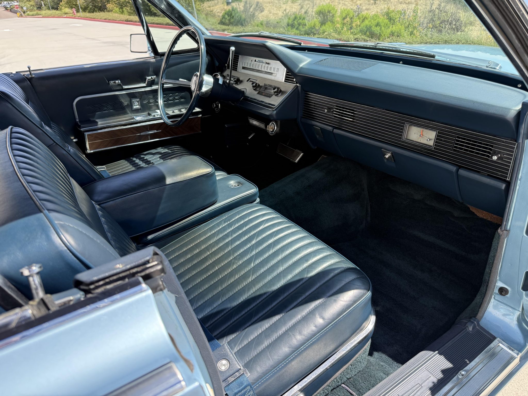 It is finished in blue over blue leather and is powered by a 462ci V8 linked with a dual-range three-speed automatic transmission. Equipment includes a power-operated black convertible top, power steering, power-assisted front disc brakes, 15″ steel wheels with polished covers, power-adjustable front seats, a tilt steering wheel, power windows, an AM radio, cruise control, and a heater.