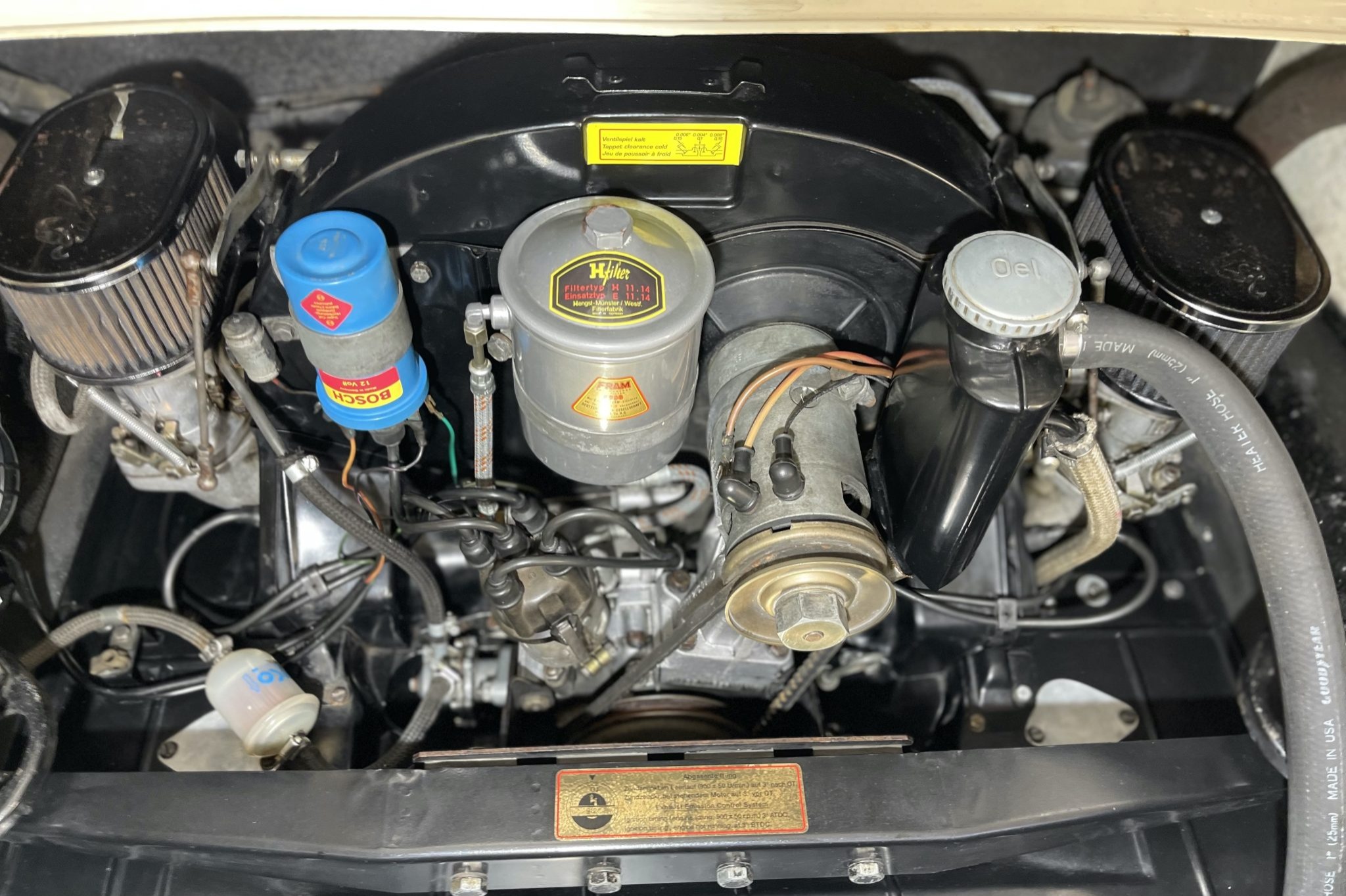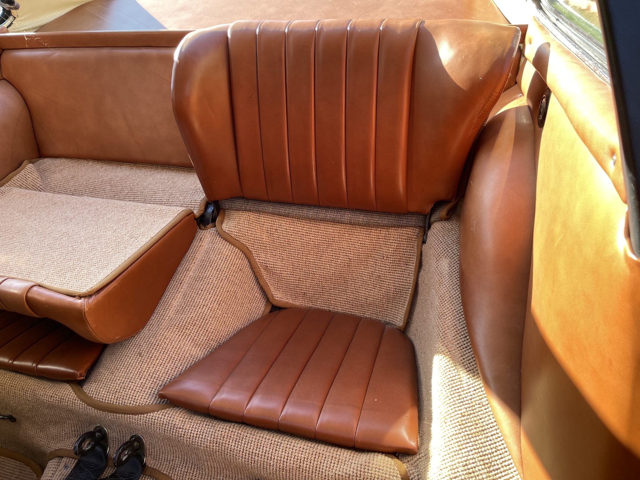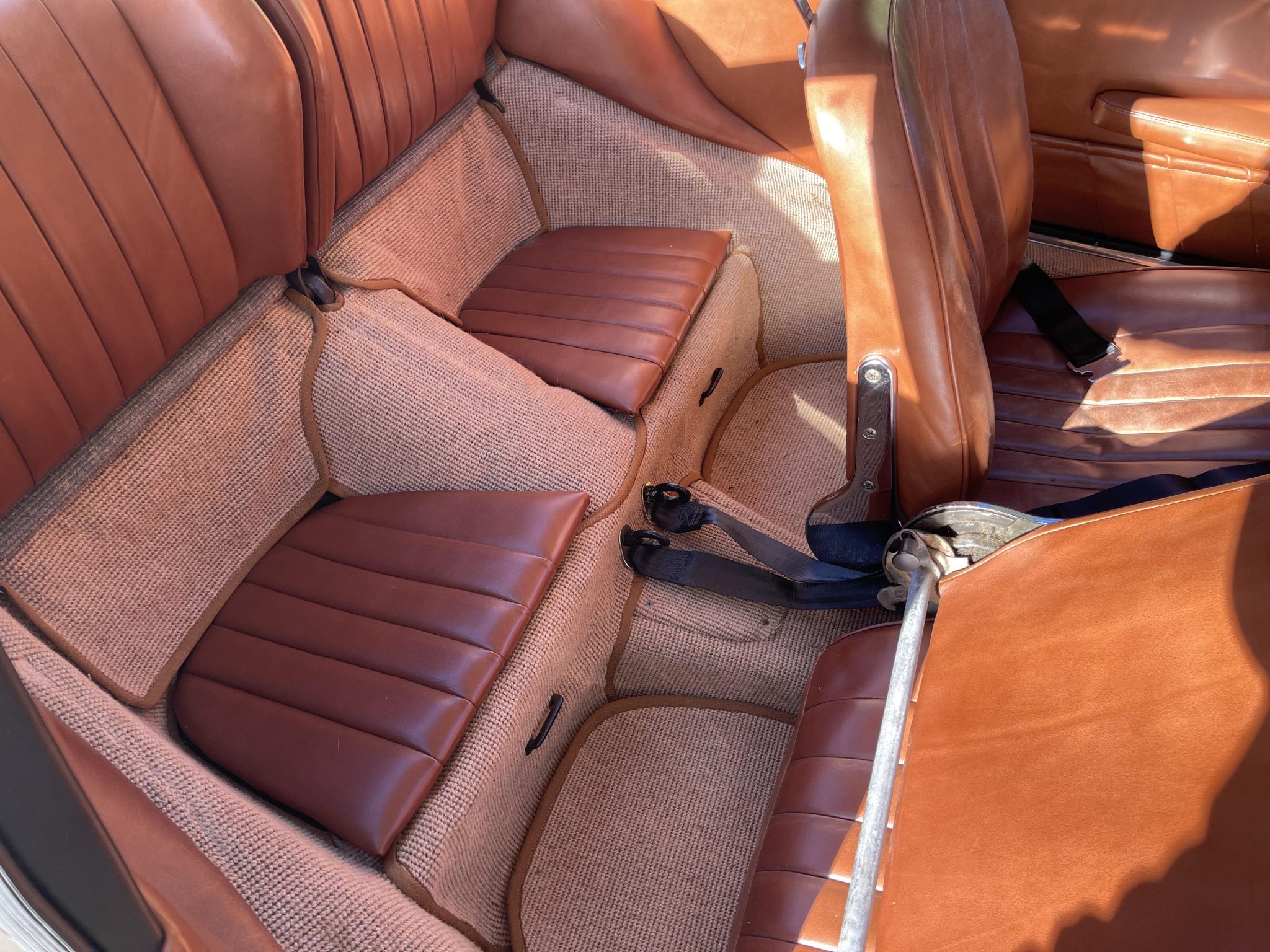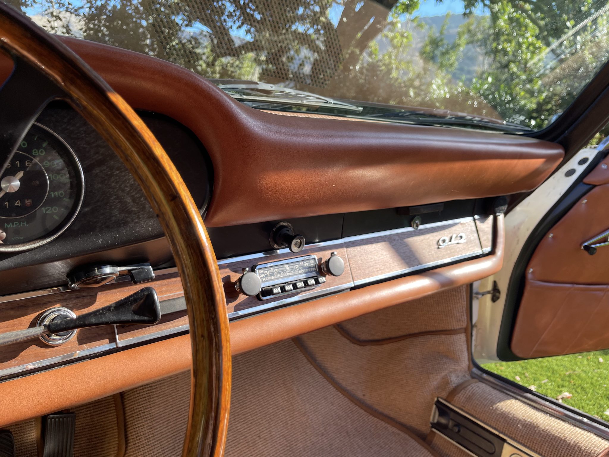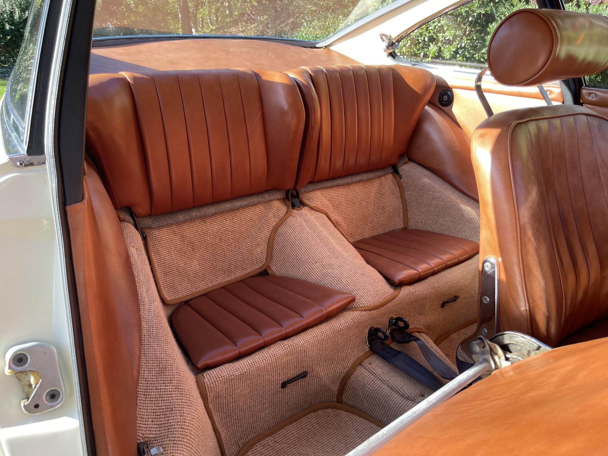 This 1966 Porsche 912 coupe is powered by a 1.6-liter flat-four mated to a five-speed manual transaxle. The car is finished in Light Ivory over brown leather upholstery and equipment includes 15″ perforated steel disc wheels, disc brakes, bright bumper guards, bucket seats, a CD stereo, and a heater.