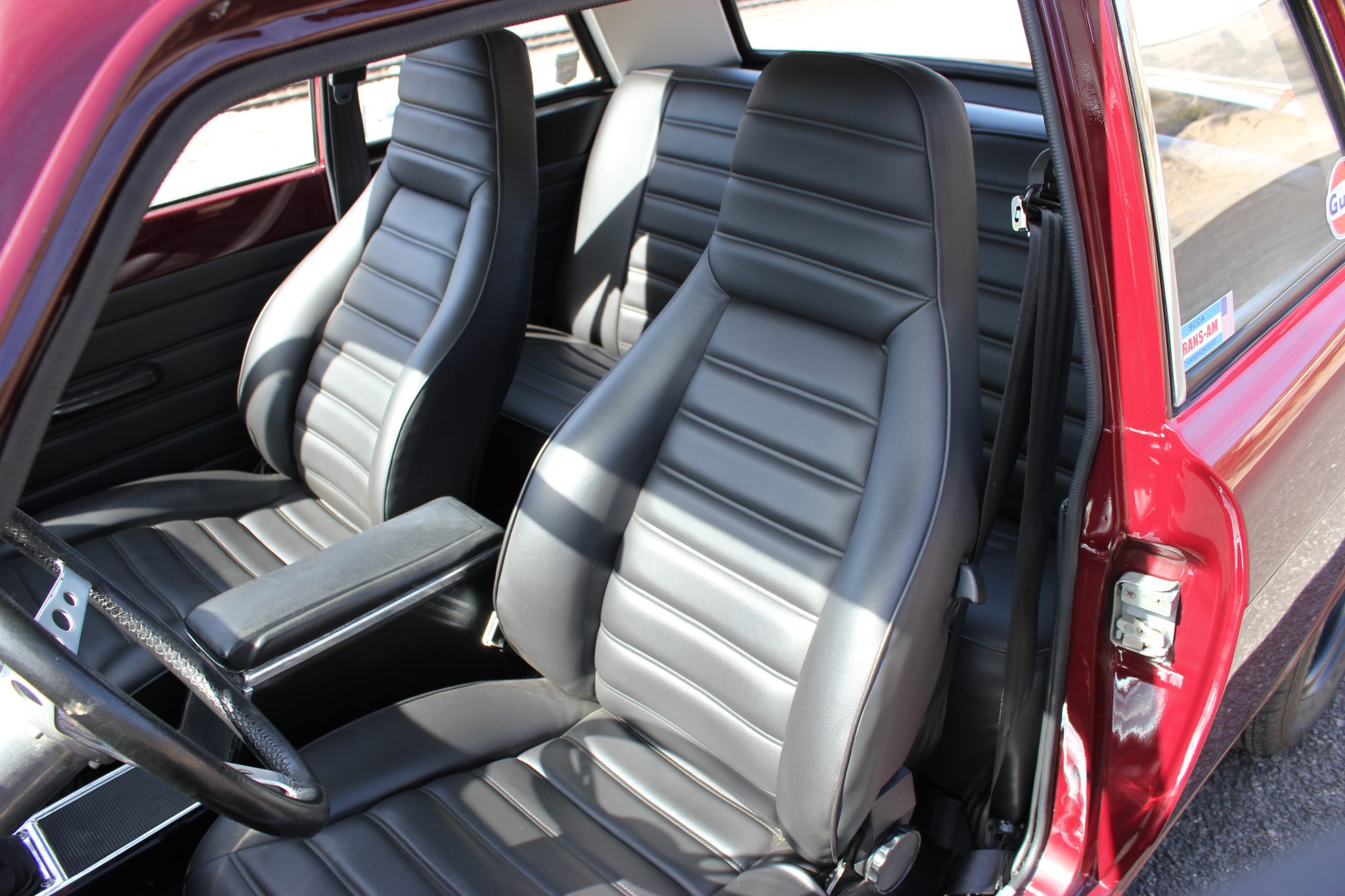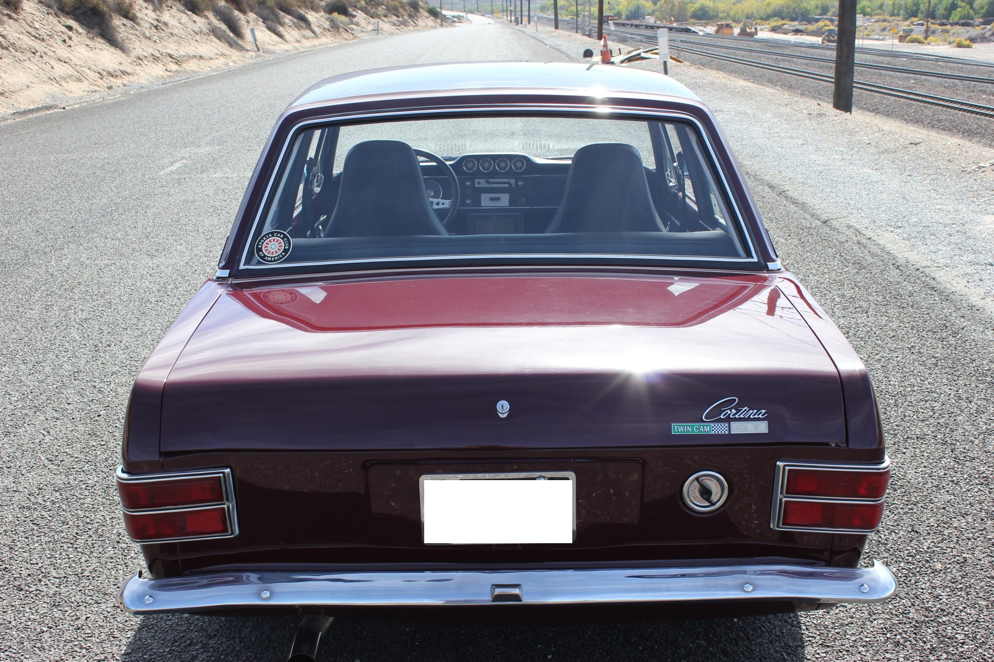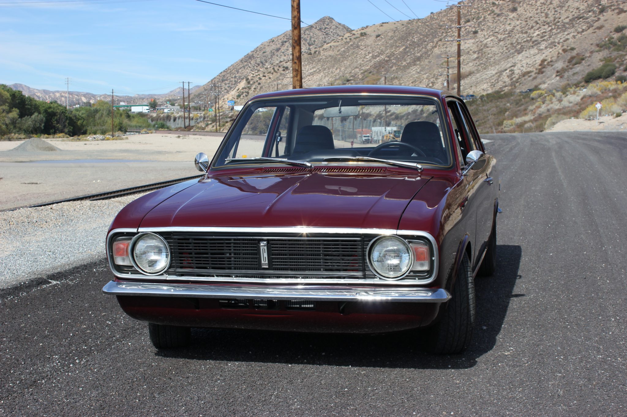 This 1967 Ford Cortina GT Mk II has been fitted with a 2.0-liter Zetec inline-four, Omex individual throttle bodies, and a T9 five-speed manual transmission. It is finished in Black Cherry over black vinyl and also features adjustable front coilovers, front disc brakes, 13″ steel wheels, tubular headers, a stainless-steel exhaust system, and an aluminum radiator.