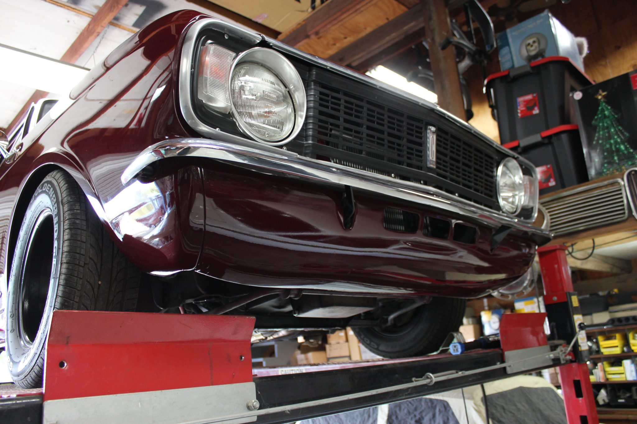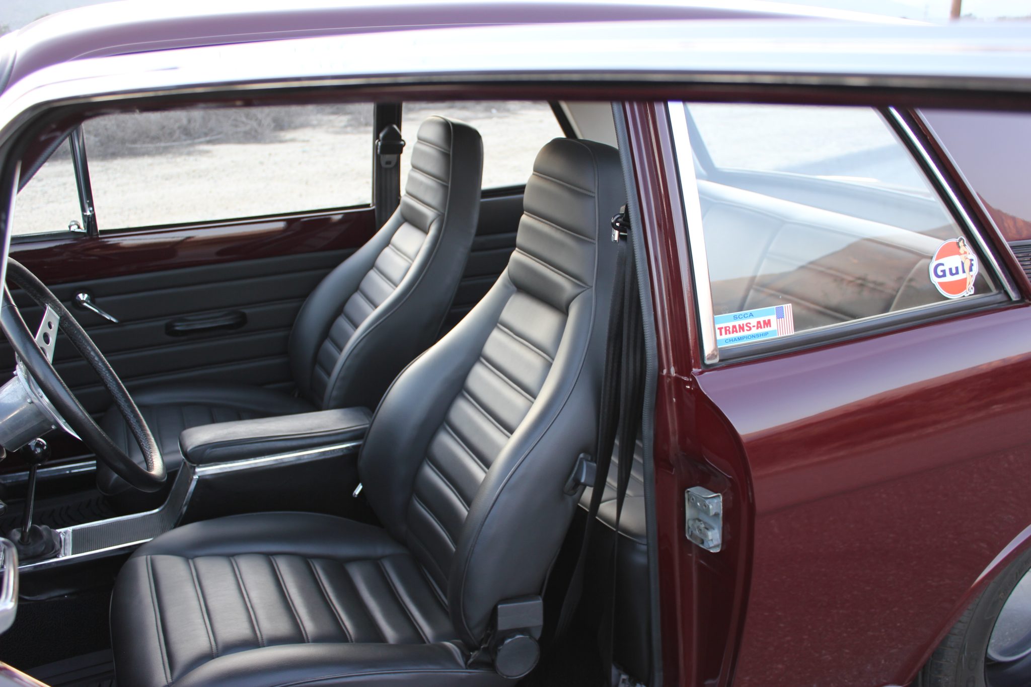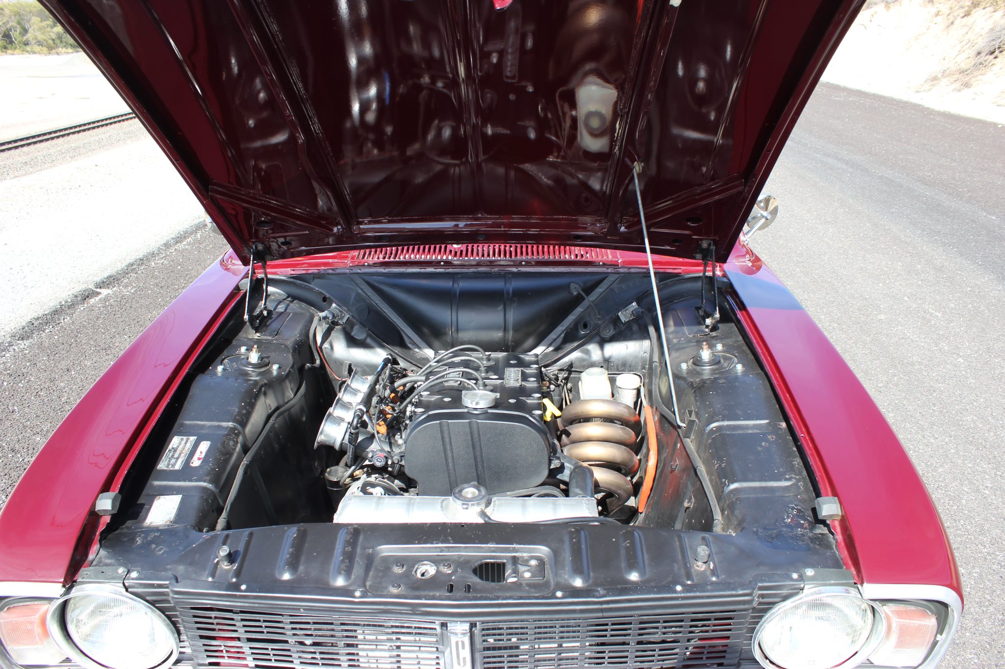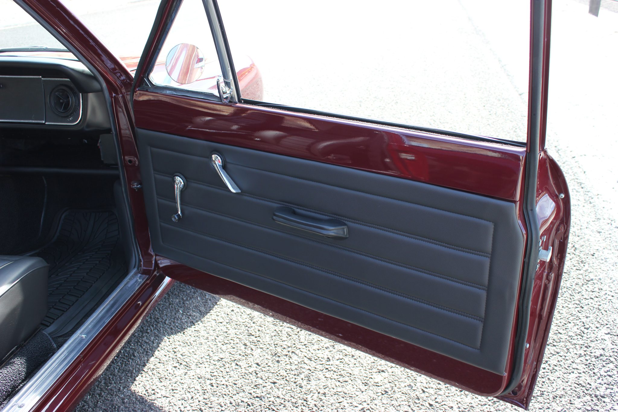 This 1967 Ford Cortina GT Mk II has been fitted with a 2.0-liter Zetec inline-four, Omex individual throttle bodies, and a T9 five-speed manual transmission. It is finished in Black Cherry over black vinyl and also features adjustable front coilovers, front disc brakes, 13″ steel wheels, tubular headers, a stainless-steel exhaust system, and an aluminum radiator.