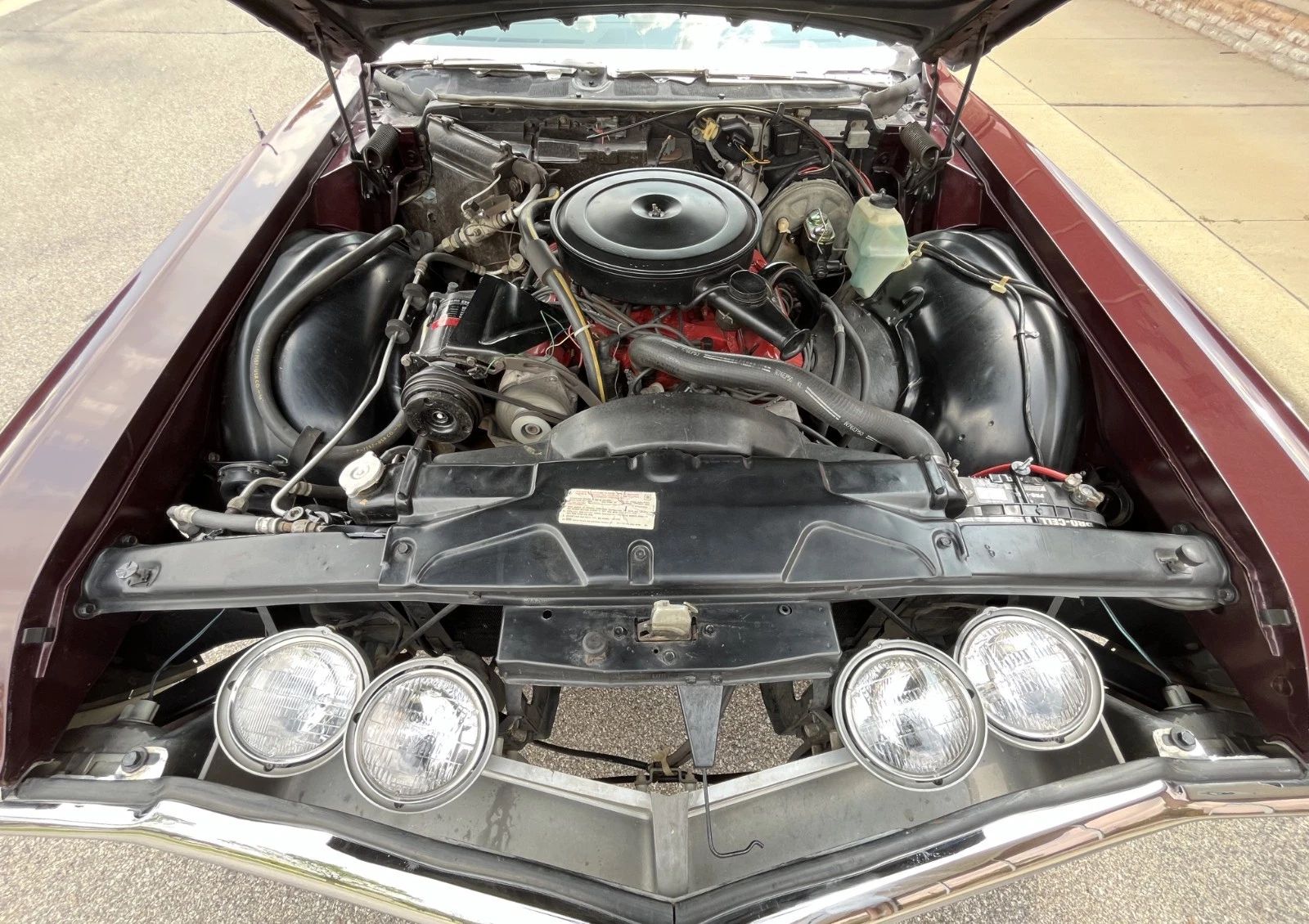 Equipped with 430 cubic inch 360hp V-8. Original engine and driveline. Power steering and brakes, power windows and bench seat, power antenna, tilt wheel. AM radio inop but lights up with dash lights. Ice cold air conditioning. Vacuum headlamps work flawlessly.