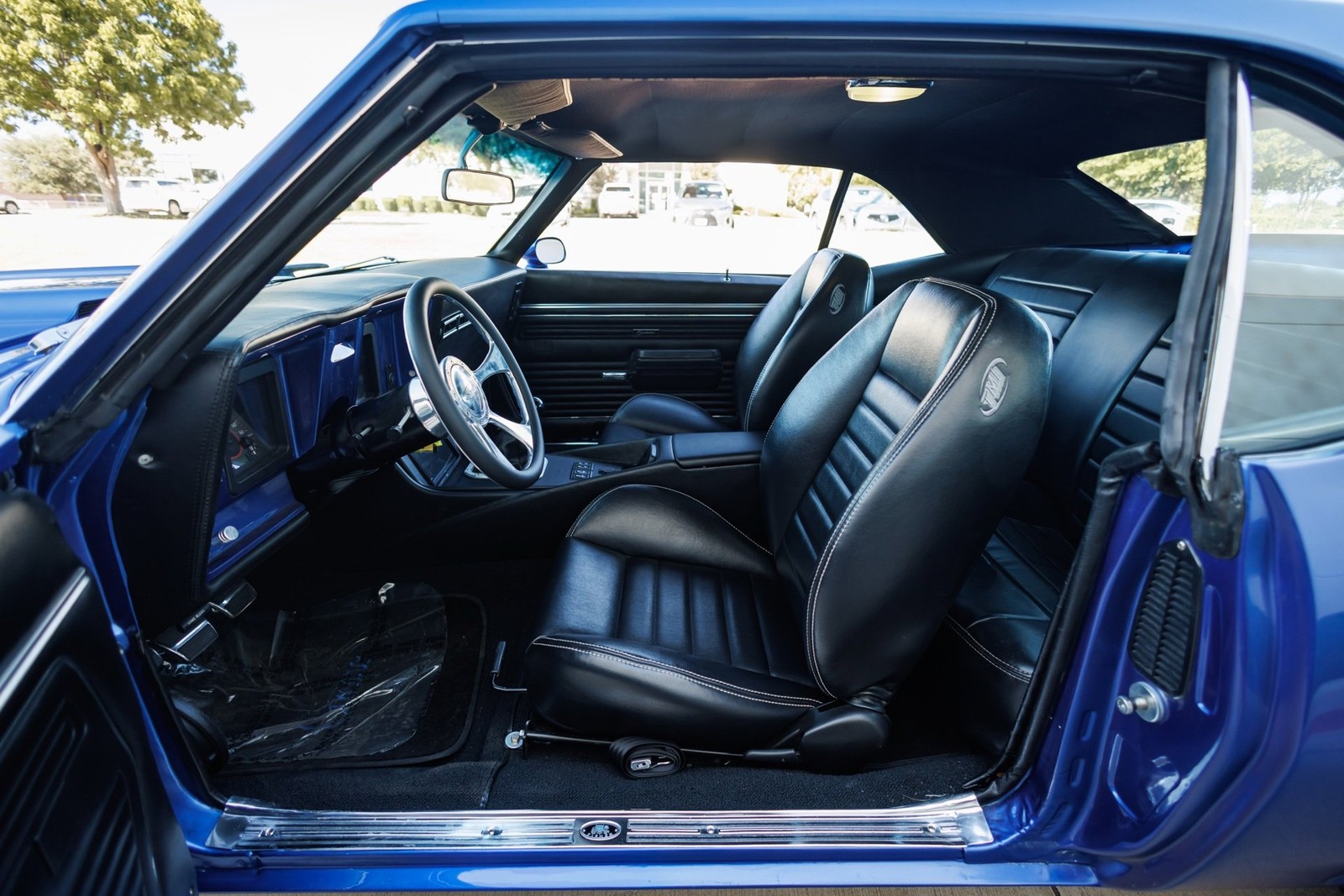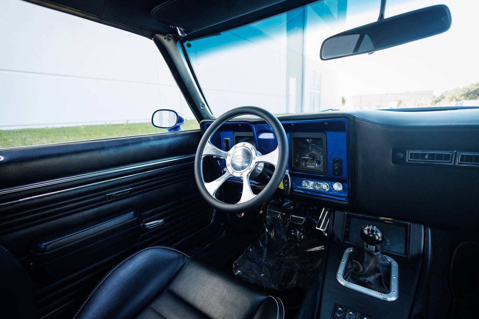 1969 Chevrolet Camaro. This thing is truly a MONSTER. With it's Smeding built engine pushing 640+ Horse Power, Tremec TKX Manual Transmission and all the modern upgrades this Camaro will win races and take you wherever you need!Features:Ground Up restorationSmeding 8.2L 540ci big-block GM performance engine pushing 640 Horsepower and 680 foot pounds of Torque.Tremec TKX 5-speed manual transmissionFord 9-inch Truetrac nodular differential with 3.89 gearsWilwood disc brakes with 6-piston calipers on the front and 4-piston calipers on the rearTCI Camaro chassisQA1 coilovers on all four cornersTCI independent front suspensionDetroit mini-tubKindig-It flush door handlesFlush-mount windshieldFront and rear billet hingesBudnik Fontana WheelsKindig-It Flat Out rear spoilerCVF billet strut hinges, hood and decklidMirror finish Ultramarine BluePro-Series Sport R interior, 1 piece headliner, custom dash