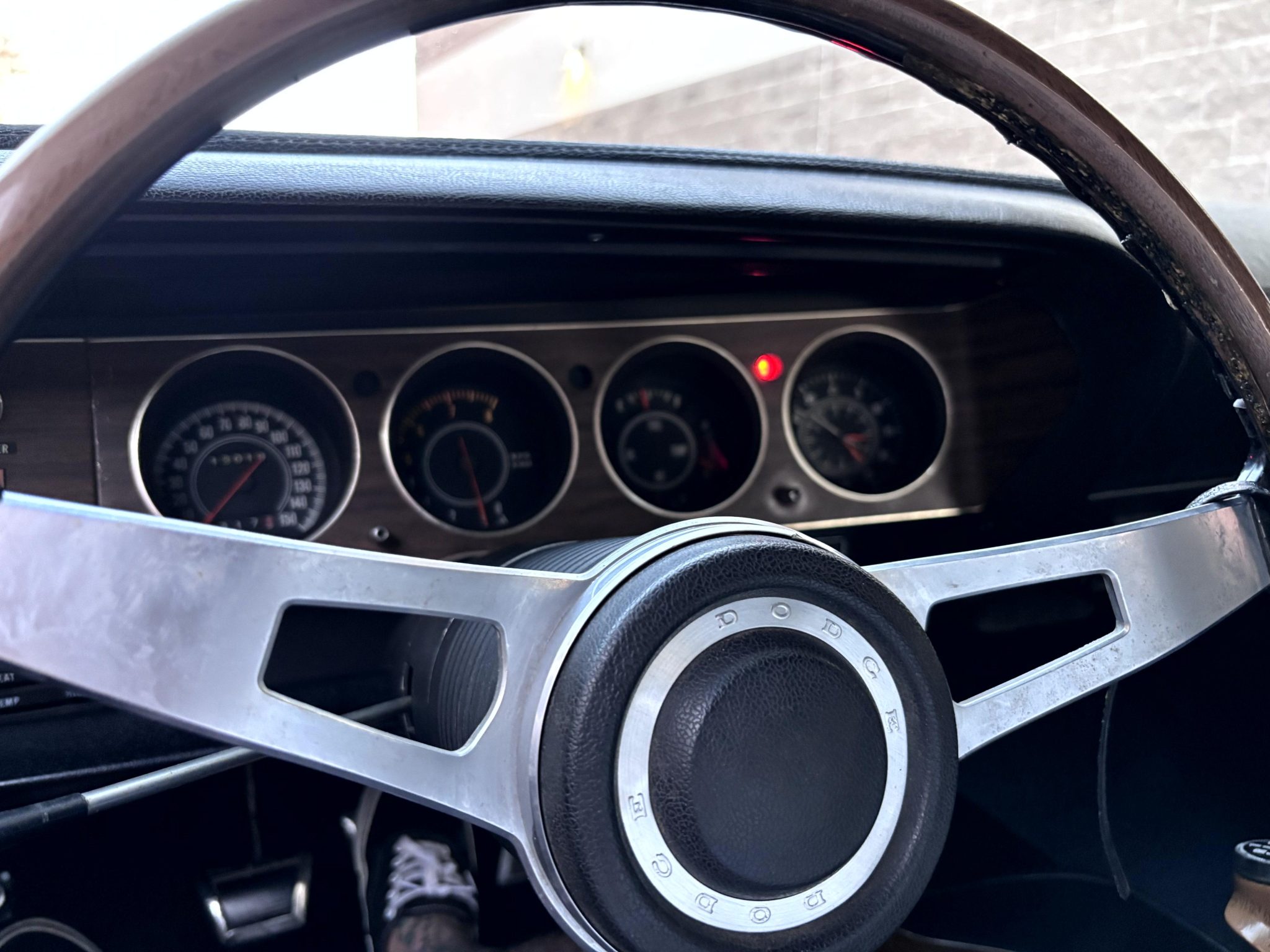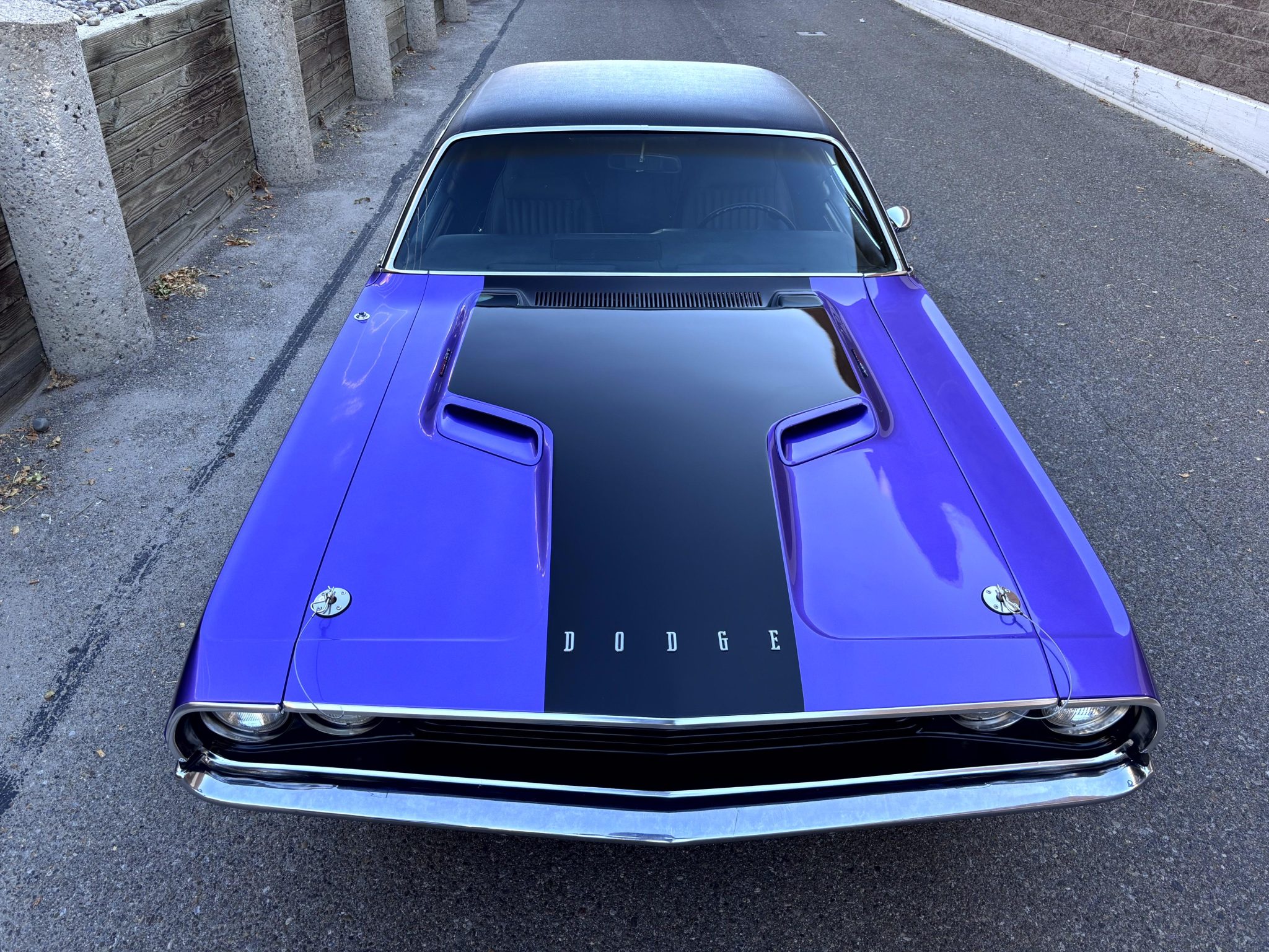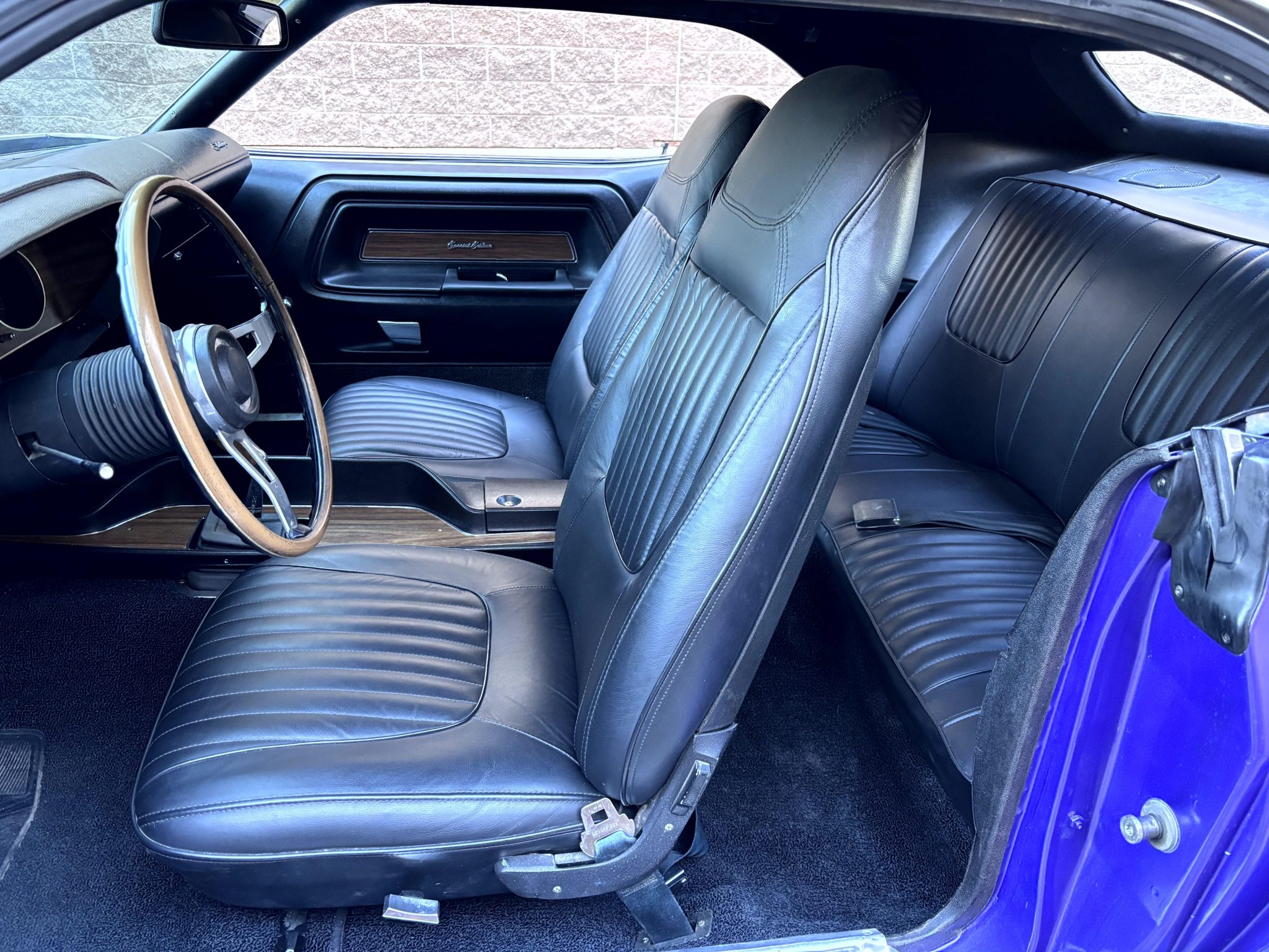 A refurbishment in 2019–2020 that involved rebuilding the replacement 440ci V8 and the A833 four-speed manual transmission, repainting the body in Plum Crazy with black accents, retrimming the roof in black vinyl, reupholstering the bucket seats in black leather, adding Borgeson power steering, and replacing many components. The engine has been bored .030″ over, and modifications include Wiseco pistons, a Comp Cams flat-tappet camshaft, an Edelbrock intake manifold, an Edelbrock carburetor, an aluminum radiator, ceramic-coated TTi headers, MagnaFlow mufflers, and 3.54:1 rear-end gearing. The car is also equipped with the A34 Super Track Pak, Rallye 15″ wheels, power-assisted front disc brakes, center and overhead consoles, an AM radio, Rallye gauges, and a Hurst pistol-grip shifter