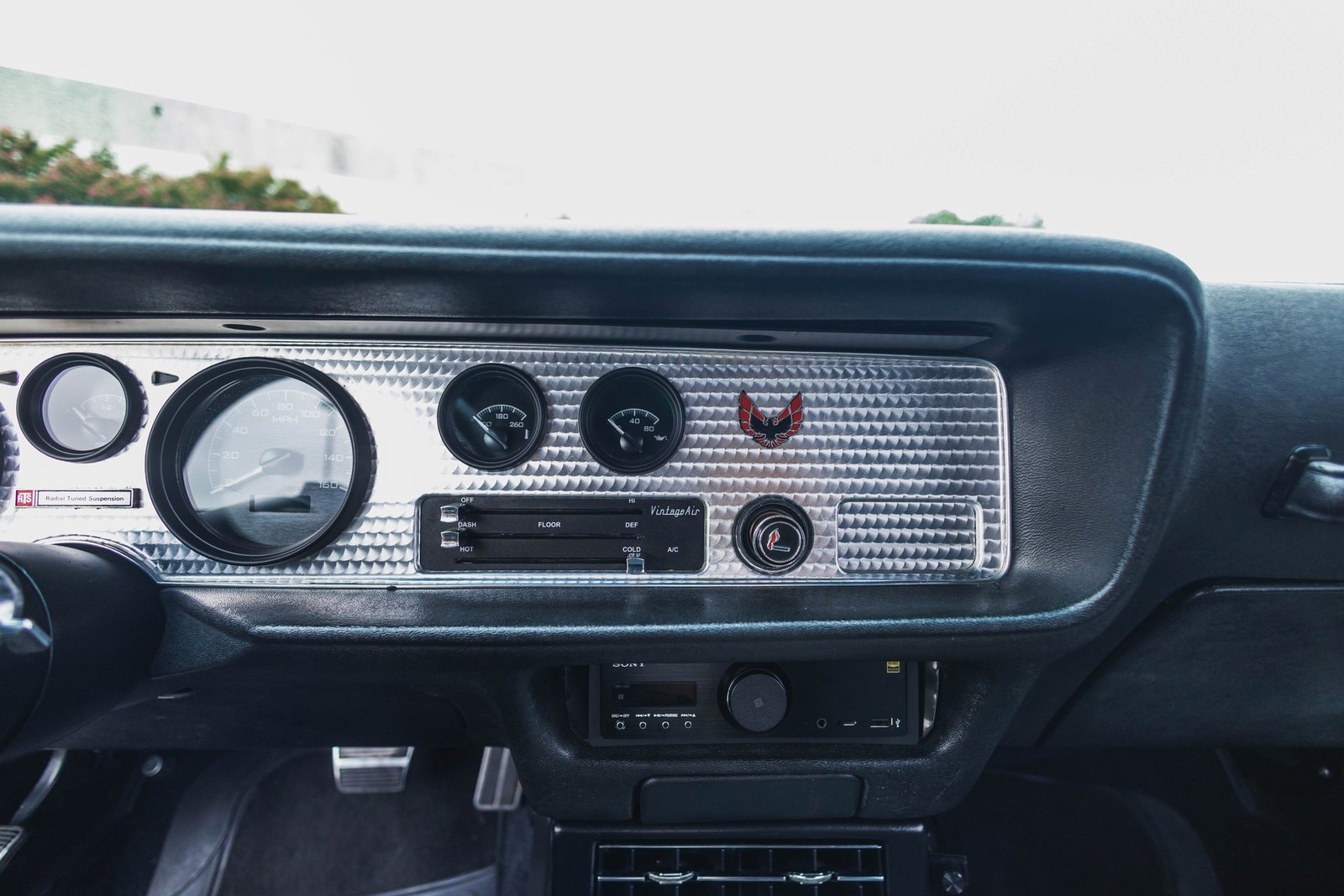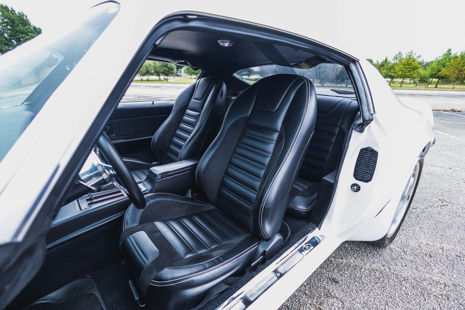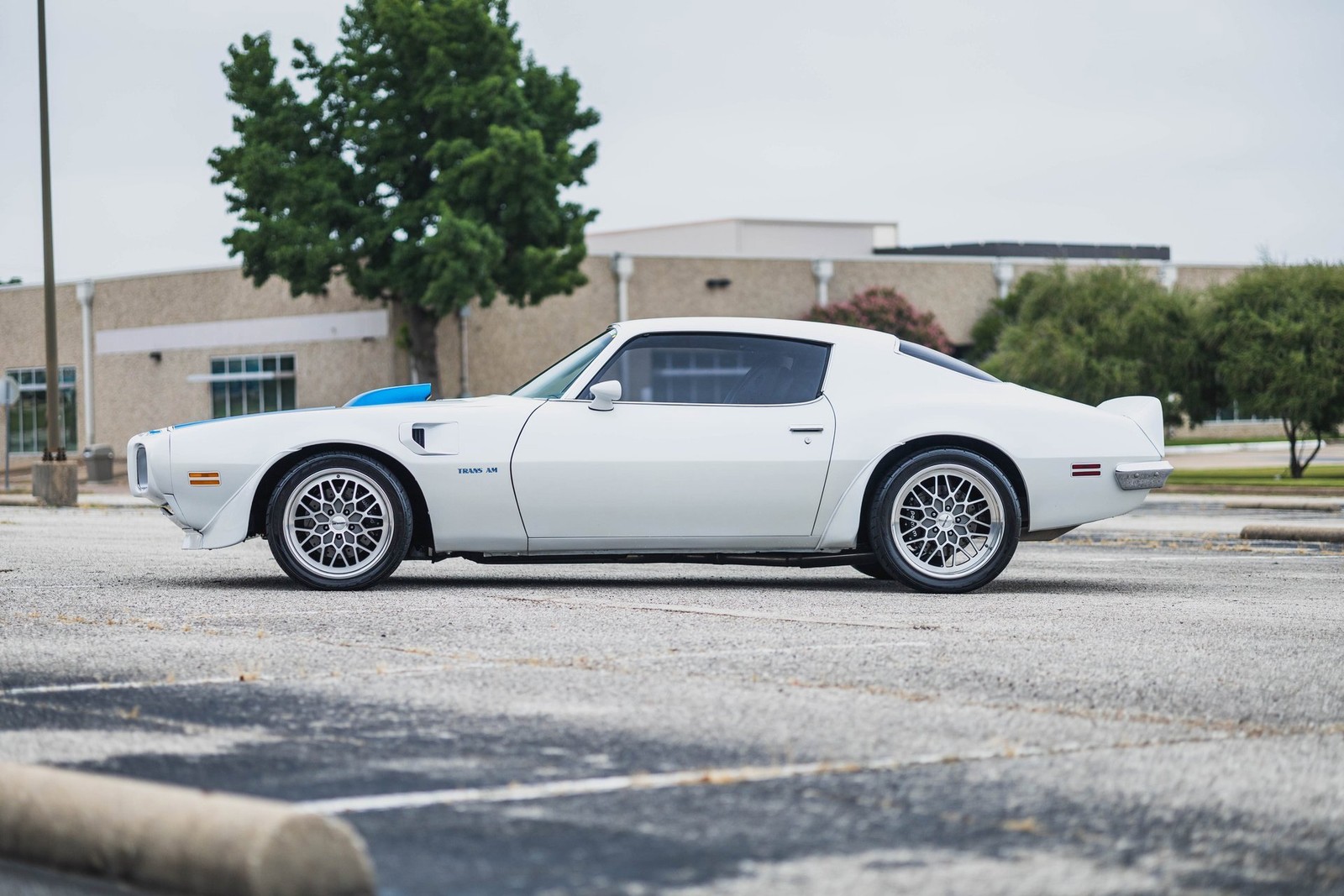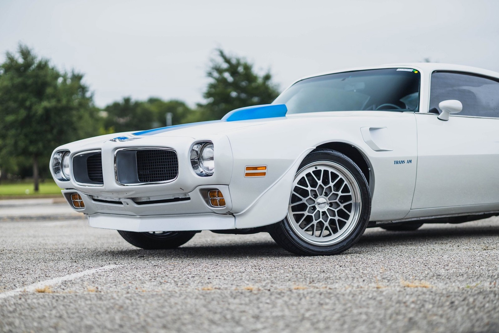 1973 Pontiac Firebird Trans Am LS3 Stroker Restomod. This car is so clean you could eat off of it.One-of-a-Kind Drivetrain:418ci LS3 by Thompson Motorsports 609 HPHolley Dominator ECUBuilt 4L80 Trans w/Hughes ConverterUpgraded 10-bolt rear with bulletproof internalsSuspension & Brakes:QA1 front suspension, leaf springs rearWilwood 4-wheel disc brakesForgeline 2-piece wheels, staggeredCooling & Interior:Griffin RadiatorVintage Air A/CCustom Interior w/ TMI seatsDakota Digital gaugesAmerican Autowire harnessTheater-quality sound system with custom sub box and dual ampsPaint & Body:White base with blue pearl mid-coat and clearCustom hand-laid blue flake graphics under another layer of clear no decals