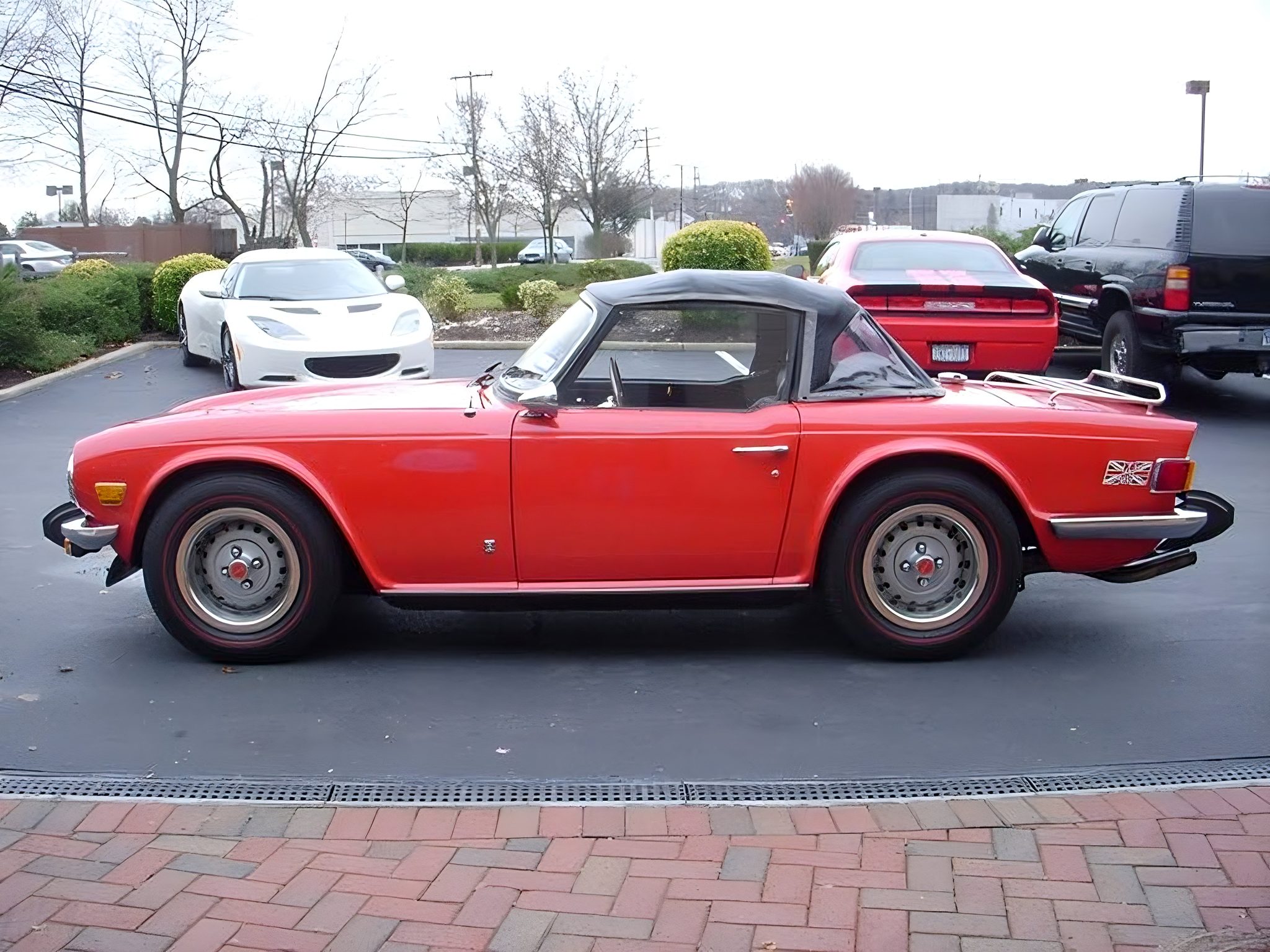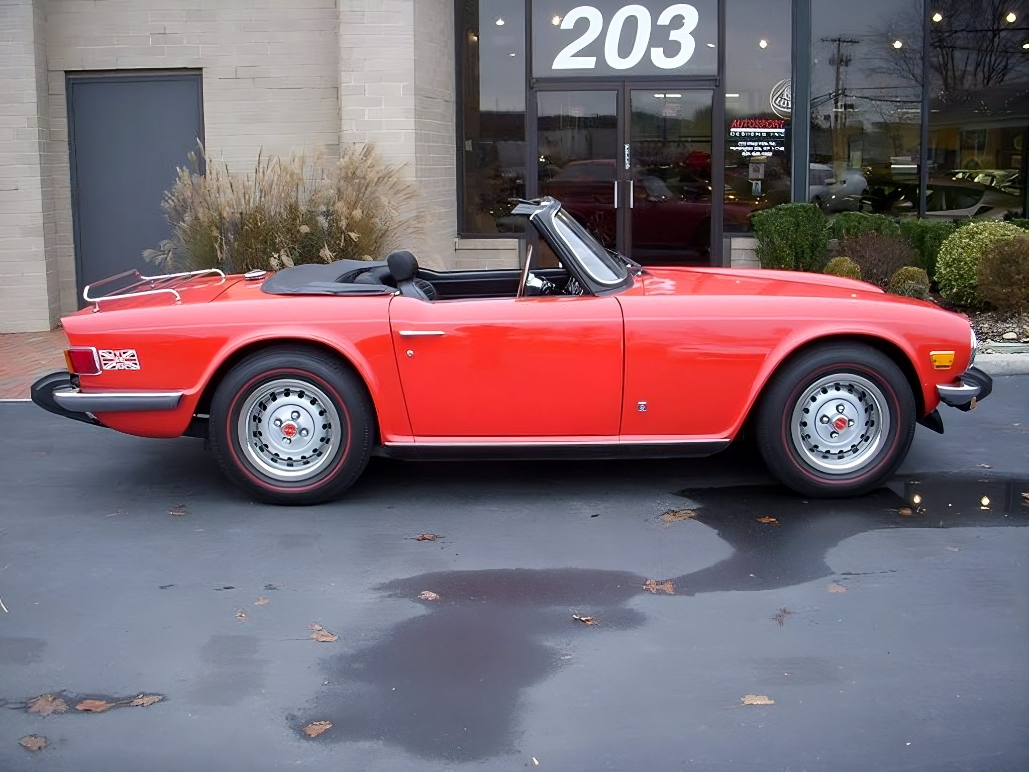 This 1976 Triumph TR6 was the subject of a body-off refurbishment circa 2006 during which its fuel-injected 2.5L inline-six, four-speed manual transmission, and Laycock de Normanville overdrive unit were all rebuilt at an estimated cost of over $20k. The car is finished in Pimento over black vinyl, and it is equipped with a color-matched hardtop, a black soft top and top boot, a luggage rack, 15″ steel wheels, polished trim rings, a Panasonic radio, and a wood-rimmed steering wheel.