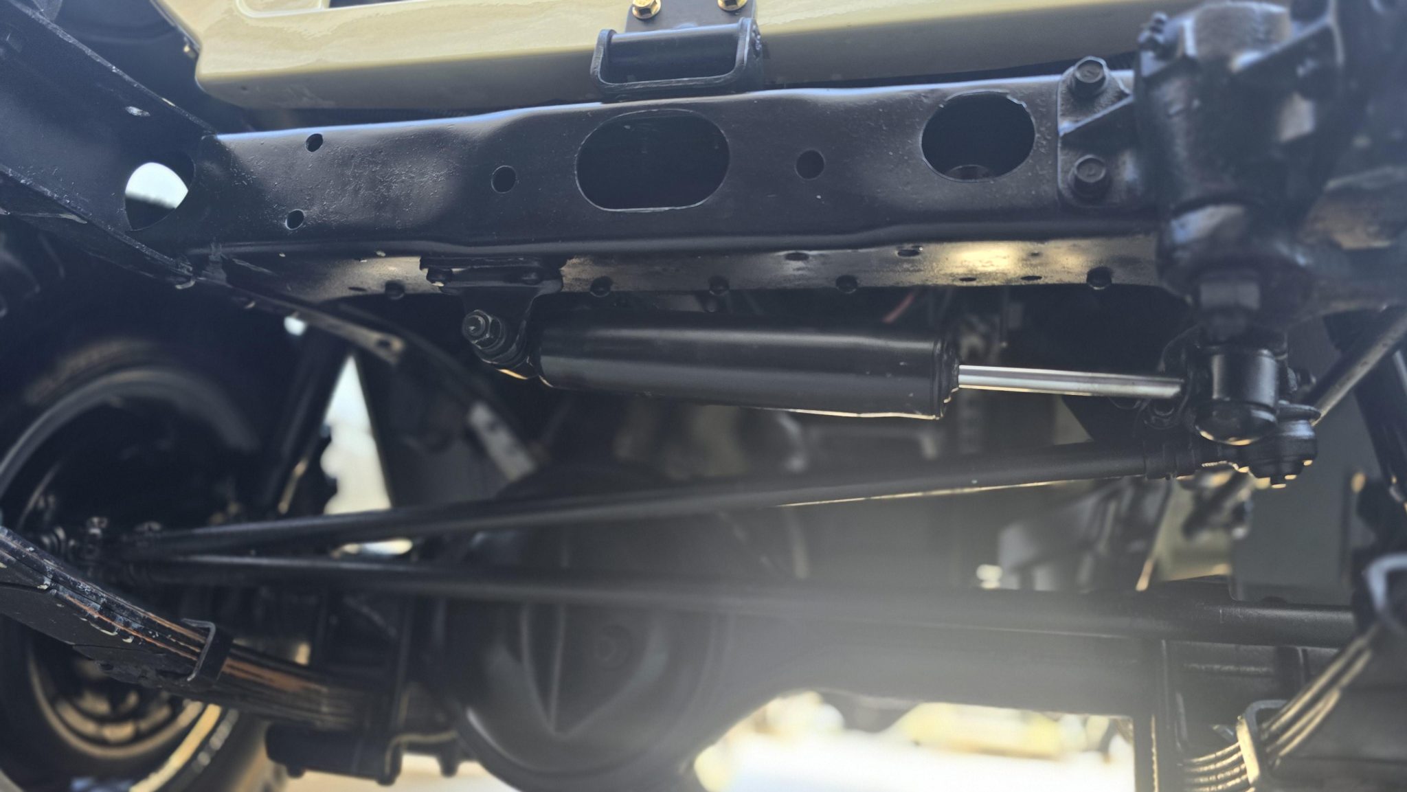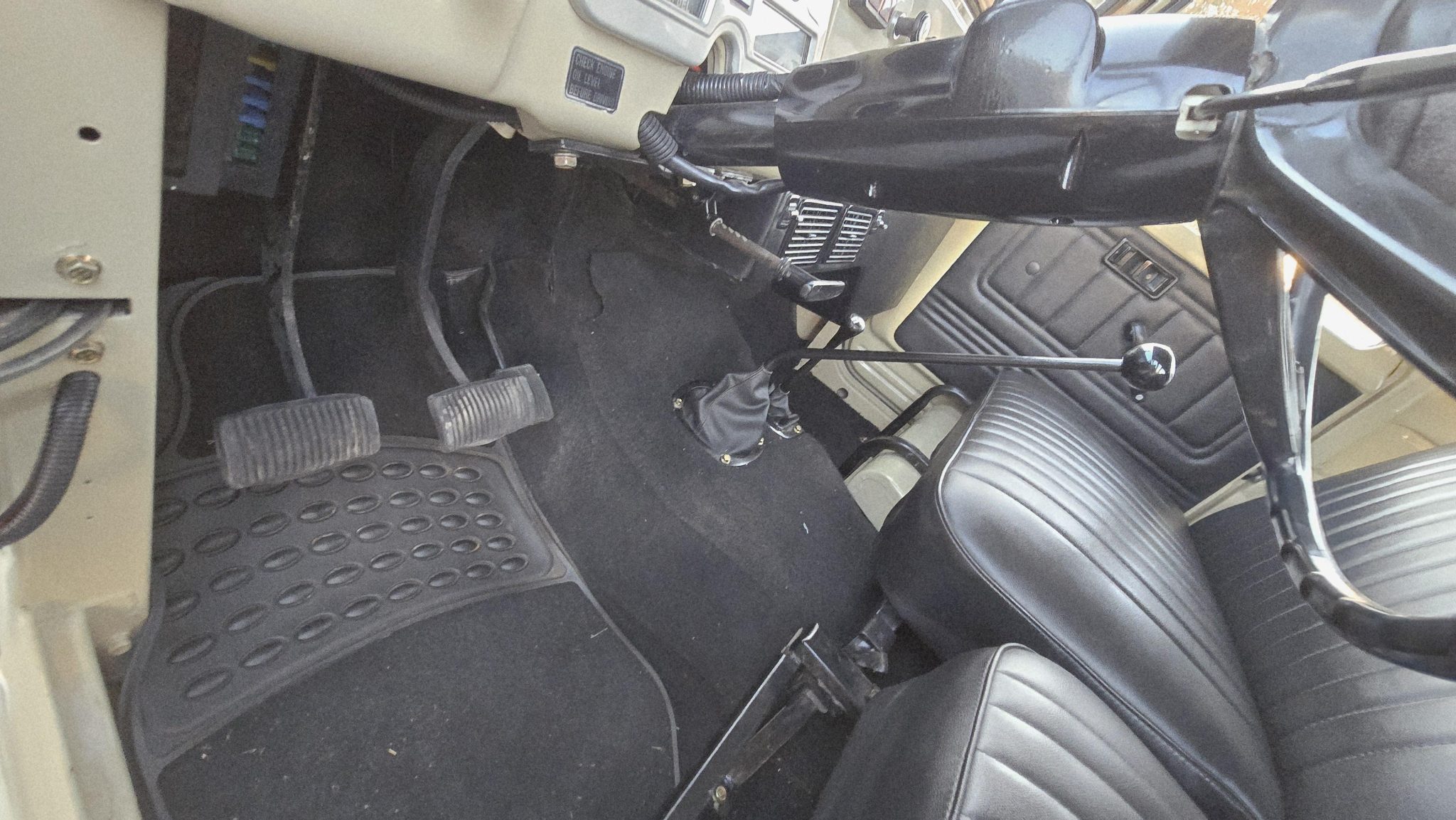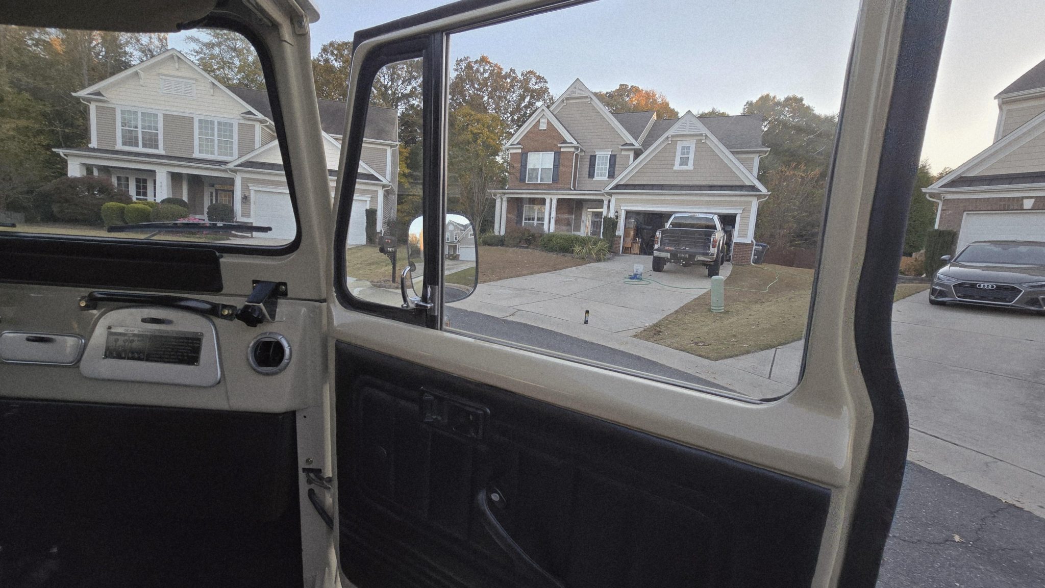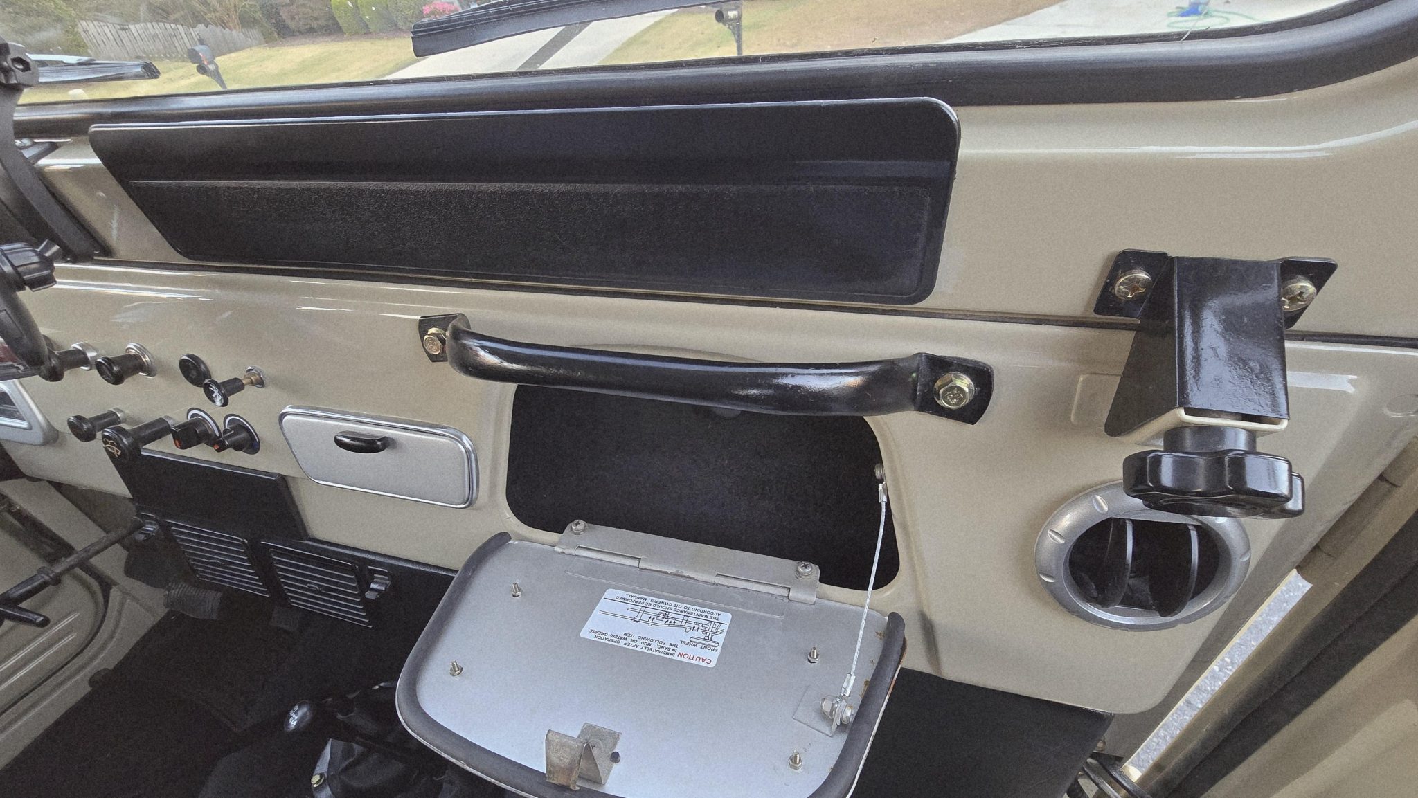 Finished in beige over black upholstery, the truck is powered by a 4.2-liter 2F inline-six linked with a four-speed manual transmission and a dual-range transfer case. Details include a removable hardtop and a white roof as well as 16″ wheels, manually locking front hubs, power steering, four-wheel disc brakes, and a rear pintle hitch and tow ball. Inside, air conditioning, rear jump seats, power windows, and a Bluetooth-enabled sound system are fitted.