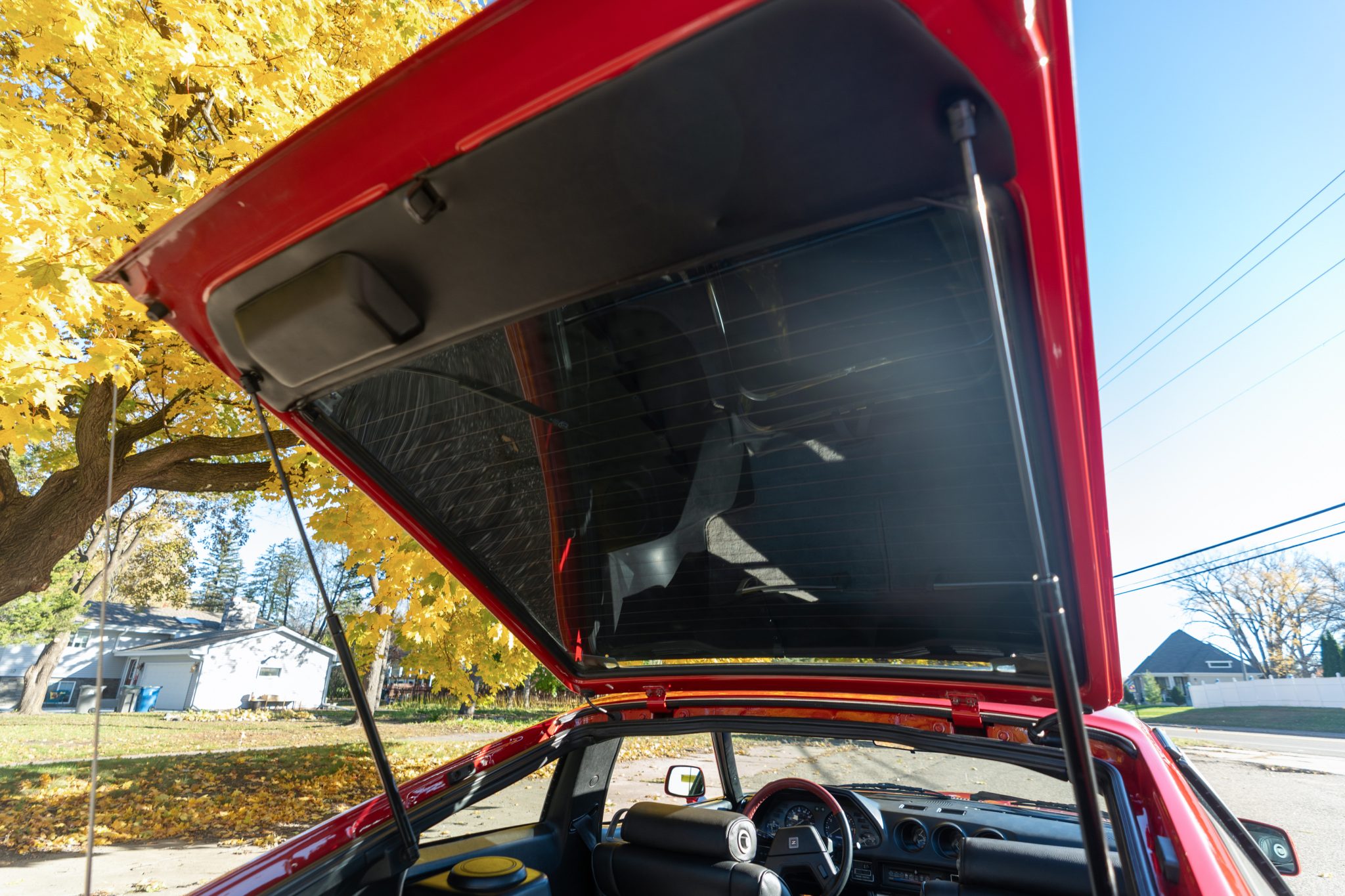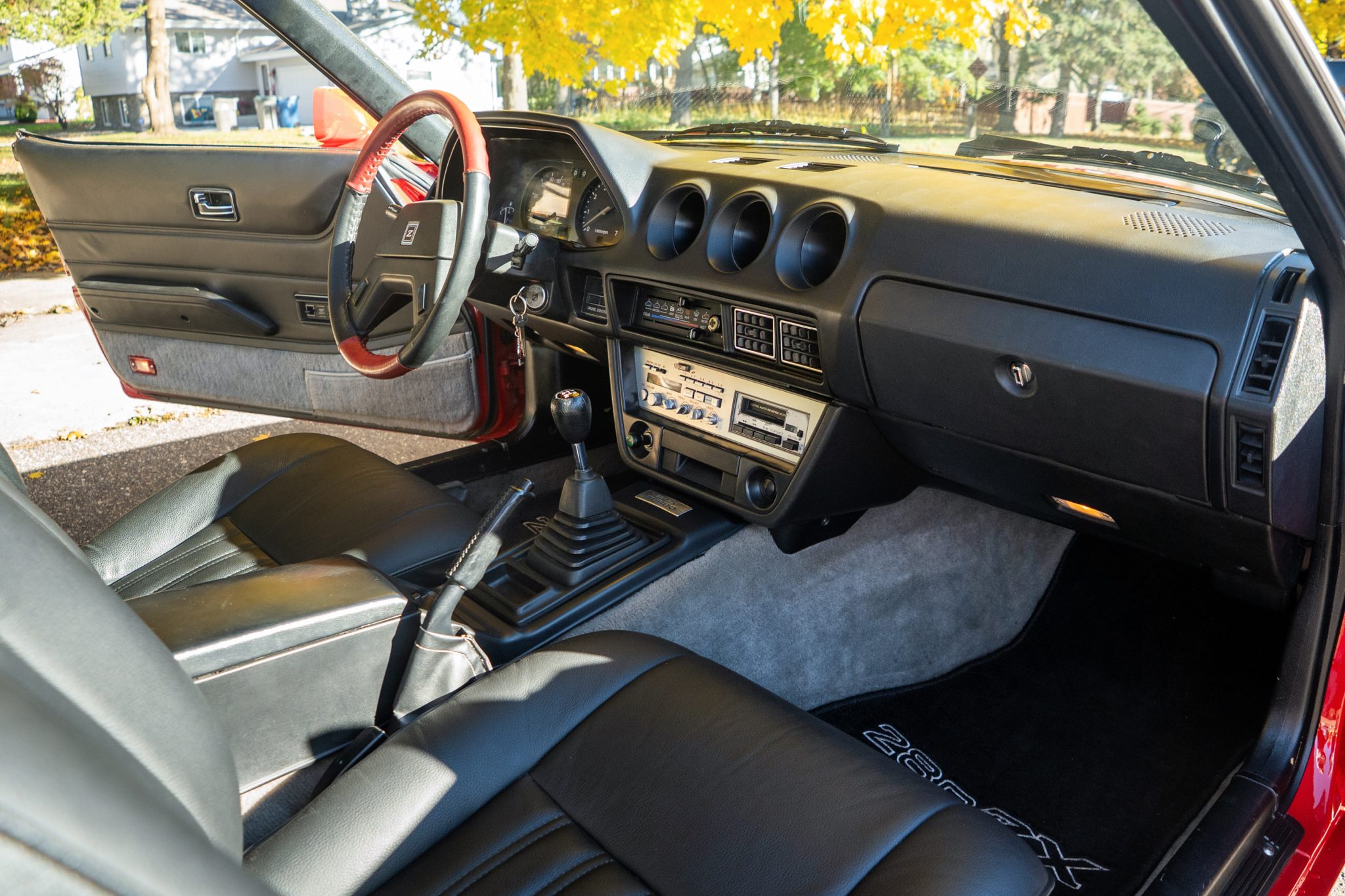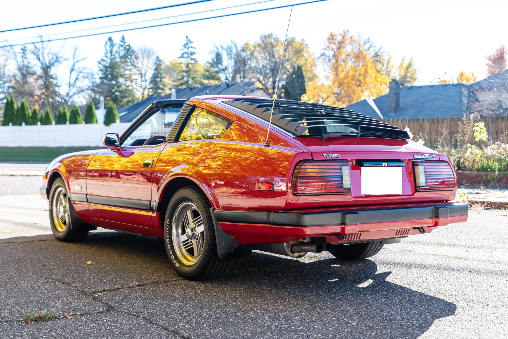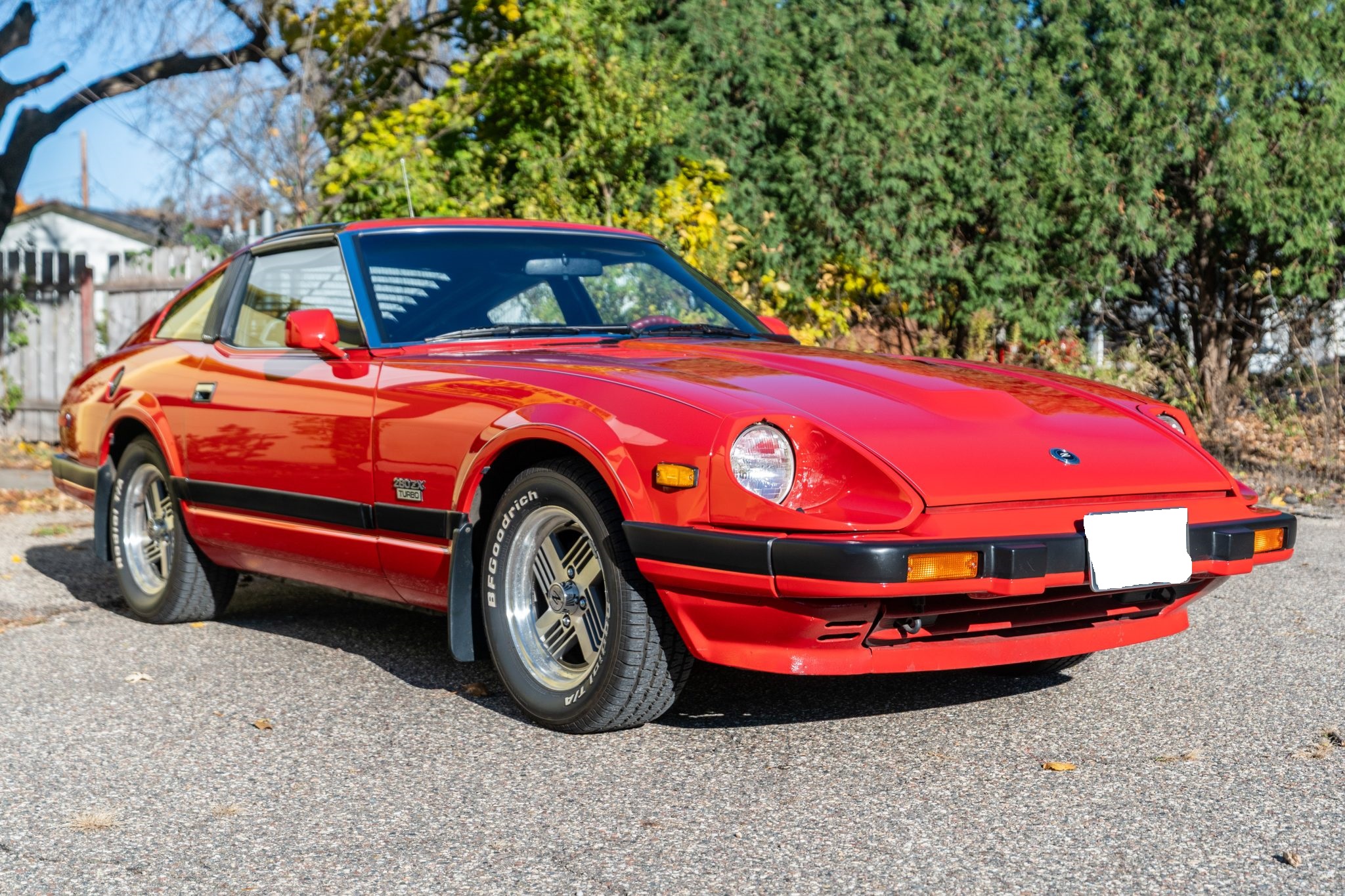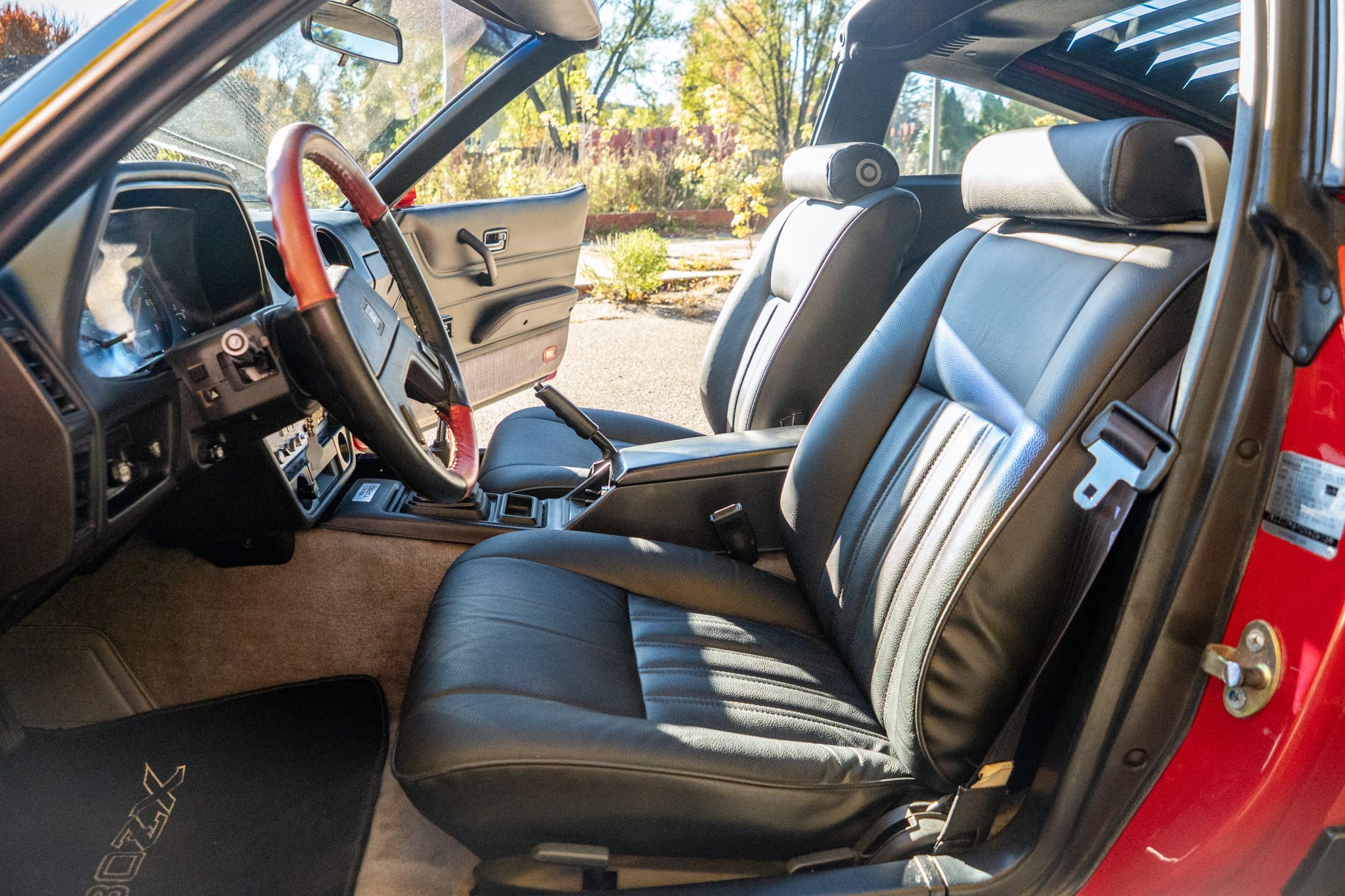 The car is finished in Regatta Red and is powered by a turbocharged 2.8-liter inline-six paired with a five-speed manual transmission. The cabin features bucket seats that have been reupholstered in black leather, and additional equipment includes 15″ ZX Turbo wheels, a front spoiler, removable T-top roof panels, headlight washers, power-adjustable side mirrors, rear window louvers, power windows, air conditioning, cruise control, and an AM/FM/cassette stereo, the latter of which was rebuilt in 2022. Additional recent service included overhauling the rear brakes, installing an aluminum radiator, and replacing the tires and drive belts.
