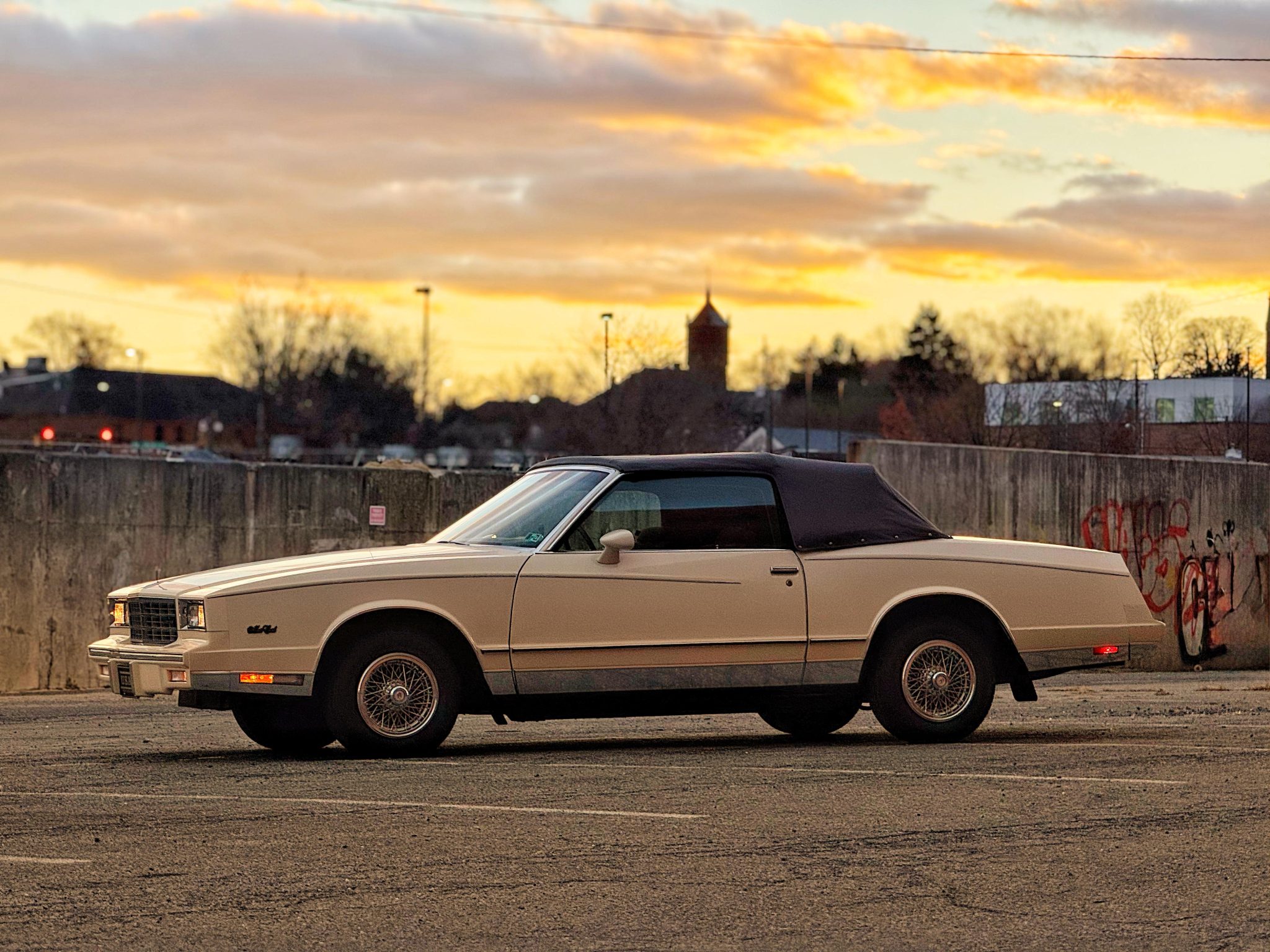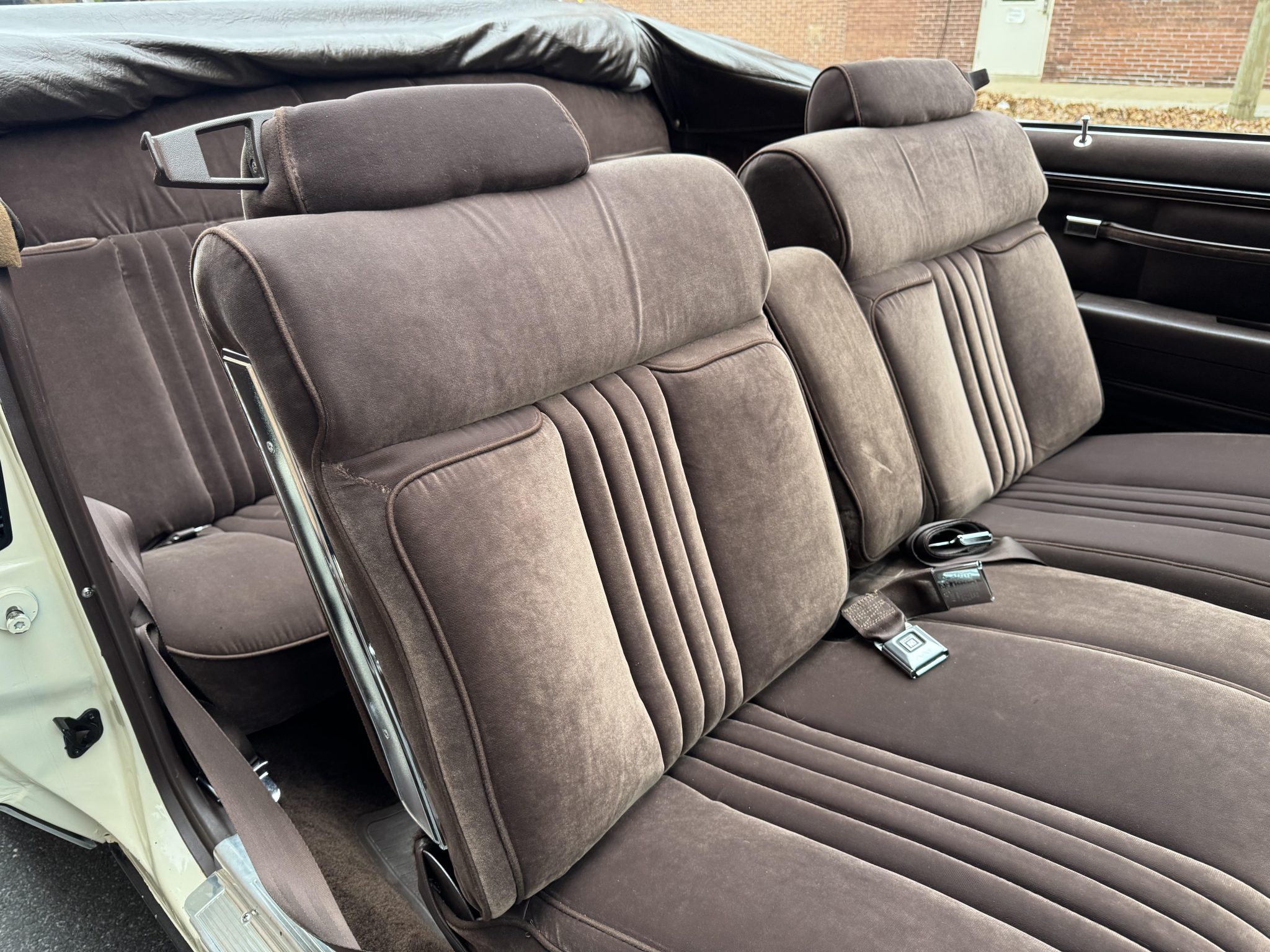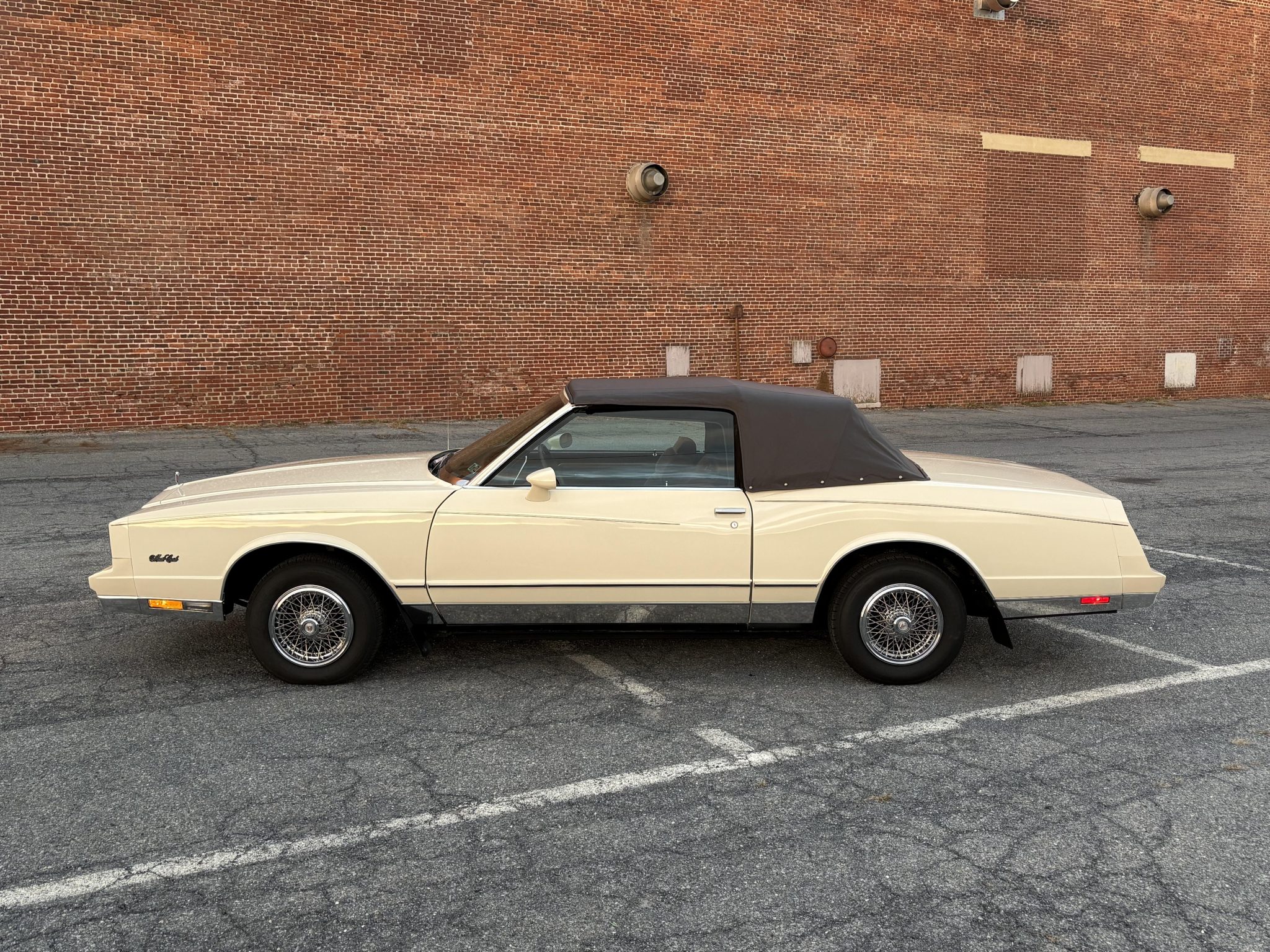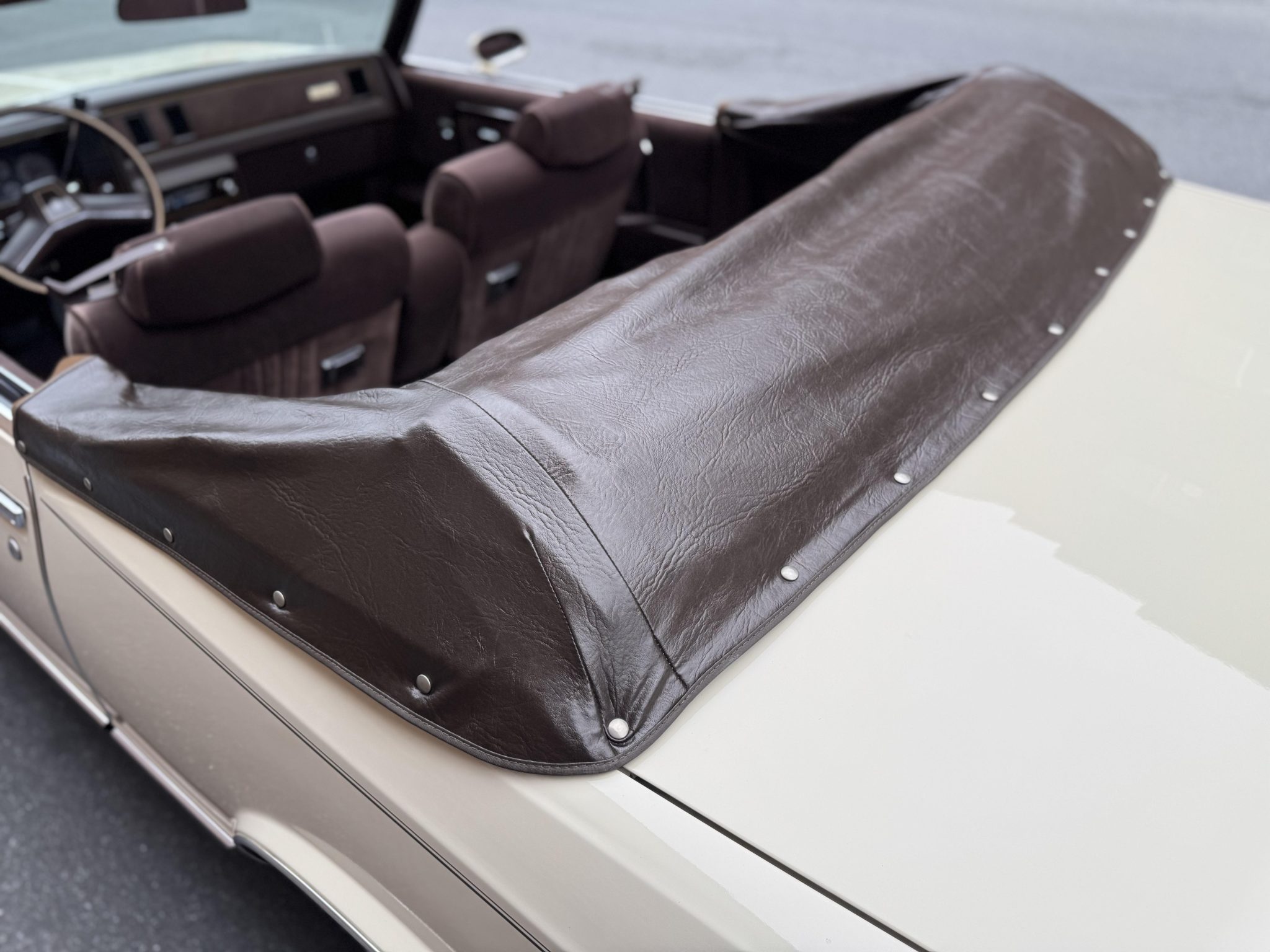 Finished in beige over Dark Brown cloth, the car has a brown soft top and was specified with an F41 sport suspension, power steering, and 14″ wheels with wire covers as well as a cassette stereo, power windows and locks, cruise control, and air conditioning. Power is provided by a 5.0-liter V8 linked to a three-speed automatic transmission. This Monte Carlo convertible