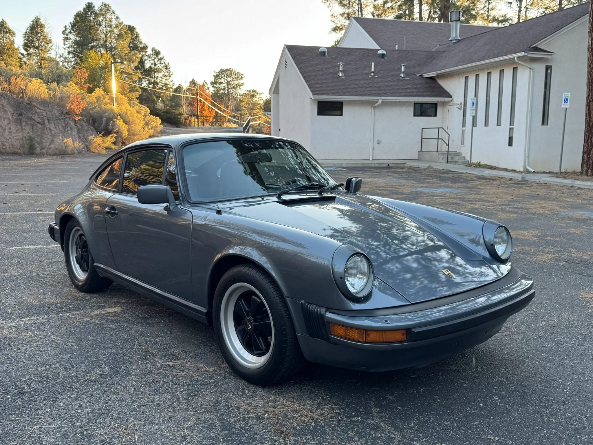 The 3.0-liter flat-six was refreshed in June 2018, which included rebuilding the cylinder heads and replacing the piston rings, timing chain, and tensioners. The car is finished in Slate Blue Metallic over blue leather and is equipped with a five-speed manual transaxle as well as 16″ Fuchs wheels, air conditioning, power windows, and a Blaupunkt AM/FM/cassette stereo with JBL speakers. This 911SC coupe is now offered with the owner’s manual, service records, and a clean title