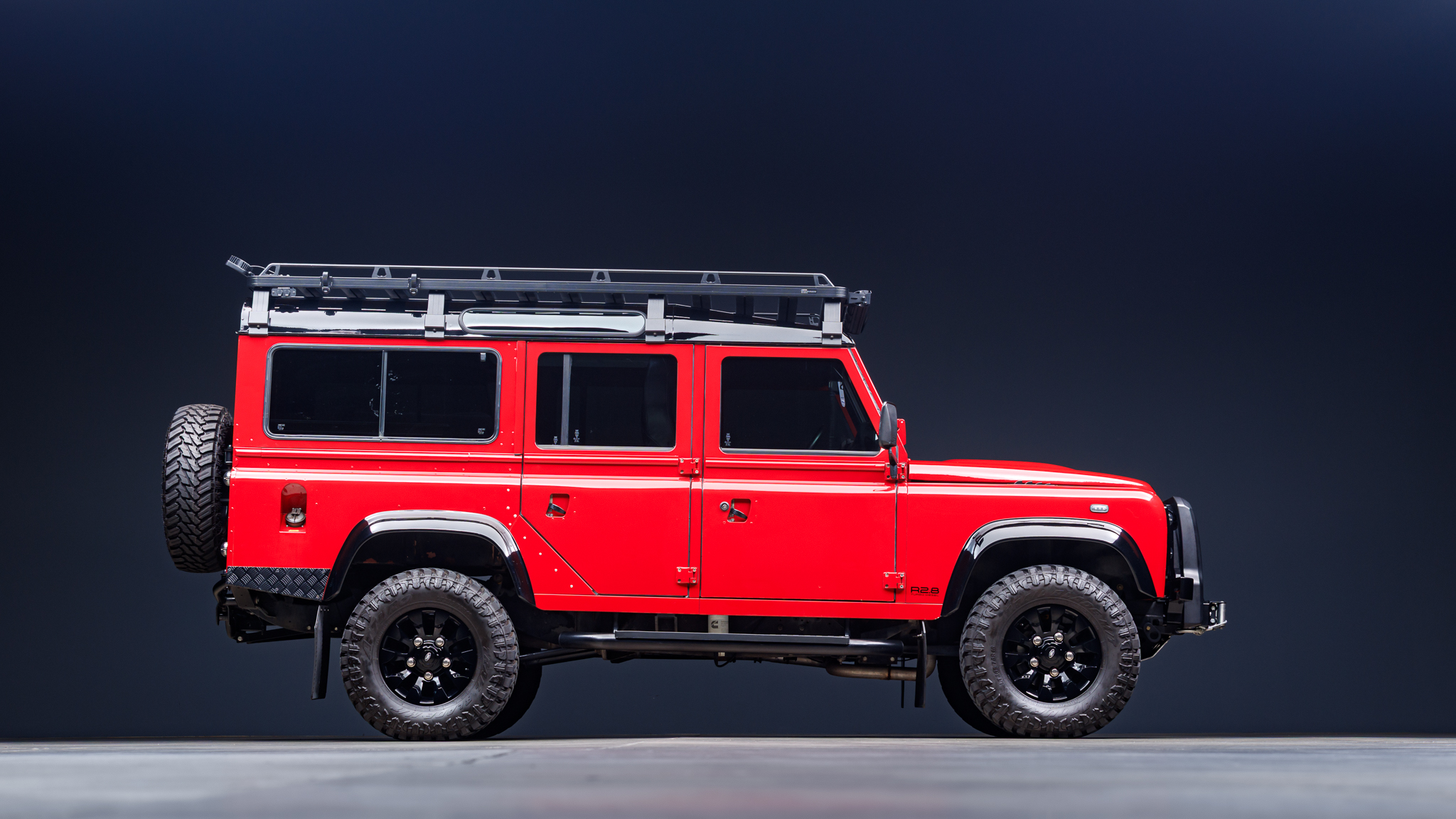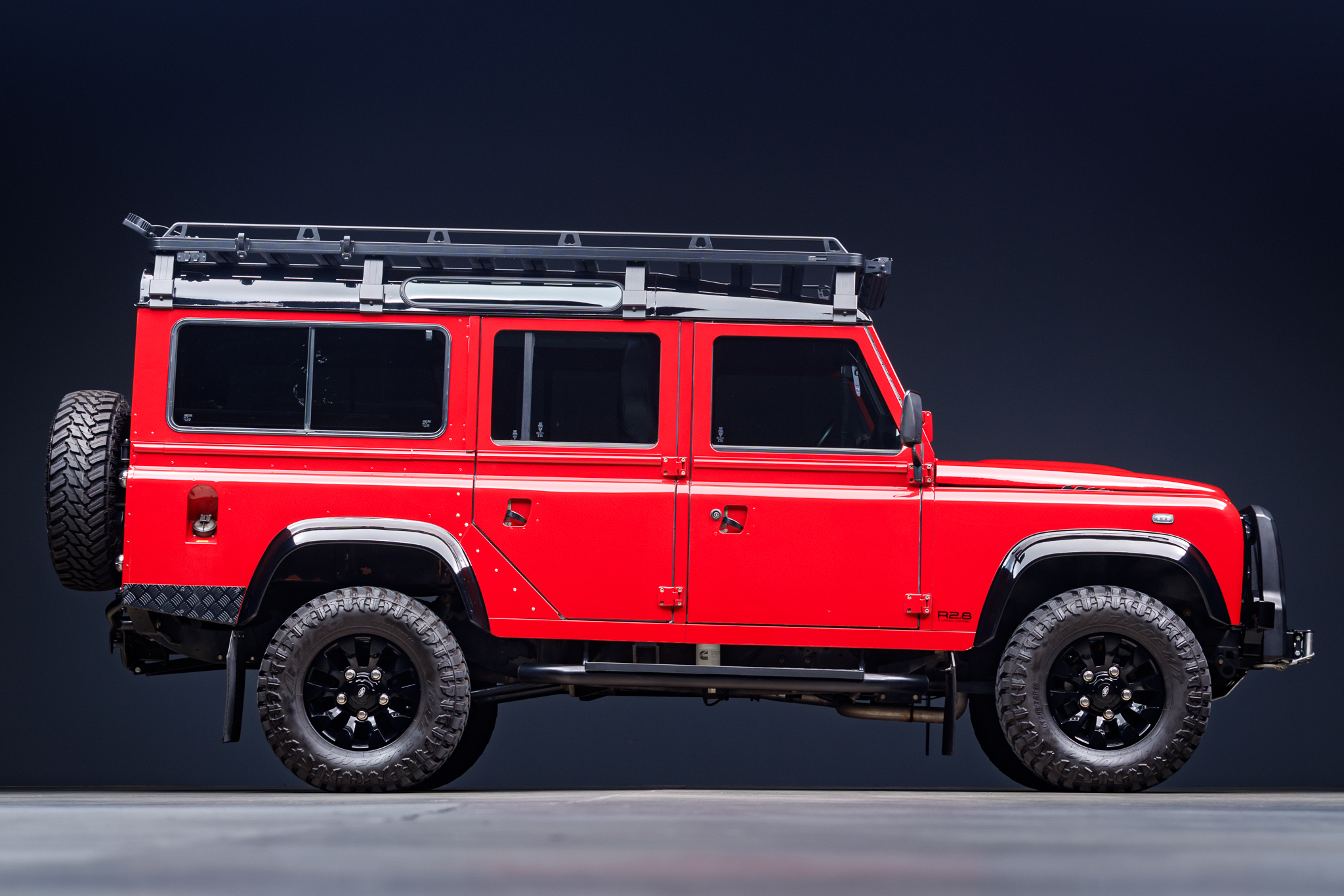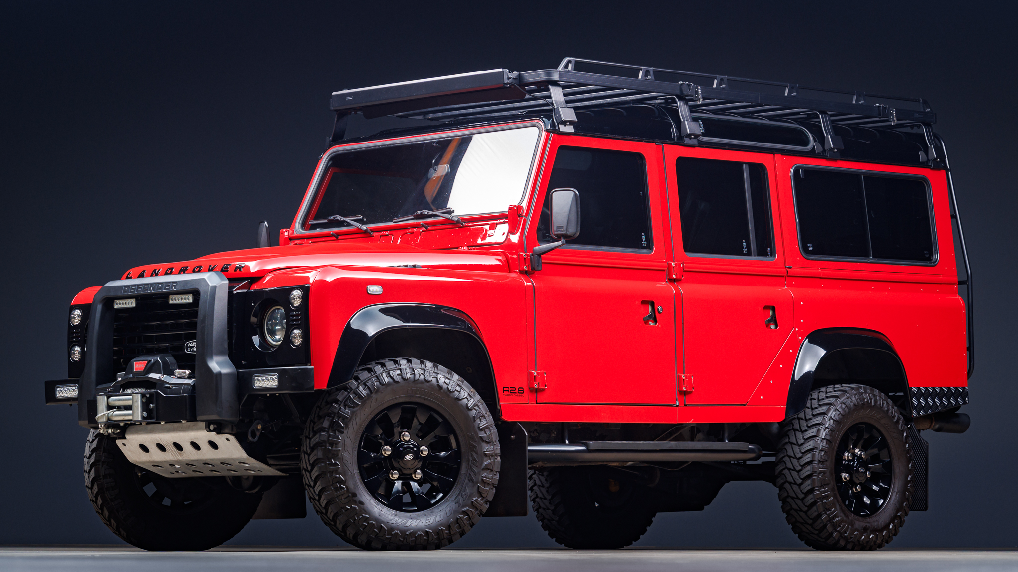 It was subsequently re-powered with a Cummins R2.8 turbodiesel inline-four and a ZF four-speed automatic transmission by British 4×4 of Reno in Nevada as part of a $44k build. The truck has been refinished in red with a black roof, and additional modifications include 16″ Sawtooth alloy wheels, an Old Man Emu suspension lift kit, a Frontrunner roof rack, a rear ladder, LED lights, a Warn front winch, aftermarket bumpers, air conditioning, cruise control, a Kenwood touchscreen stereo, black leather upholstery, and heated Lucari front bucket seats. Further equipment consists of a dual-range transfer case, a receiver hitch, and a center console with storage.
