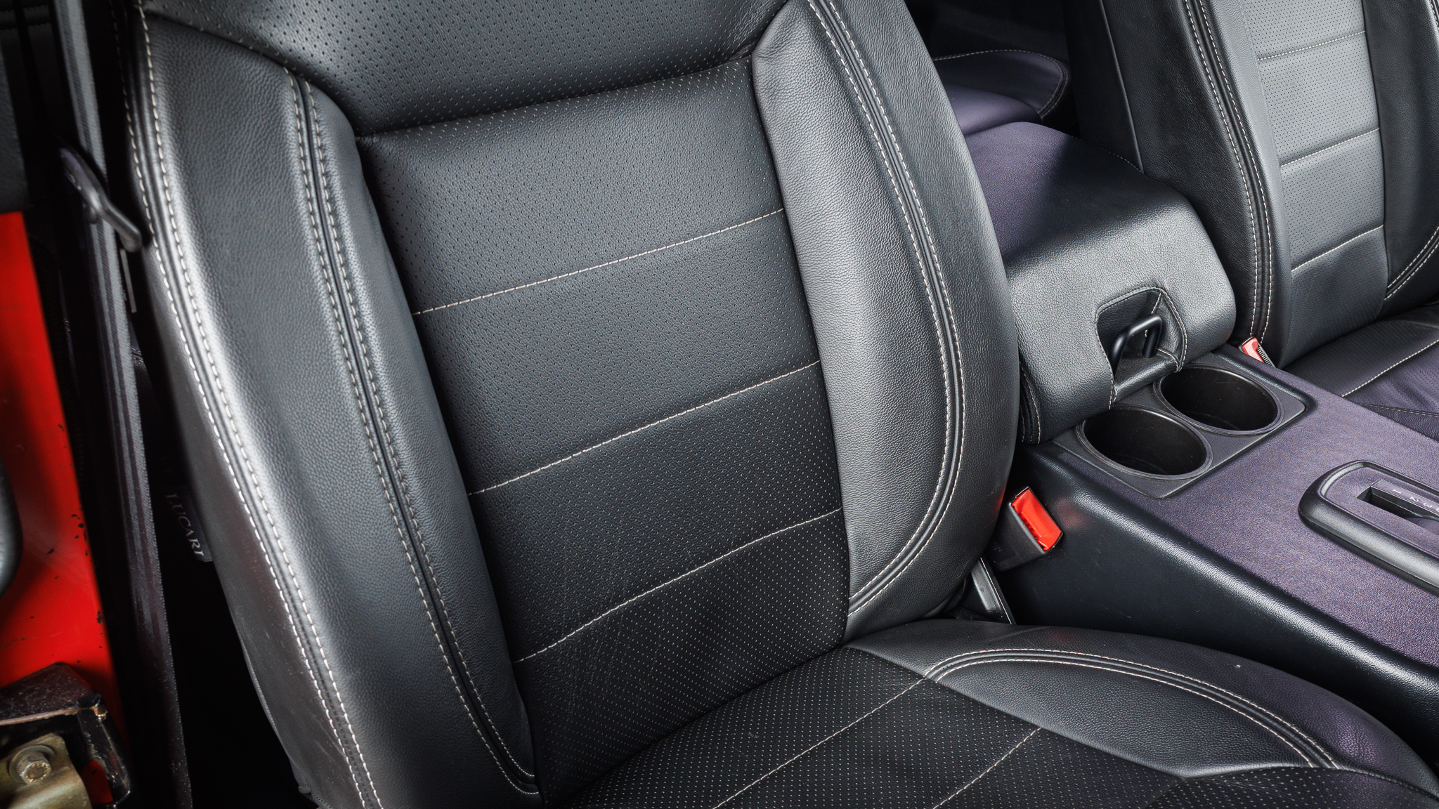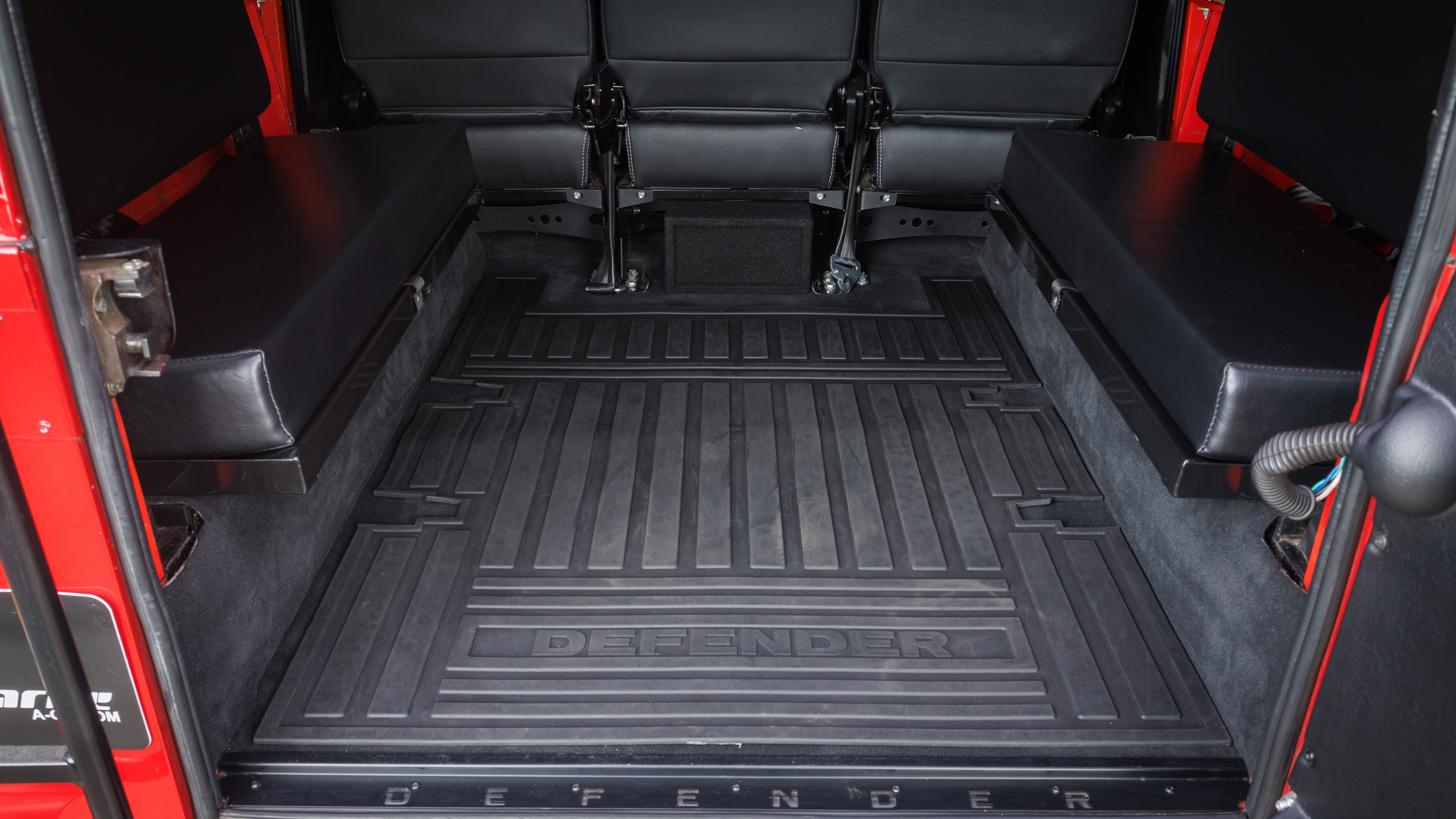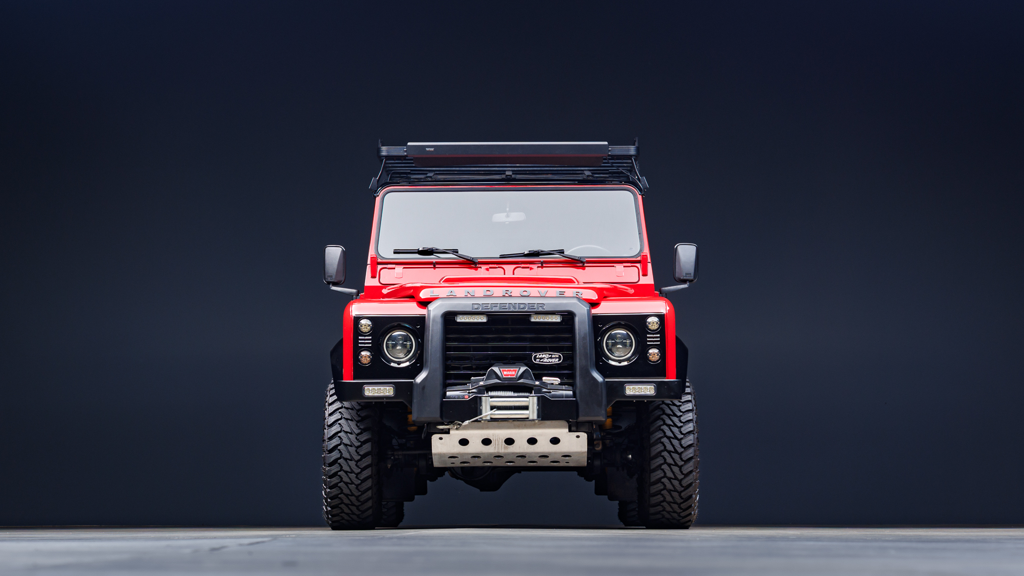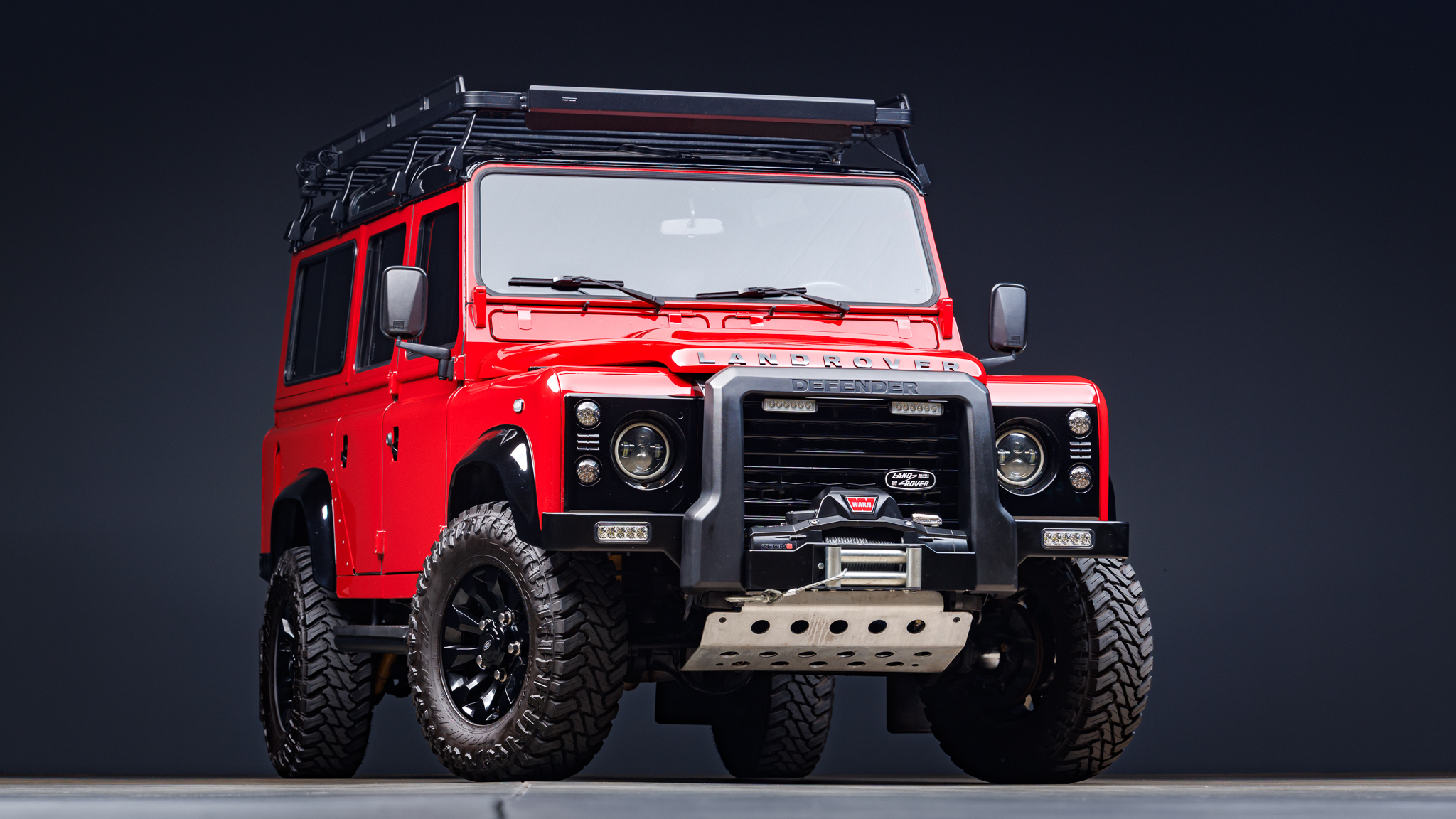 It was subsequently re-powered with a Cummins R2.8 turbodiesel inline-four and a ZF four-speed automatic transmission by British 4×4 of Reno in Nevada as part of a $44k build. The truck has been refinished in red with a black roof, and additional modifications include 16″ Sawtooth alloy wheels, an Old Man Emu suspension lift kit, a Frontrunner roof rack, a rear ladder, LED lights, a Warn front winch, aftermarket bumpers, air conditioning, cruise control, a Kenwood touchscreen stereo, black leather upholstery, and heated Lucari front bucket seats. Further equipment consists of a dual-range transfer case, a receiver hitch, and a center console with storage.