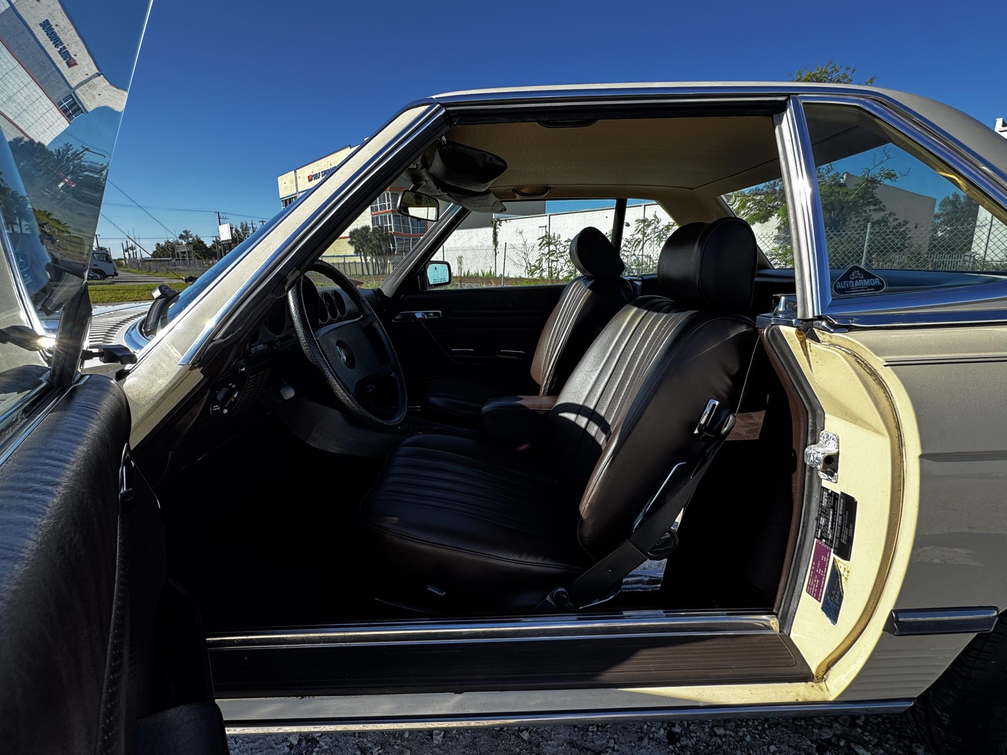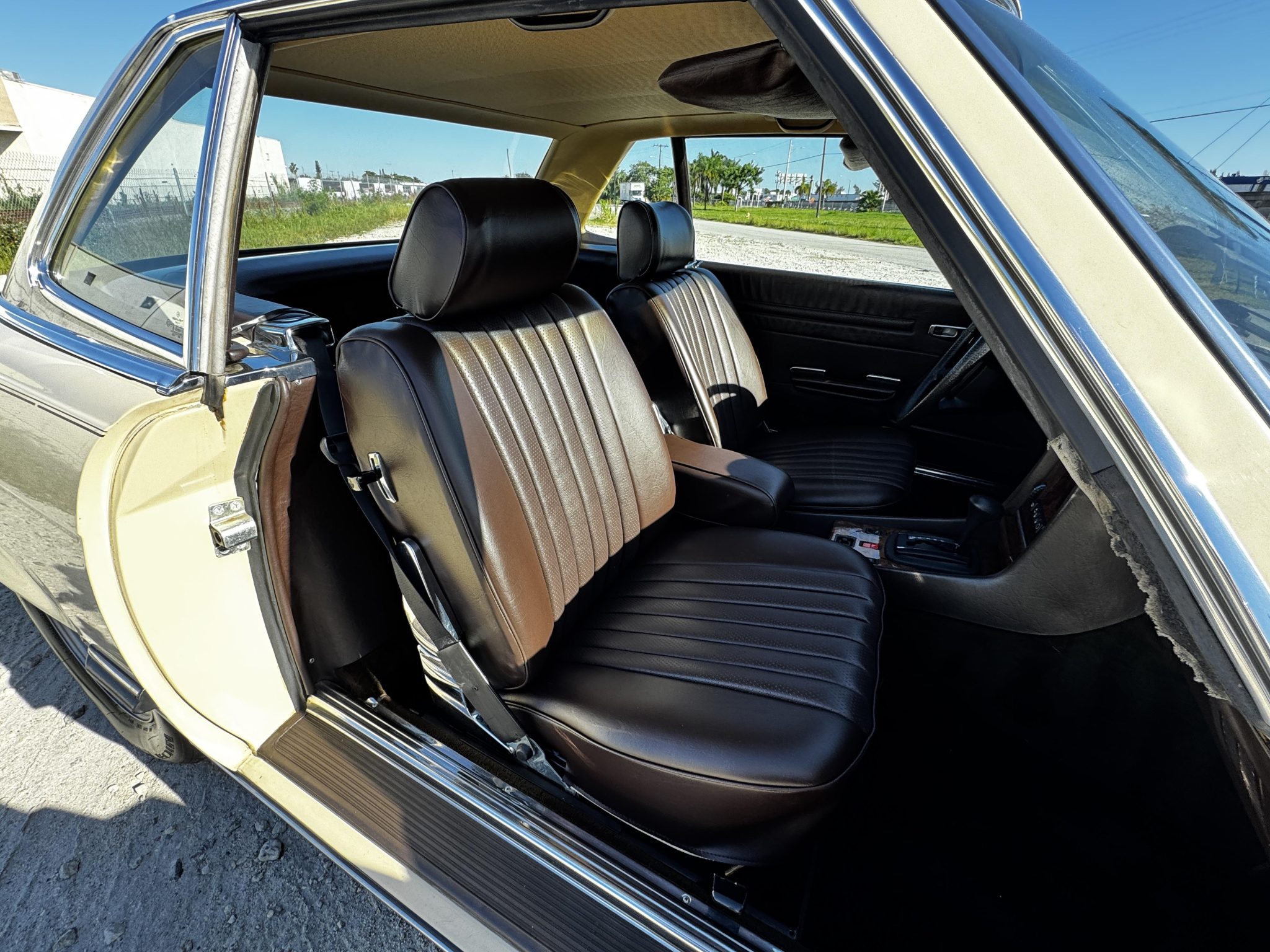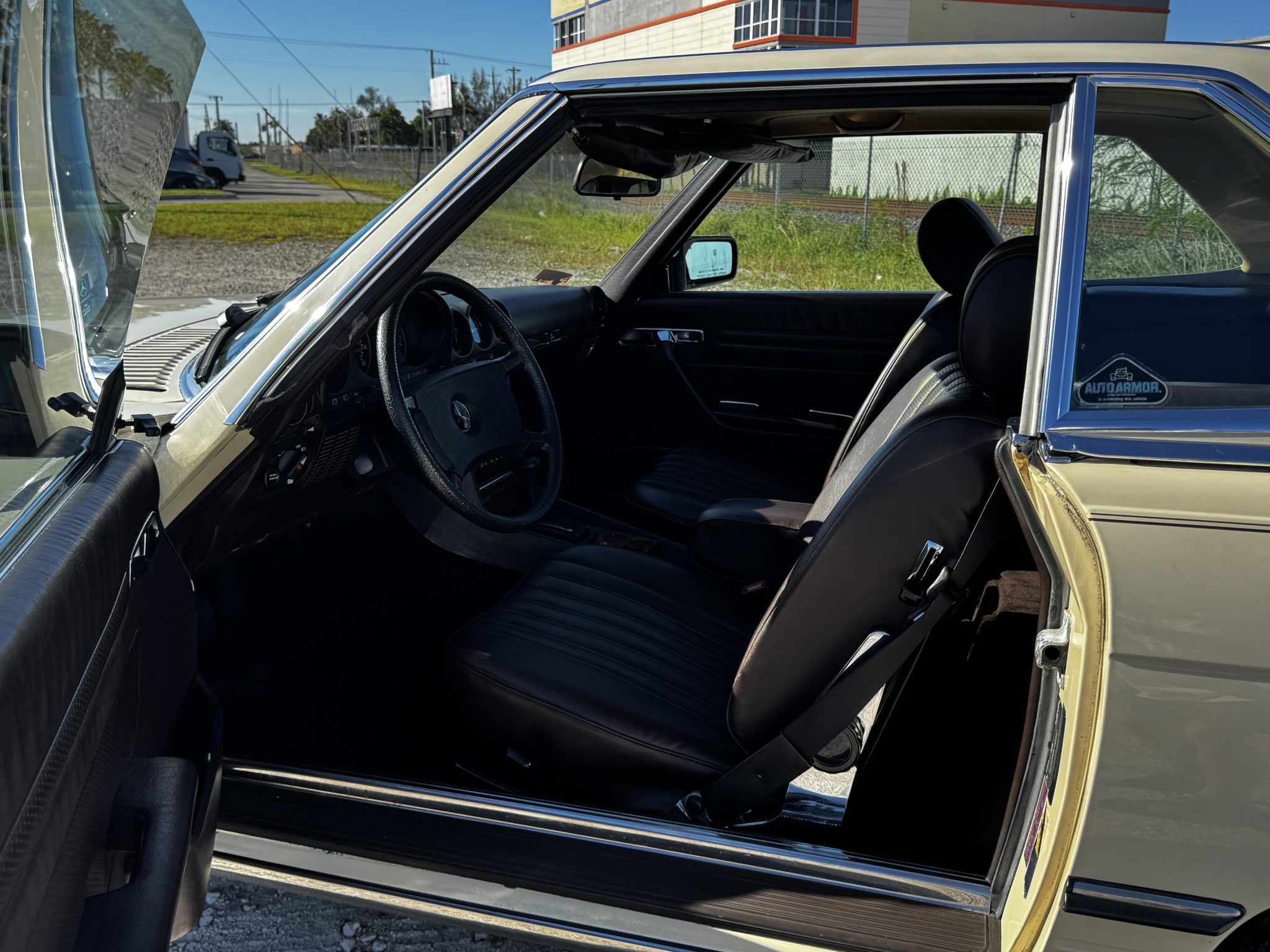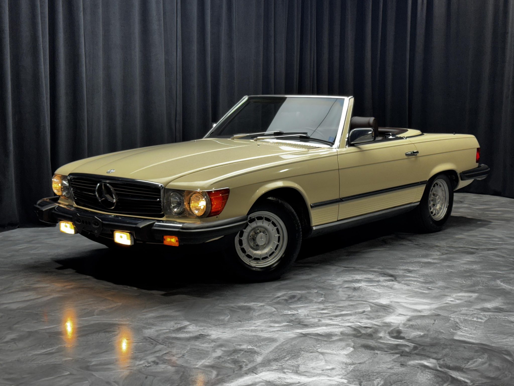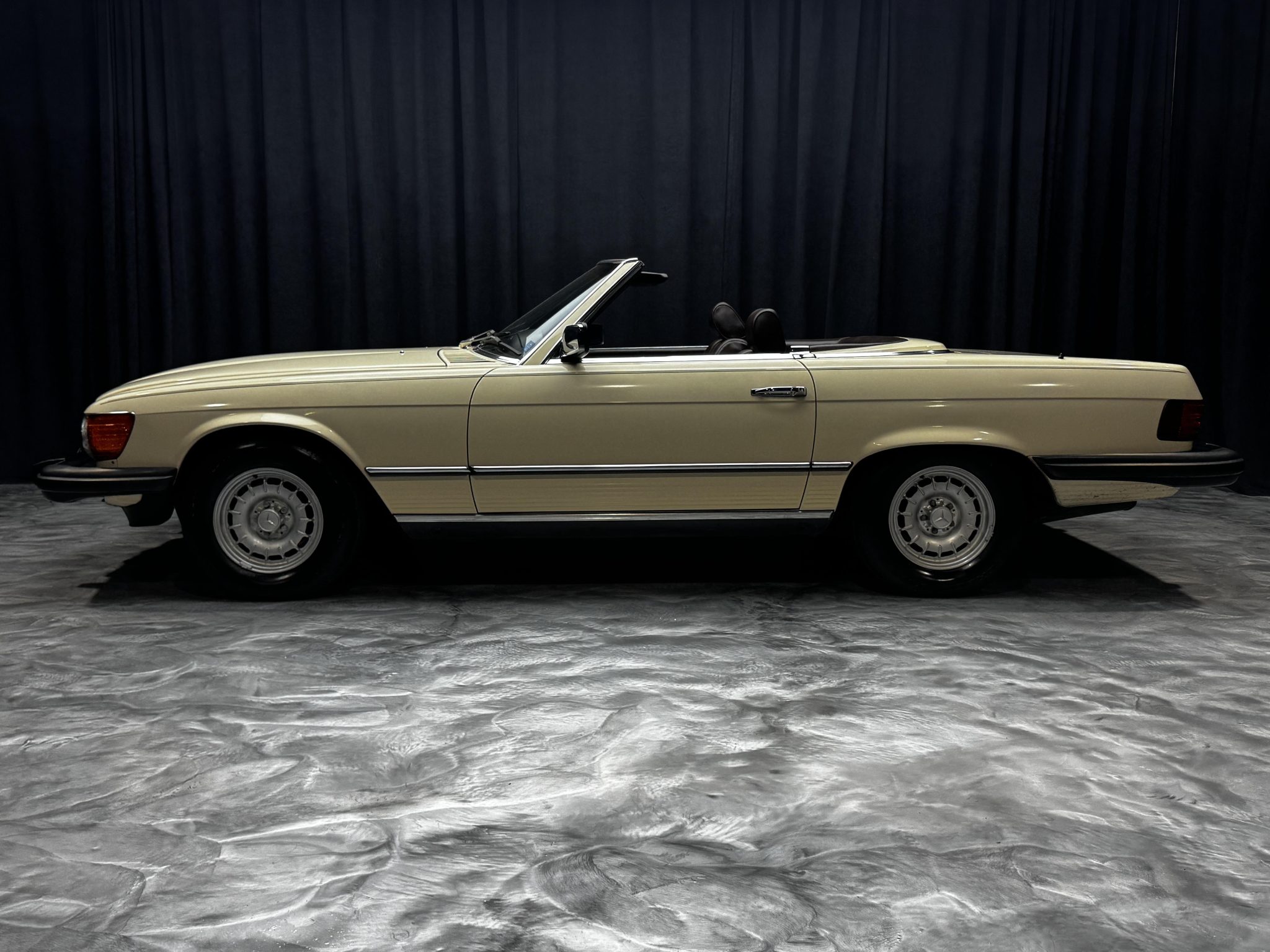 This 1985 Mercedes-Benz 380SL has remained registered in Iowa since new and shows 38k miles. Finished in Light Ivory over Dark Brown leather upholstery, the car is powered by a 3.8-liter V8 paired with a four-speed automatic transmission. Equipment includes a dark brown soft top, a removable hardtop, 14″ Bundt alloy wheels, fog lights, power windows, cruise control, a cassette stereo, and automatic climate control.