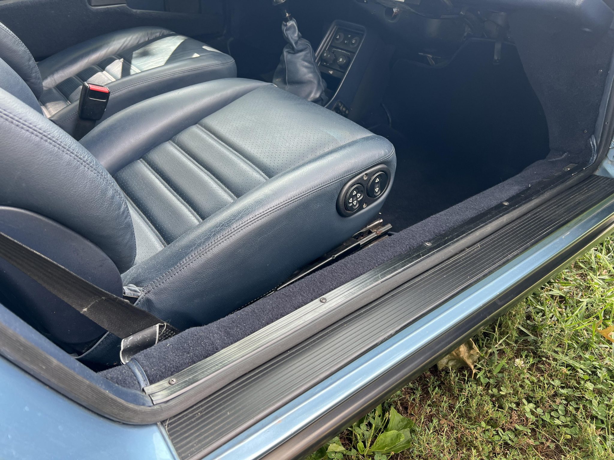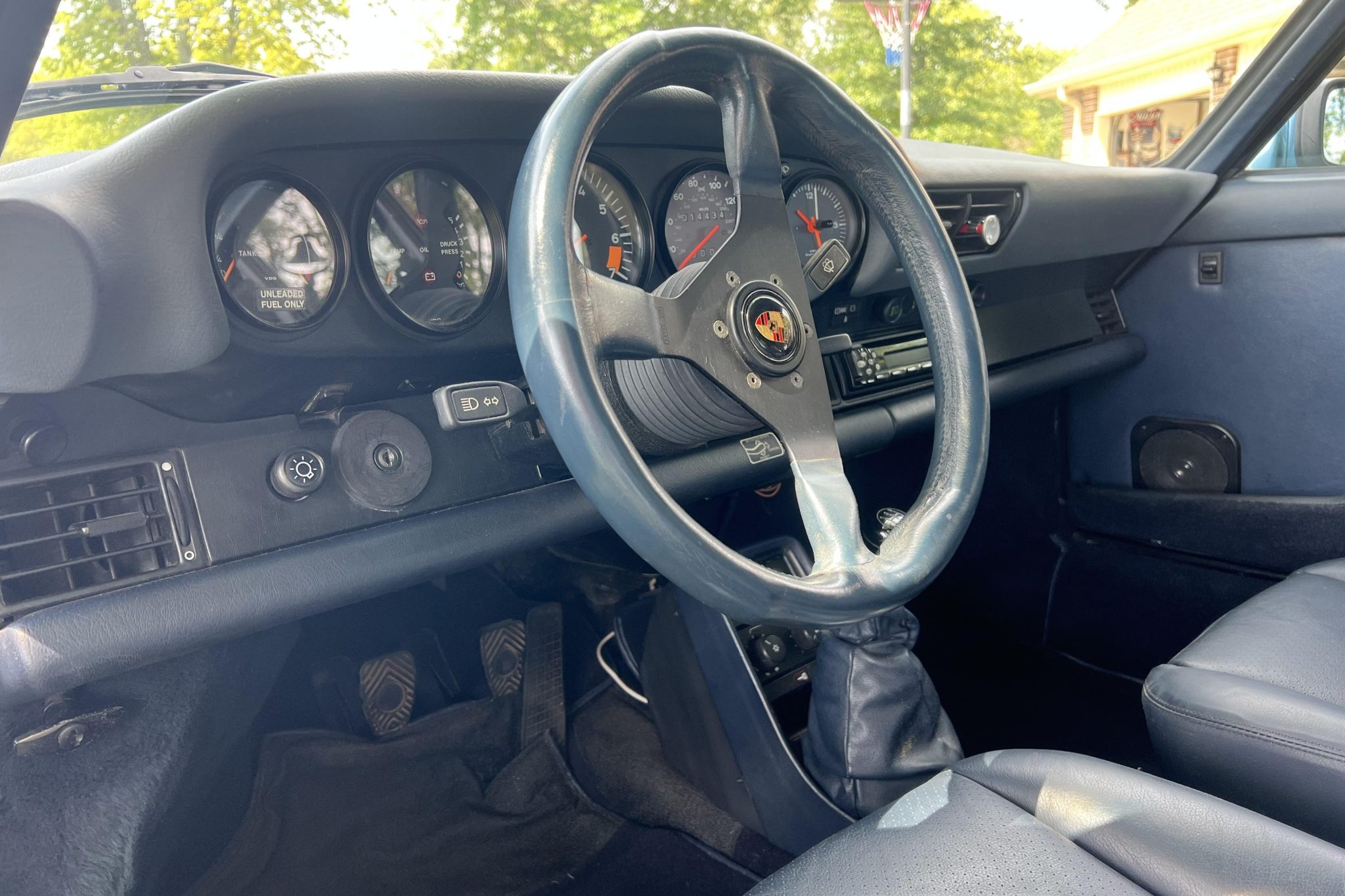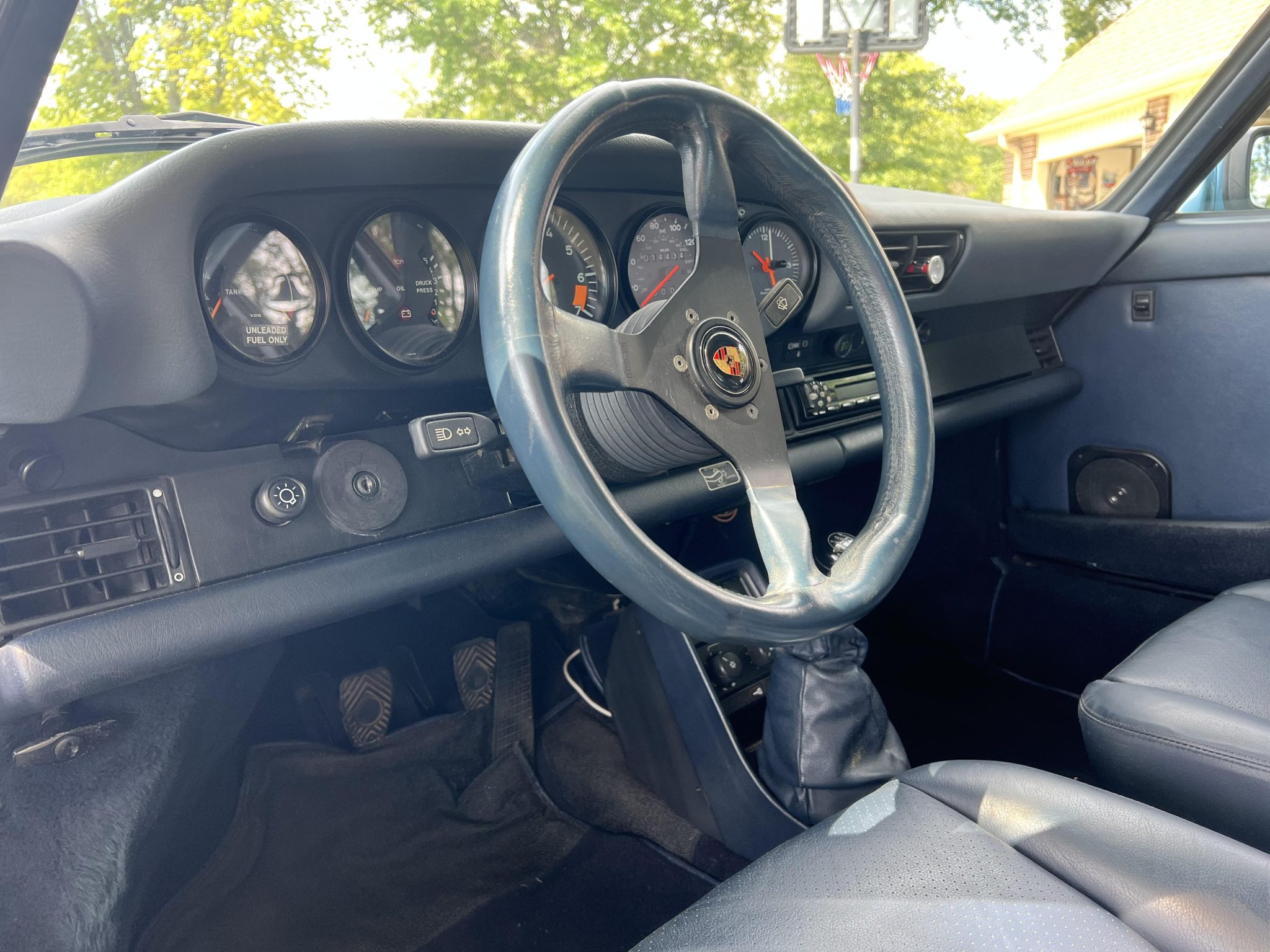The car underwent a repaint in the factory shade of Iris Blue Metallic later that year, according to the seller. Powered by a 3.2-liter flat-six paired with a 915 five-speed manual transaxle, the car is equipped with a retrofitted rear spoiler, a power sunroof, 16″ Fuchs wheels, fog lights, cruise control, a Panasonic CD stereo head unit, and power-adjustable front seats trimmed in blue partial leather