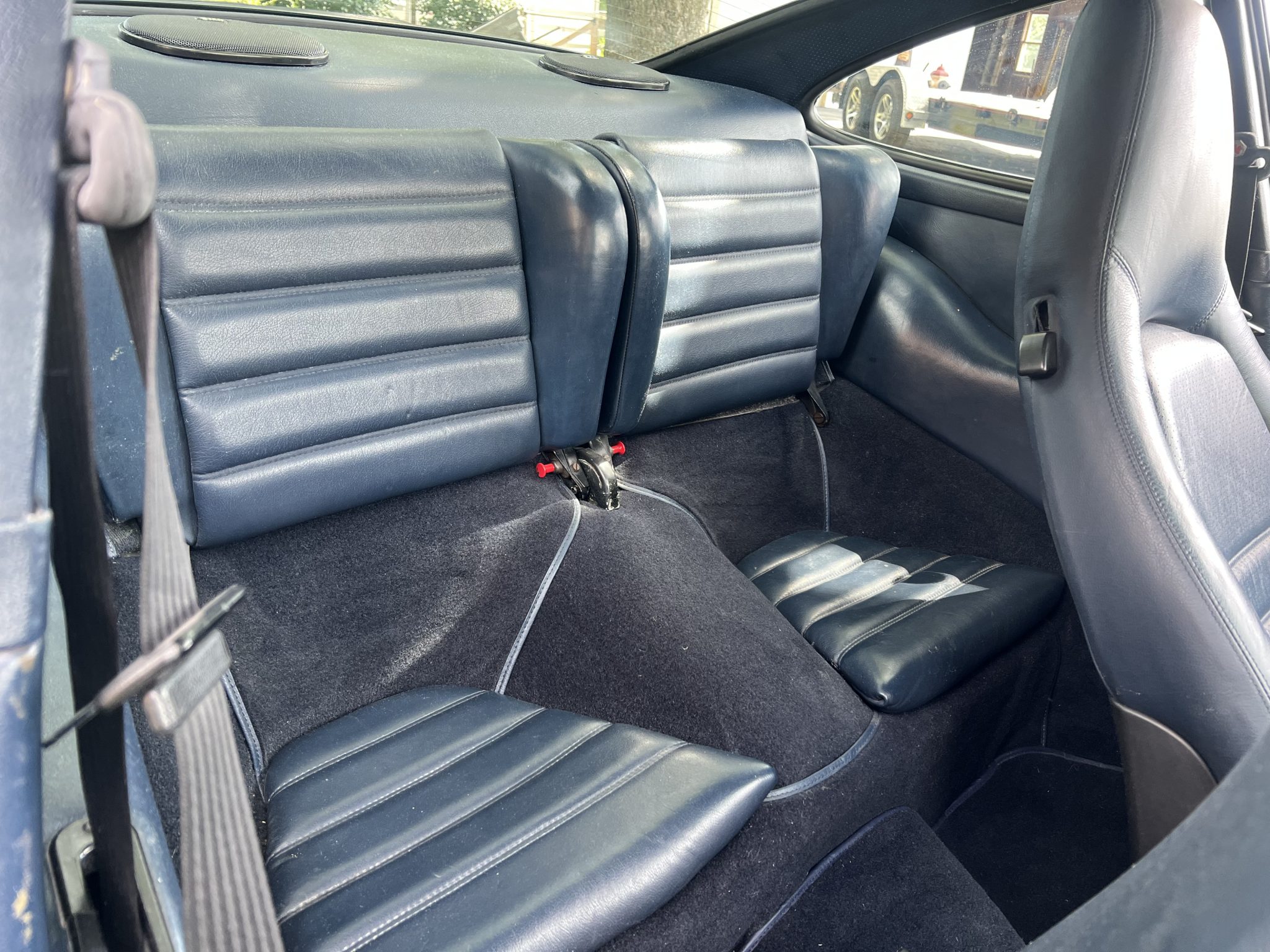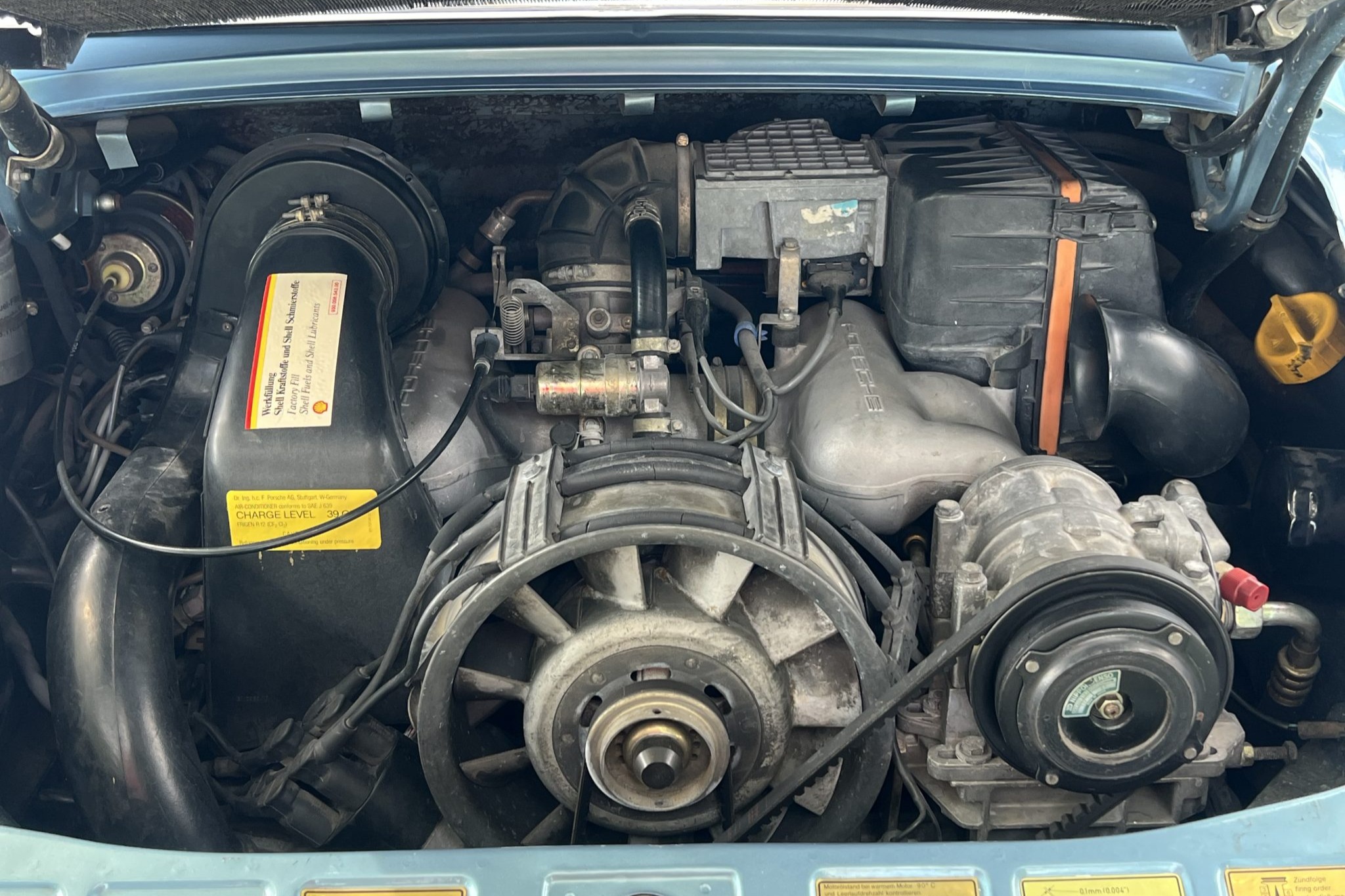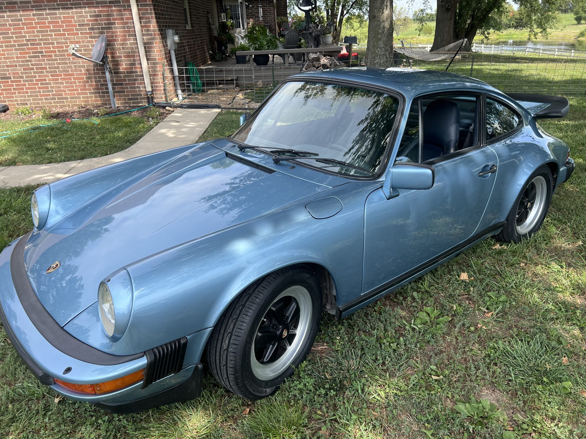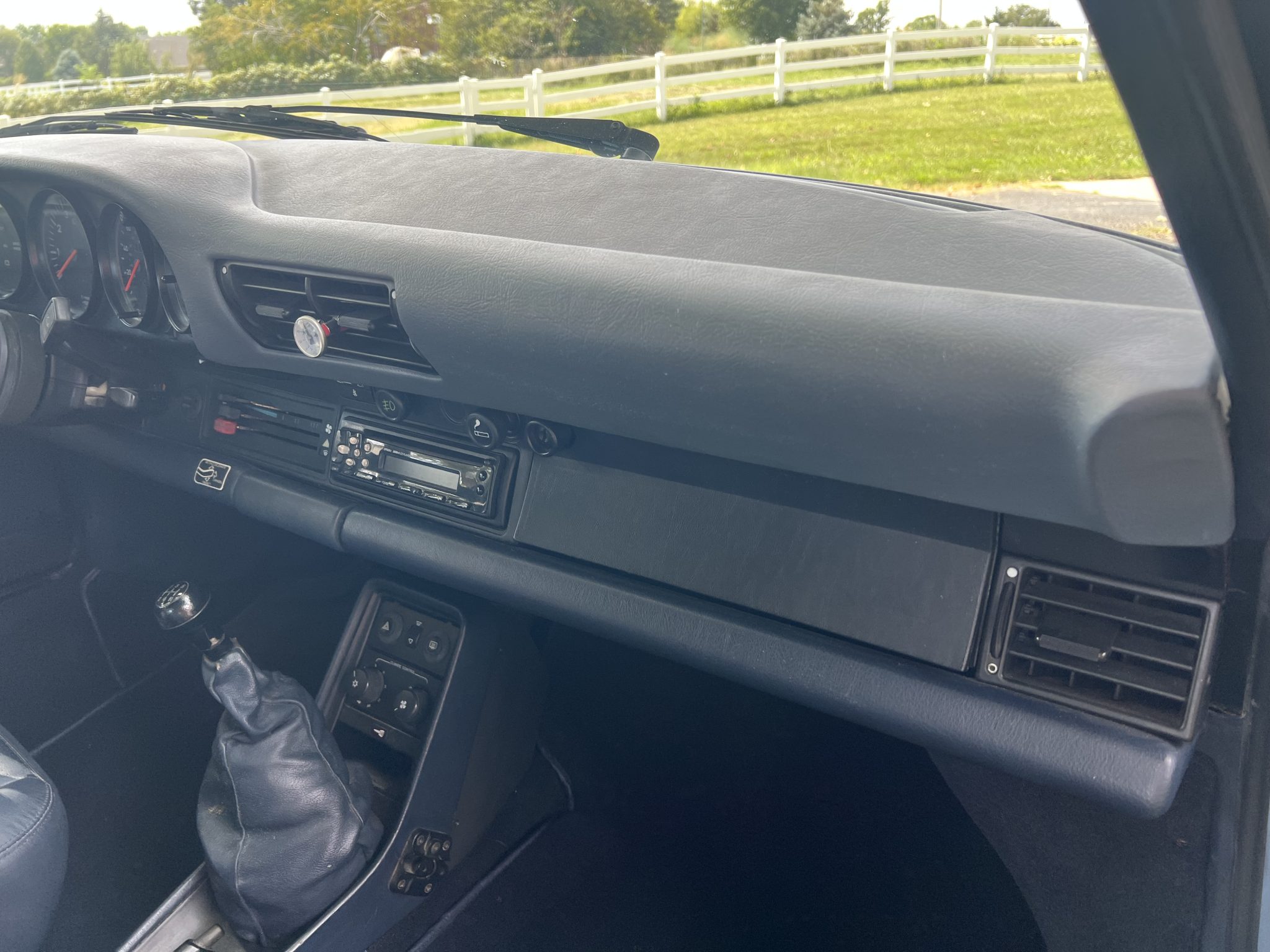 The car underwent a repaint in the factory shade of Iris Blue Metallic later that year, according to the seller. Powered by a 3.2-liter flat-six paired with a 915 five-speed manual transaxle, the car is equipped with a retrofitted rear spoiler, a power sunroof, 16″ Fuchs wheels, fog lights, cruise control, a Panasonic CD stereo head unit, and power-adjustable front seats trimmed in blue partial leather