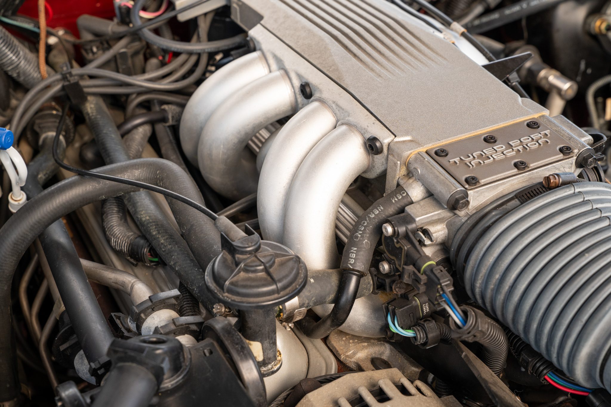 The car is powered by a fuel-injected 5.0-liter LB9 V8 paired with a five-speed manual transmission and is finished in Dark Red Metallic over Saddle cloth. IROC-Z equipment consists of a body-color front spoiler and rocker panels, a louvered hood, IROC-Z graphics, and upgraded suspension components. Additional features includes a limited-slip differential, removable T-top roof panels, 16″ IROC alloy wheels, a power-adjustable driver’s seat, air conditioning, and cruise control.