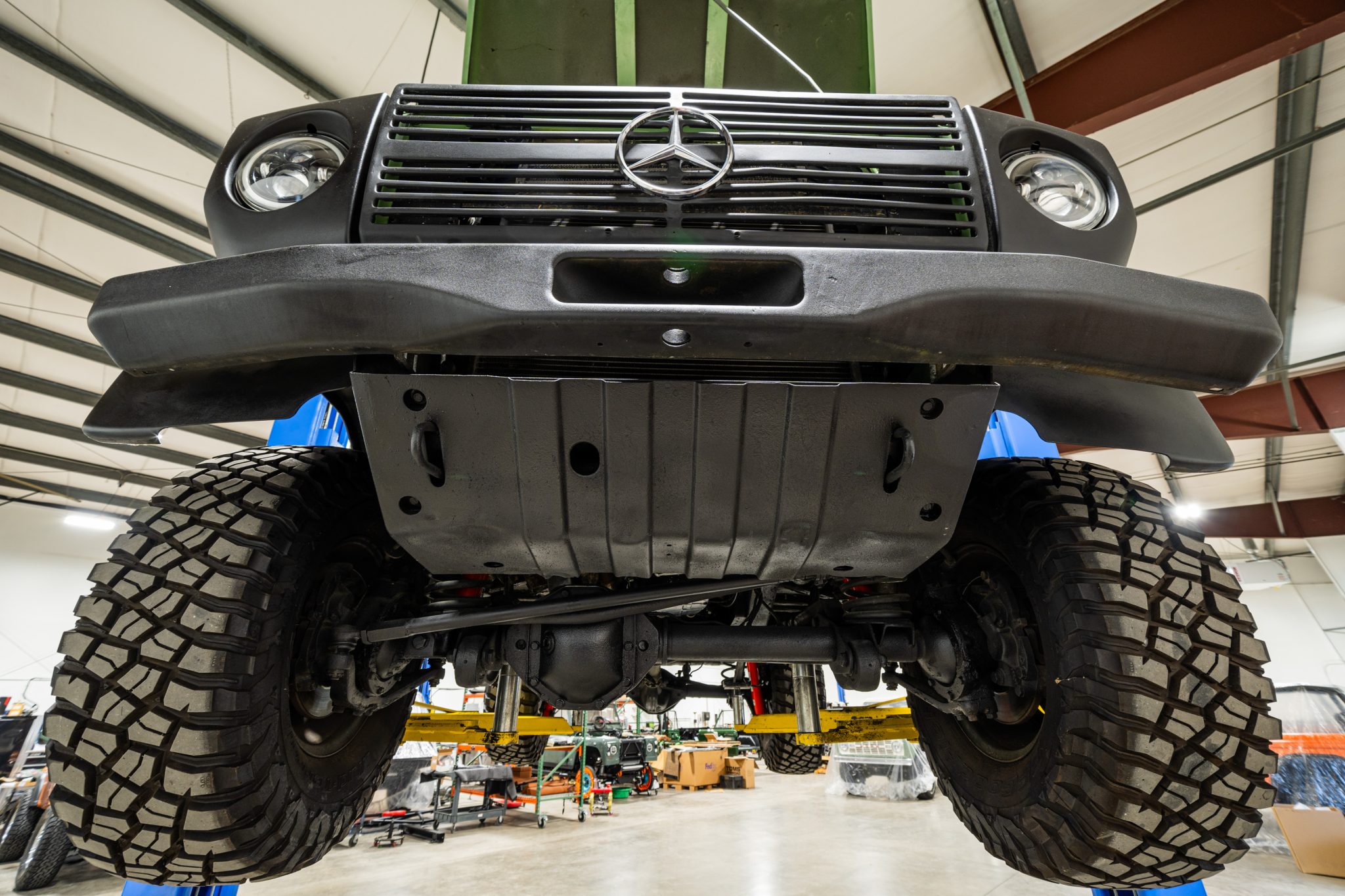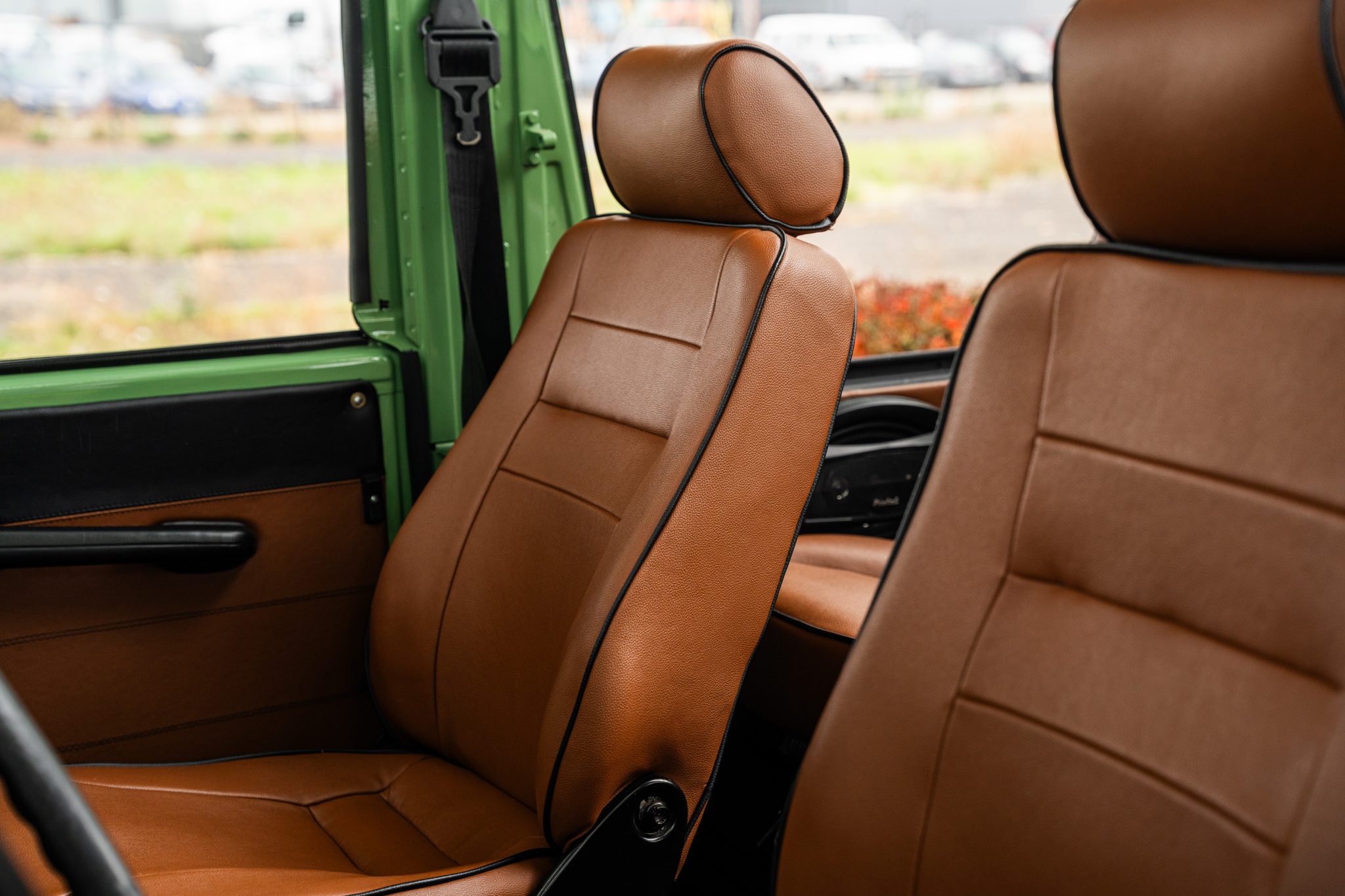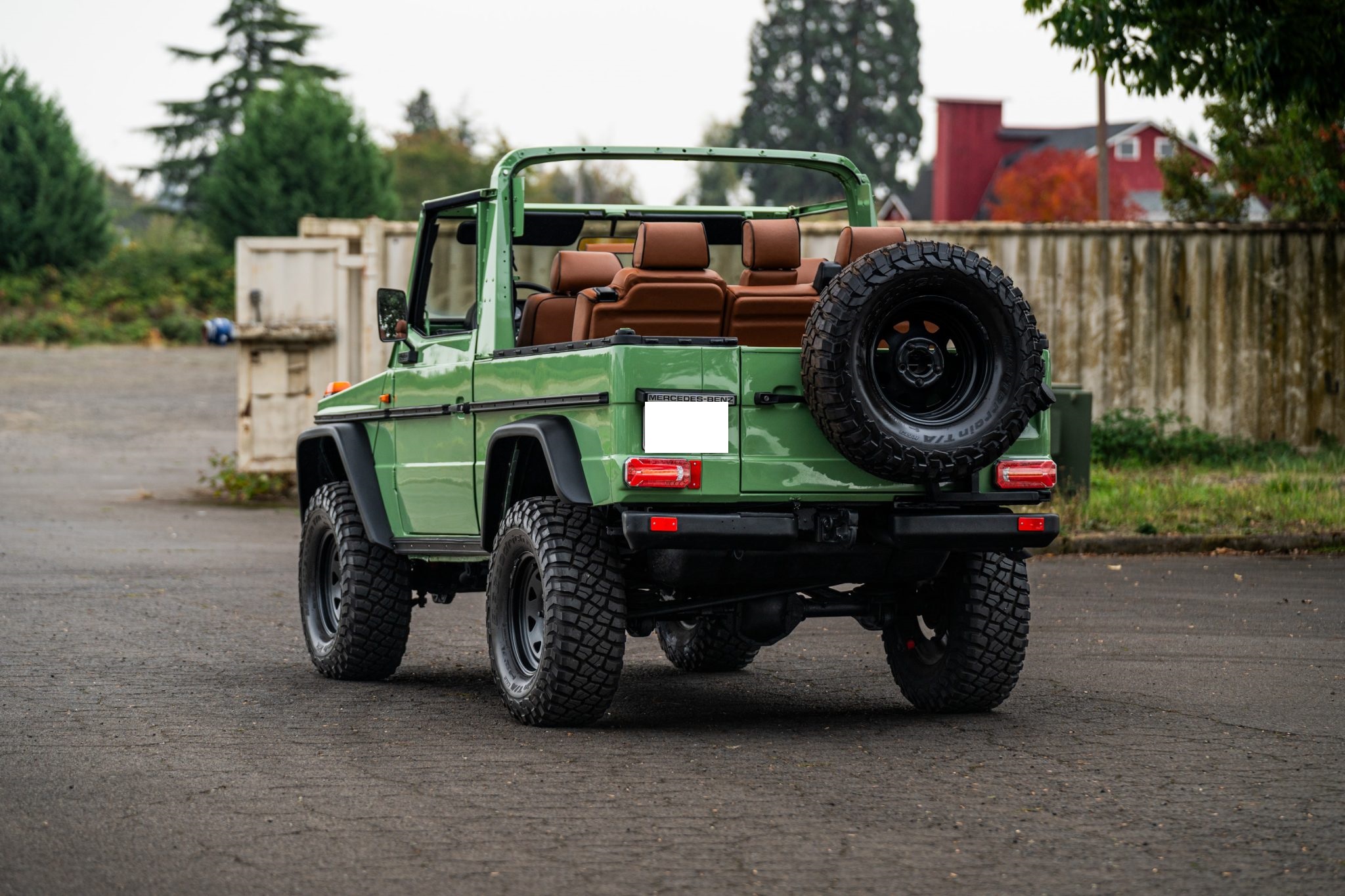 Finished in green over brown upholstery, the truck is powered by a retrofitted 3.0-liter OM606 turbodiesel inline-six linked to a four-speed automatic transmission, a dual-range transfer case, and locking front and rear differentials. Features include power steering, a 2″ suspension lift kit, disc brakes, 16″ steel wheels, LED lighting, a rear spare carrier, a cabin heater, crank windows, a rearview camera, and JVC touchscreen infotainment. This 240GD shows 74k kilometers